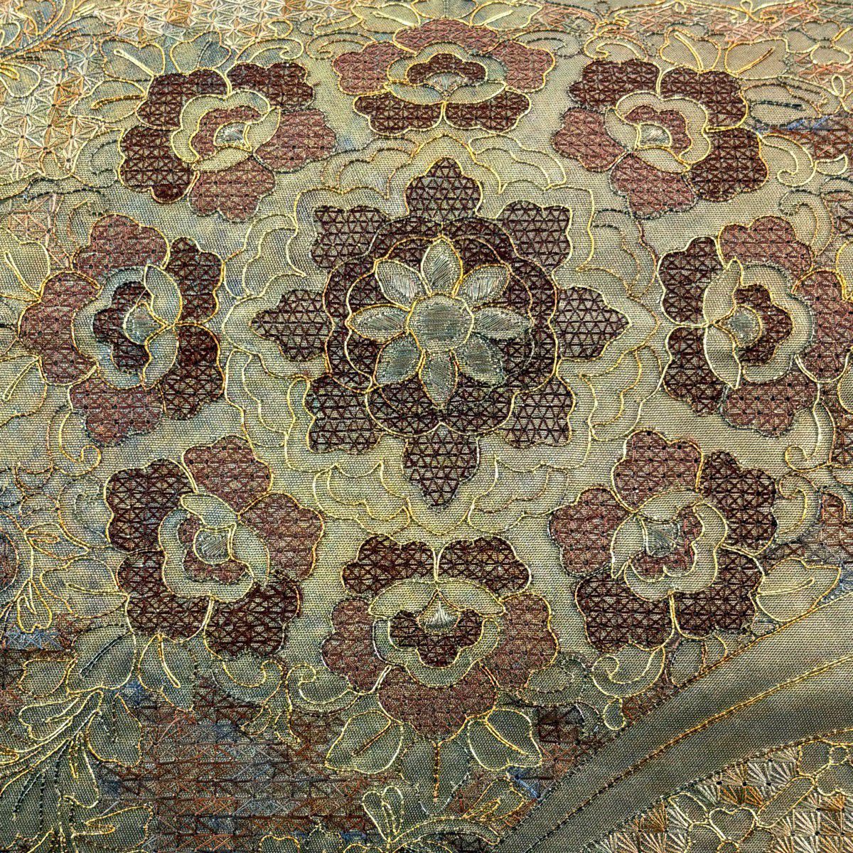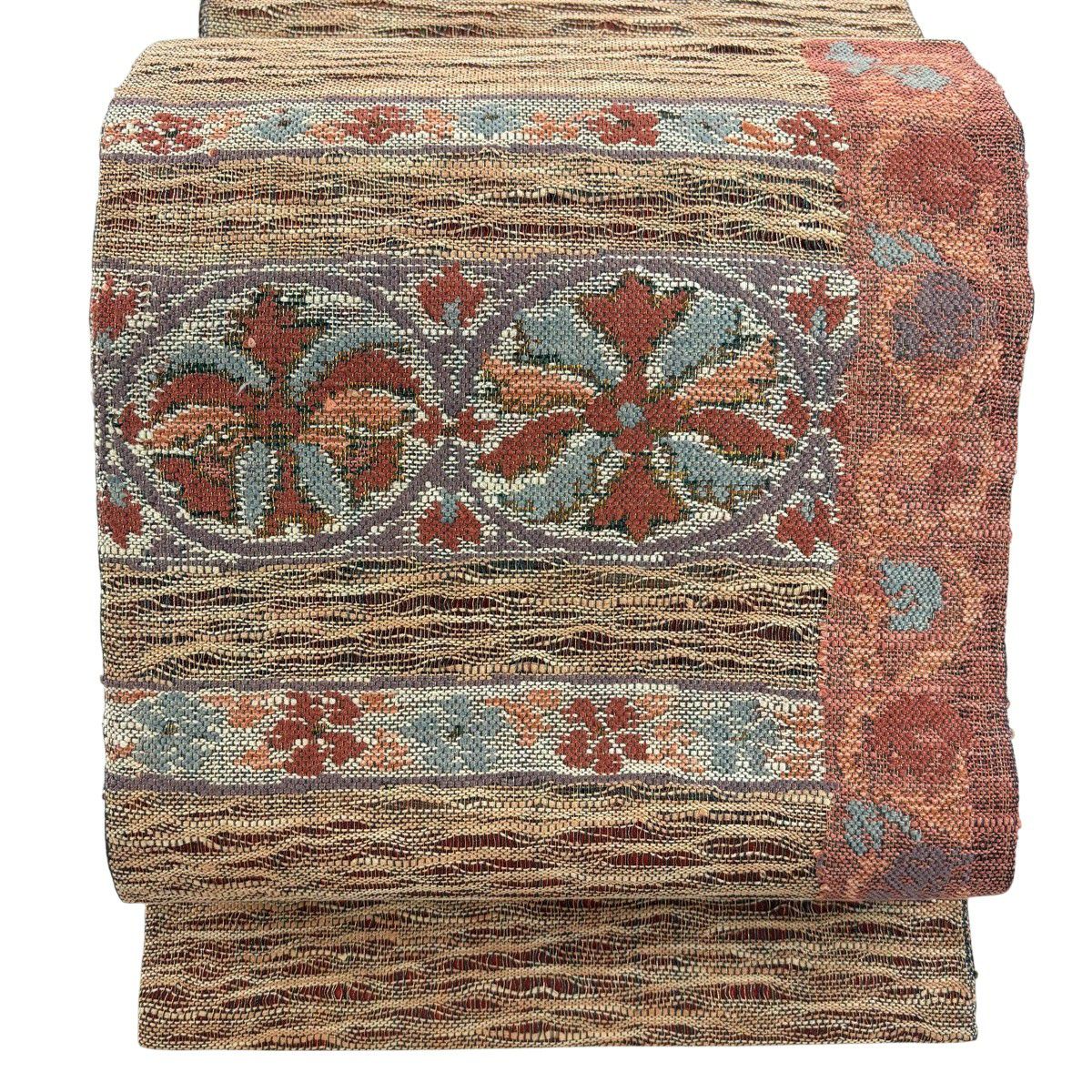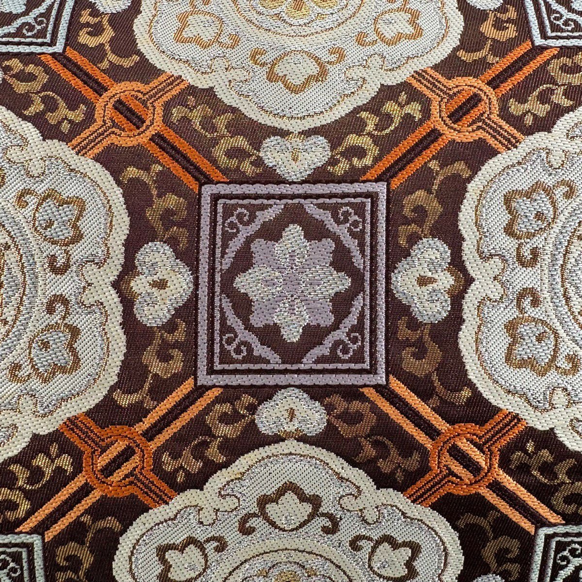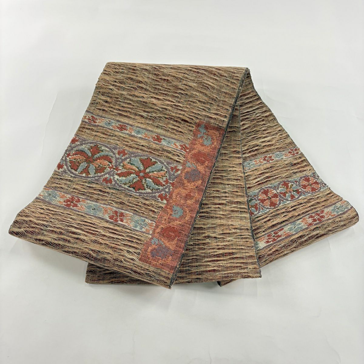 袋帯 秀品 天平の香 向かい鳥 華文 金糸 箔 灰茶 六通 正絹