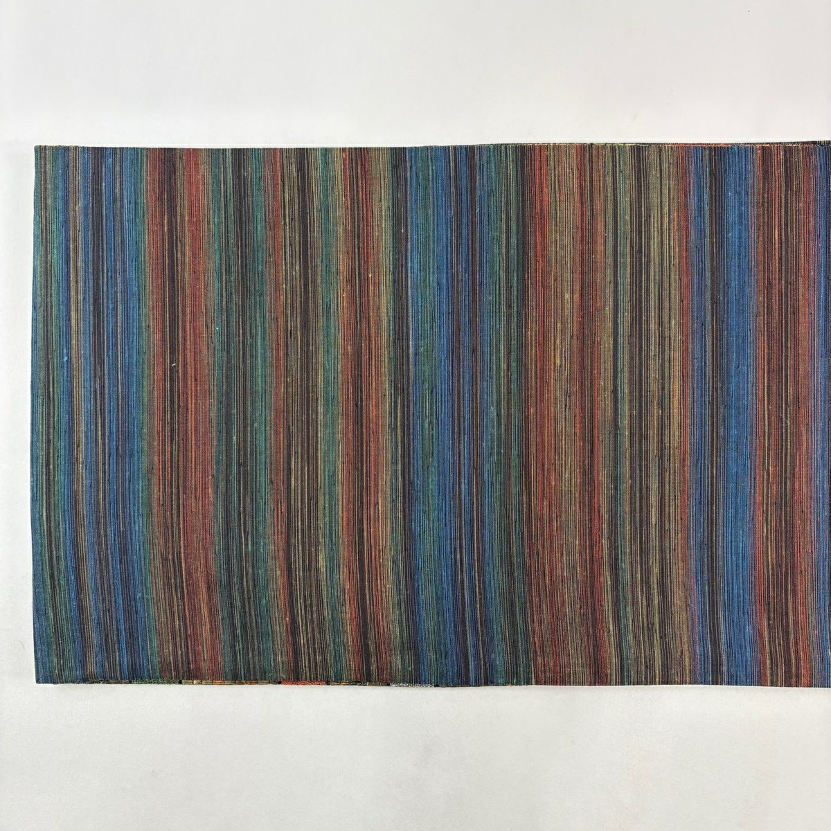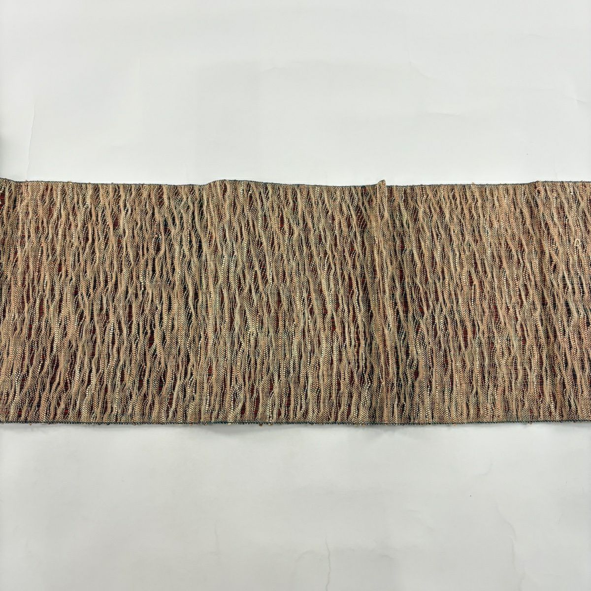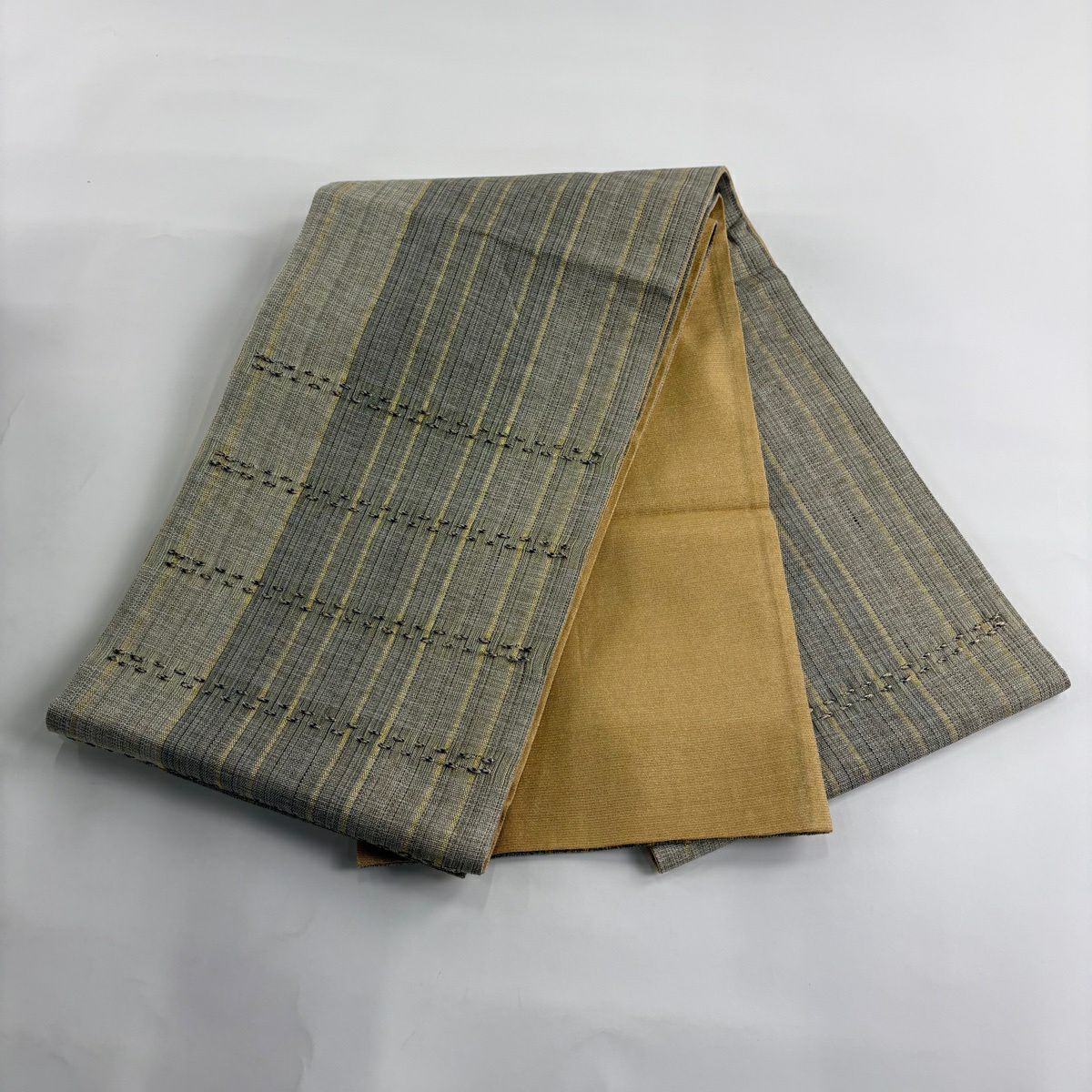 【美品】 袋帯 秀品 泥染 縞 よろけ縞 金糸 茶色 全通 正絹