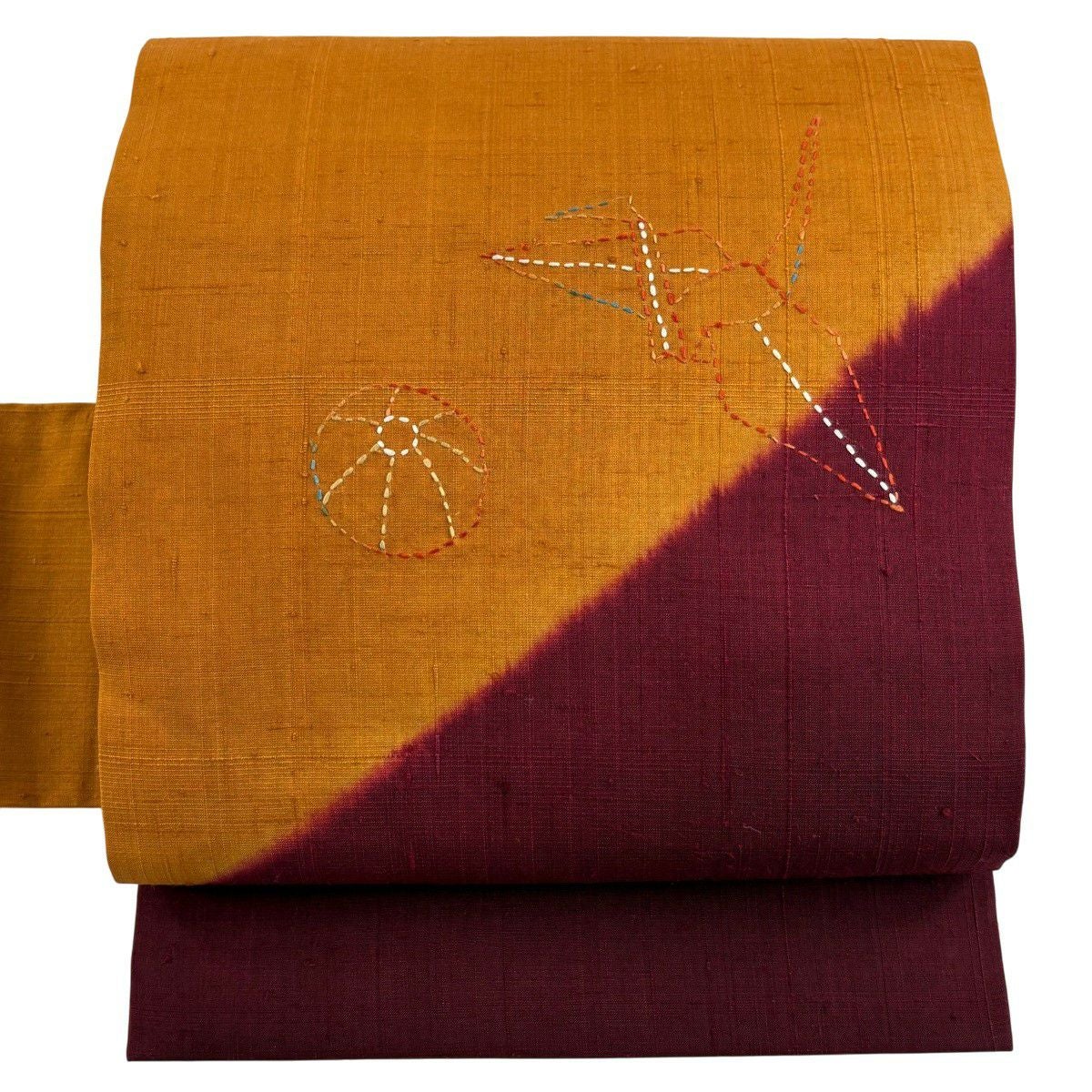 【美品】 名古屋帯 秀品 折り鶴 紙風船 刺繍 オレンジ 正絹