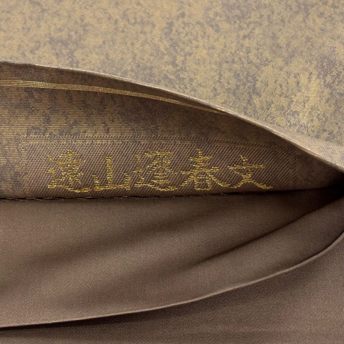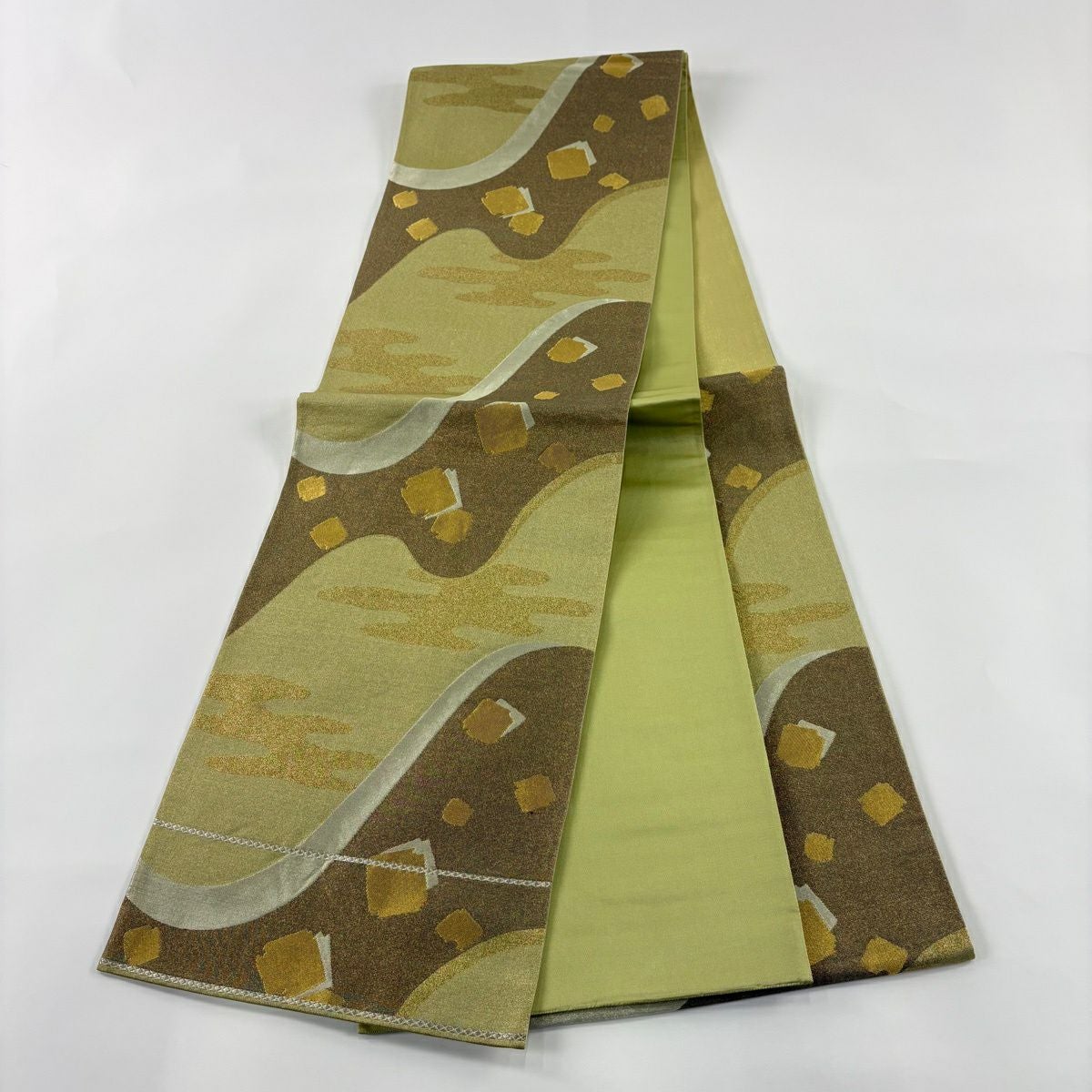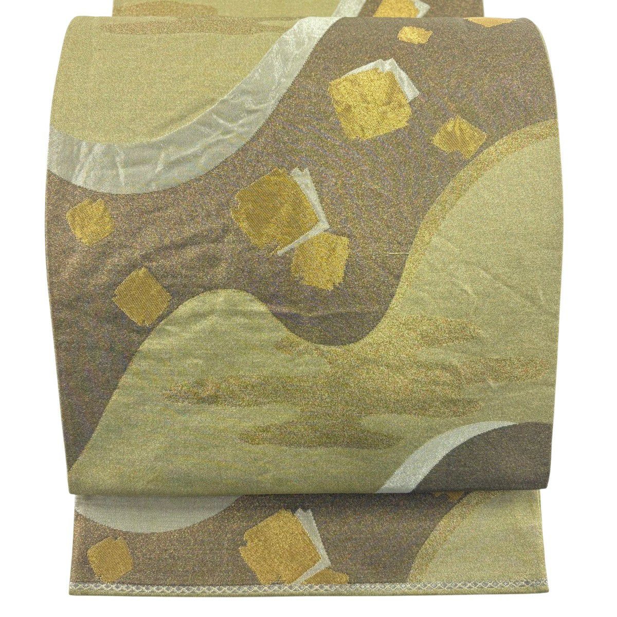 袋帯 秀品 関西仕立て 破れ色紙 霞 金銀糸 抹茶色 六通 正絹