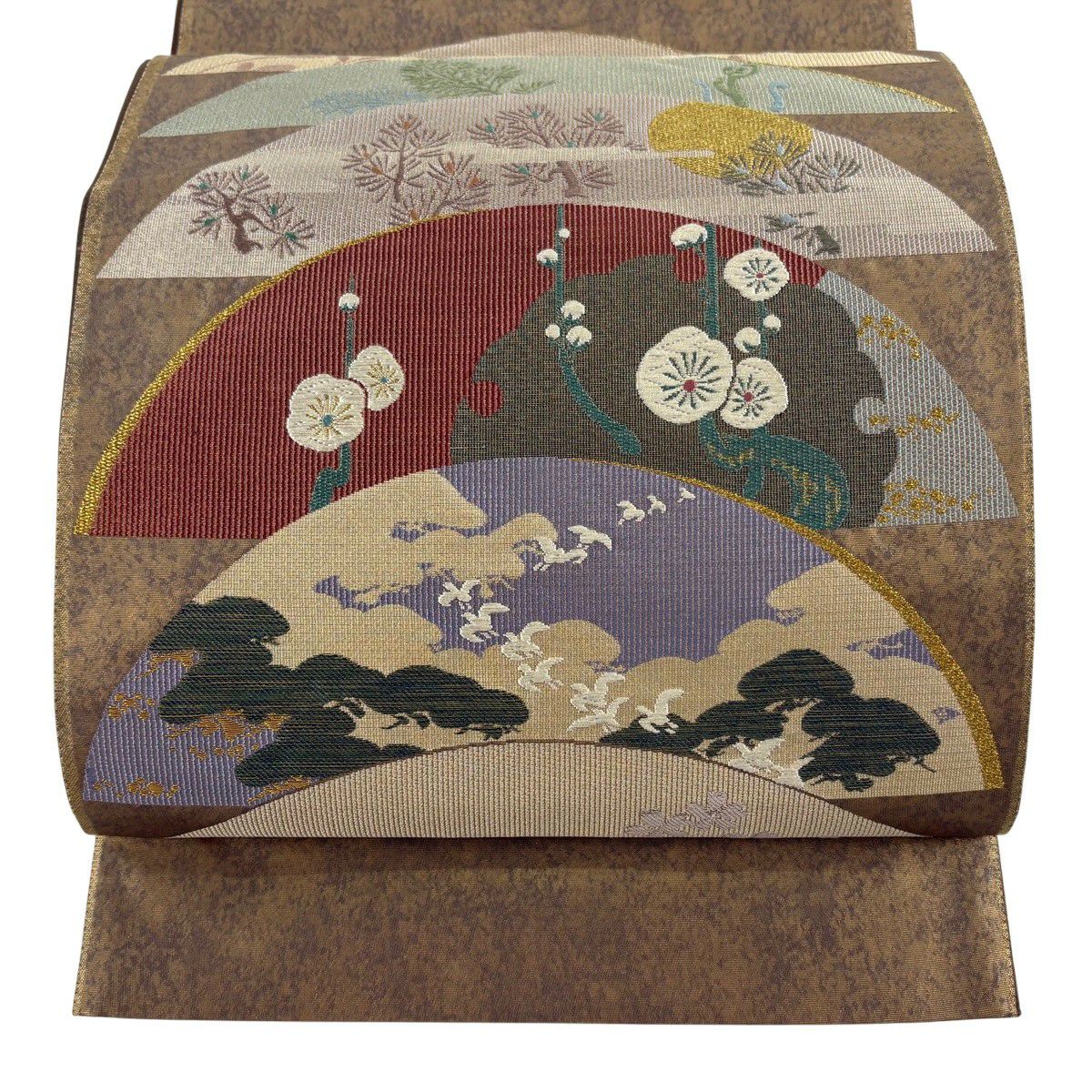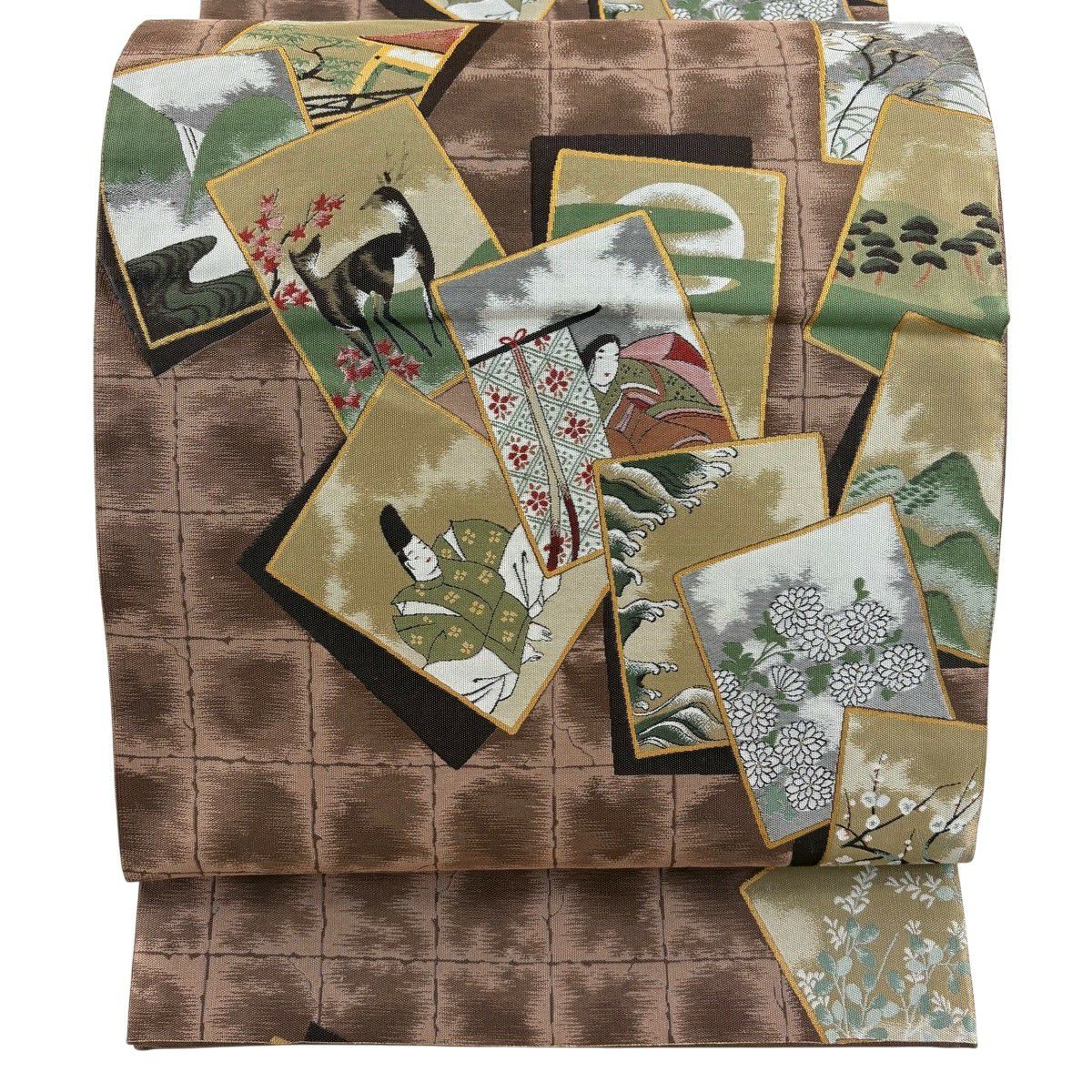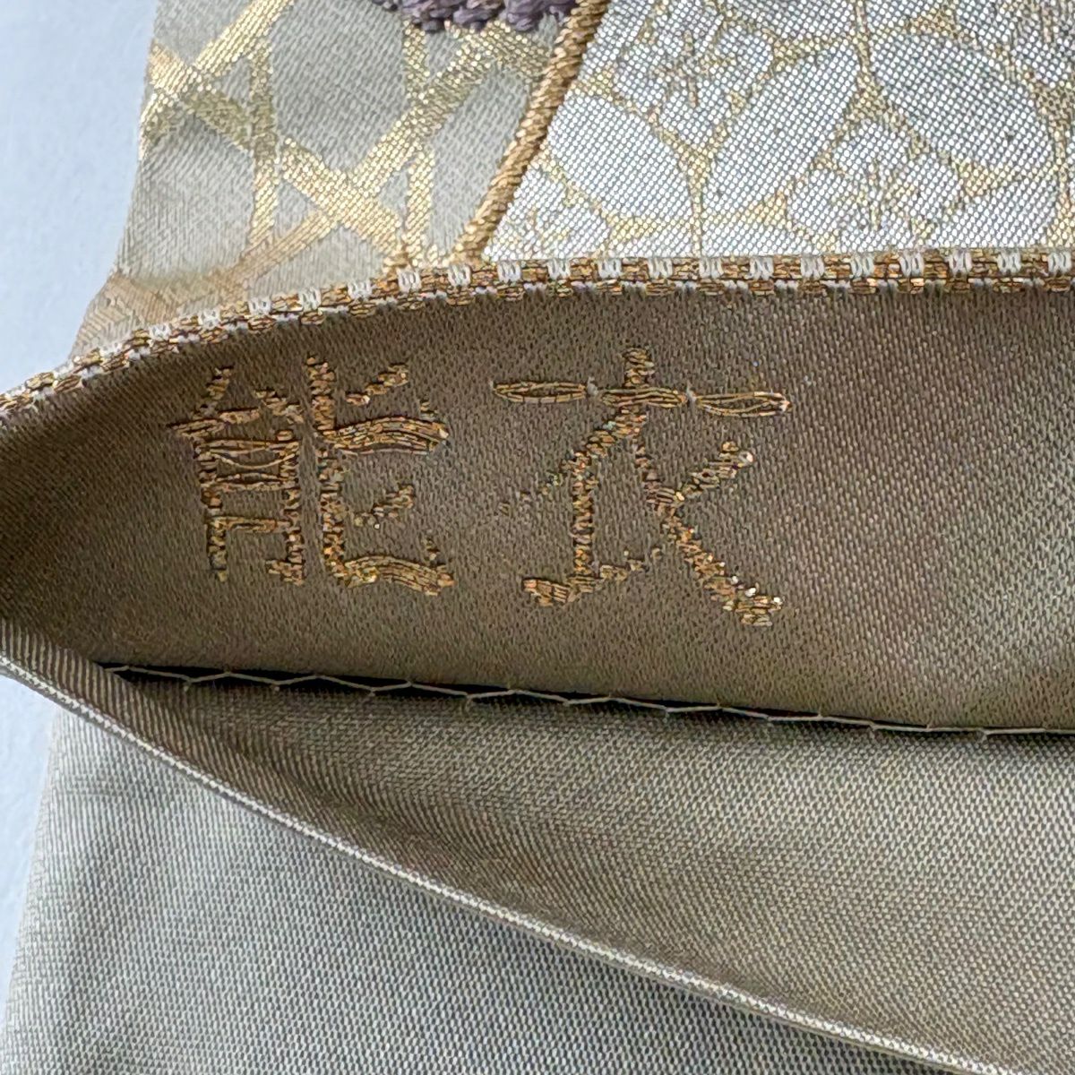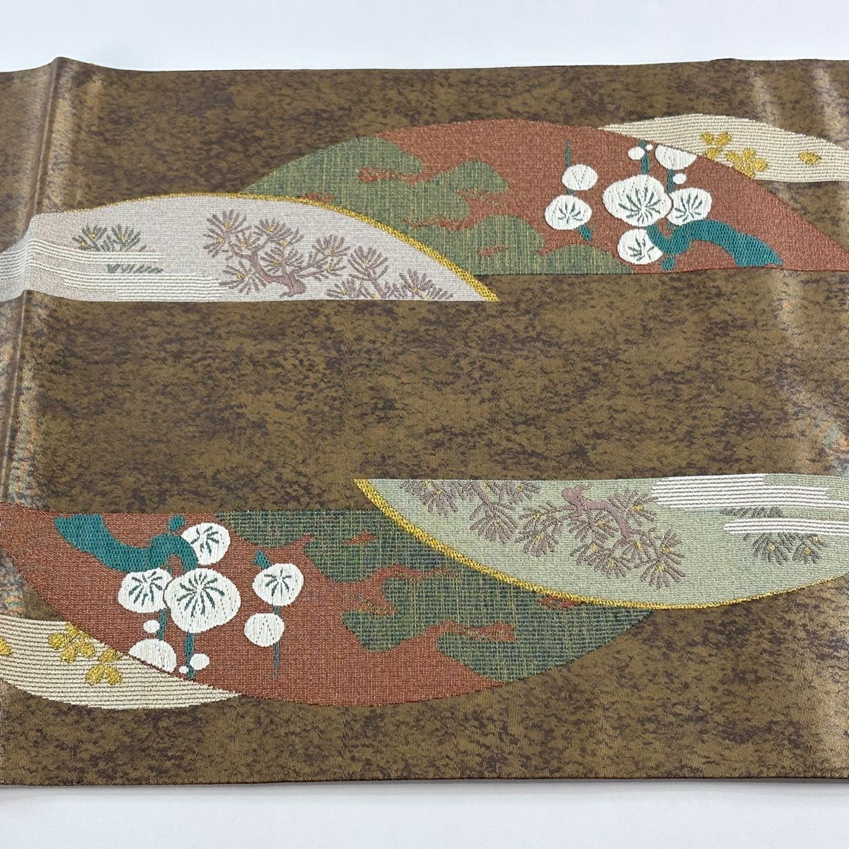 袋帯 秀品 関西仕立て 破れ色紙 霞 金銀糸 抹茶色 六通 正絹