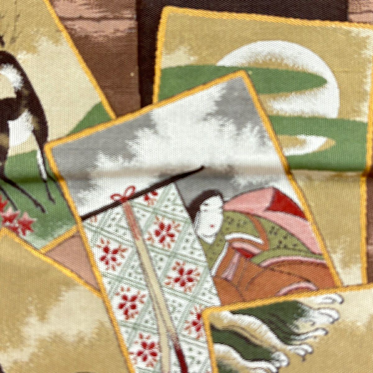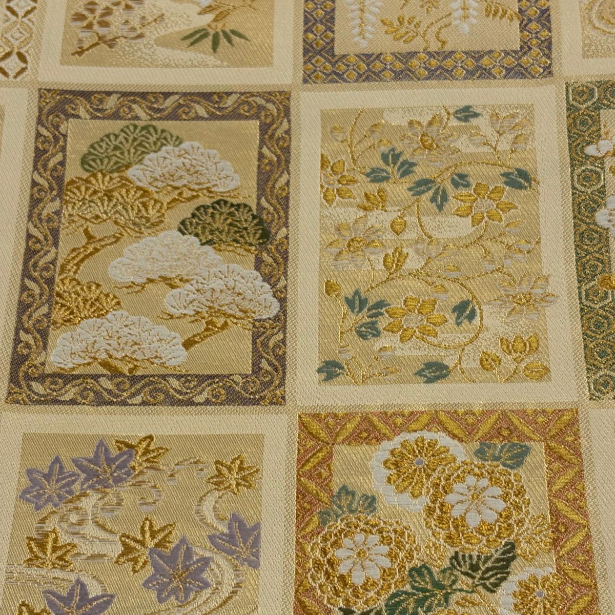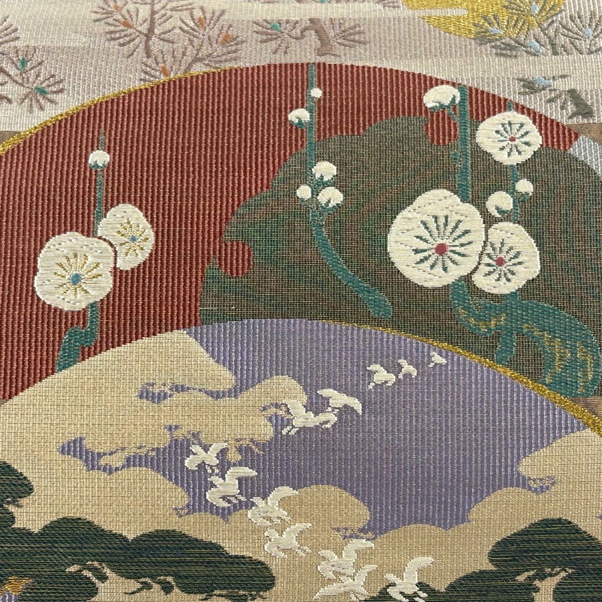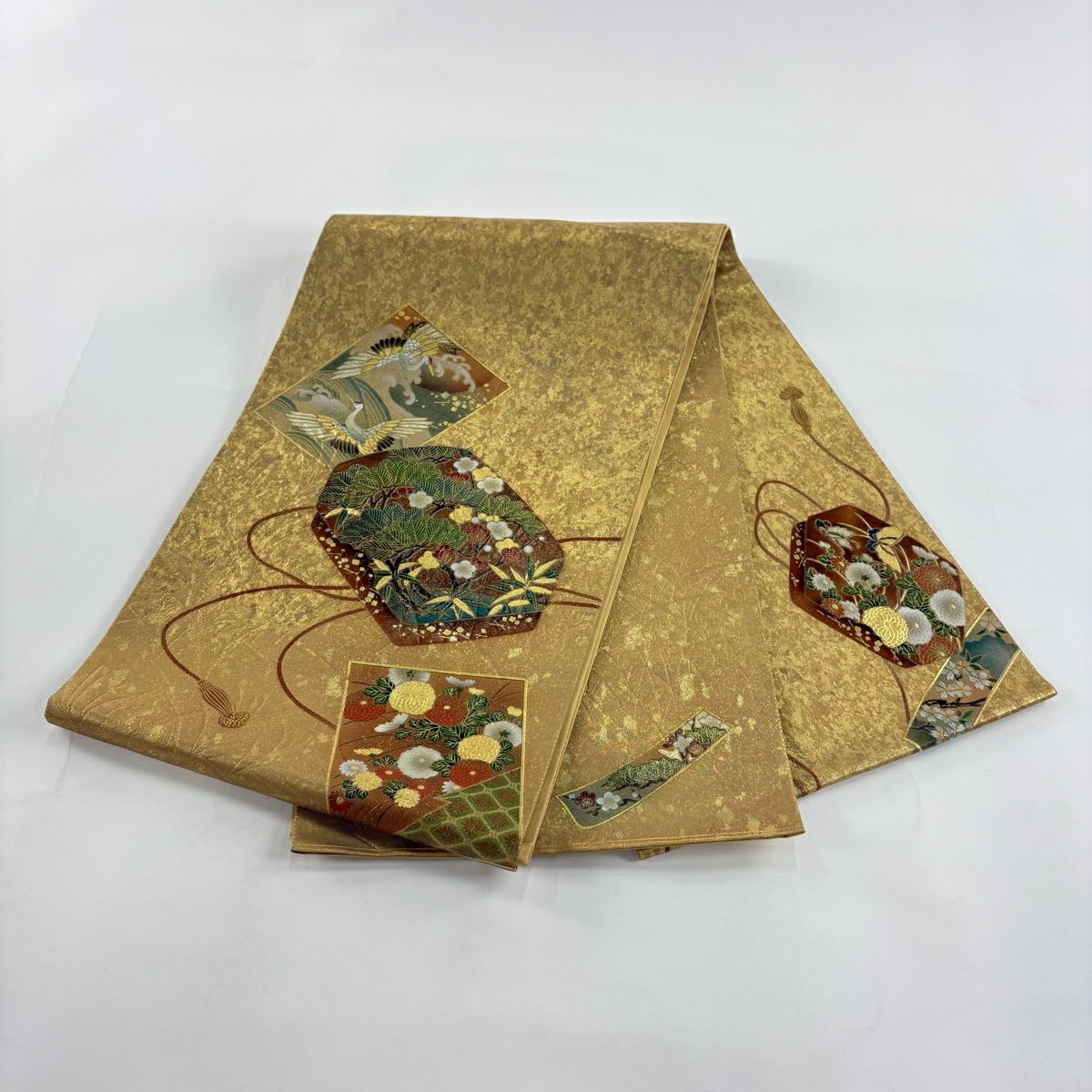 【美品】 袋帯 秀品 色紙集 松梅竹 色紙 金糸 箔 金色 六通 正絹