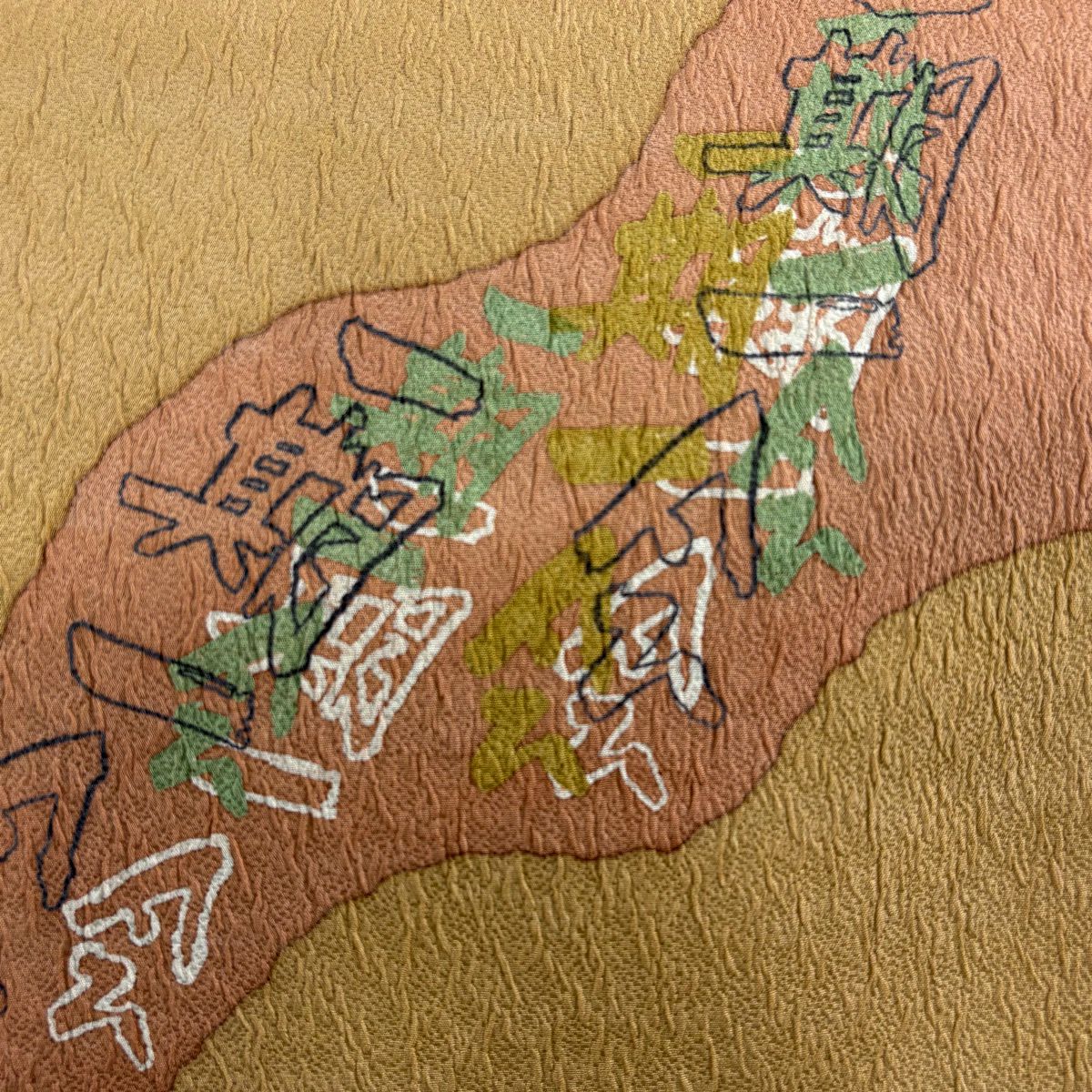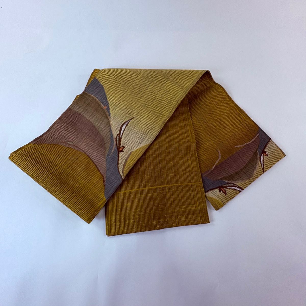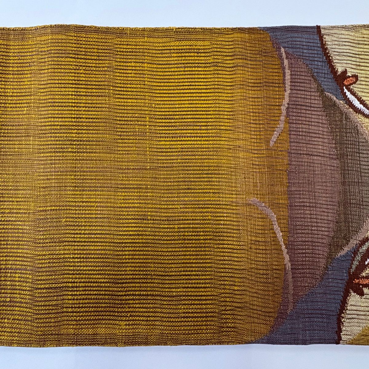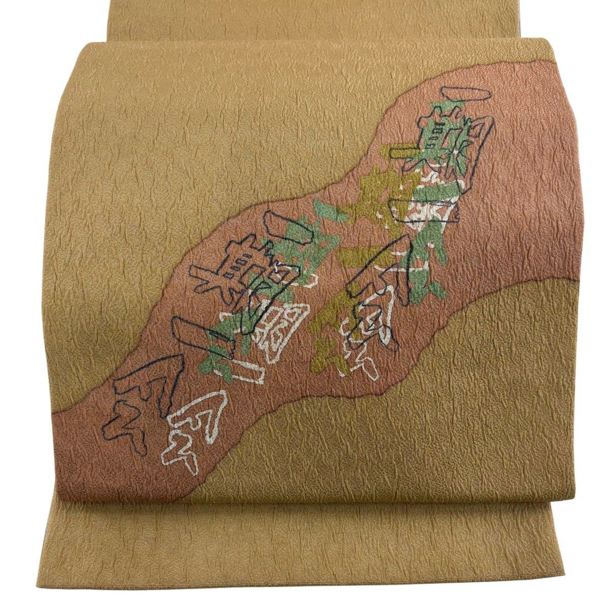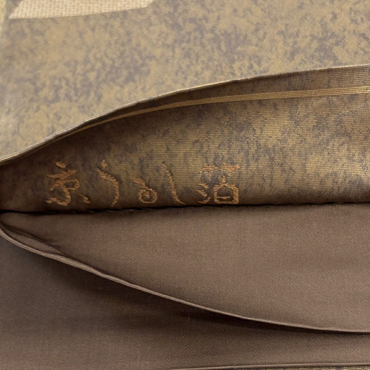【美品】 袋帯 秀品 関西仕立て 文字紋 黄土色 お太鼓柄 正絹