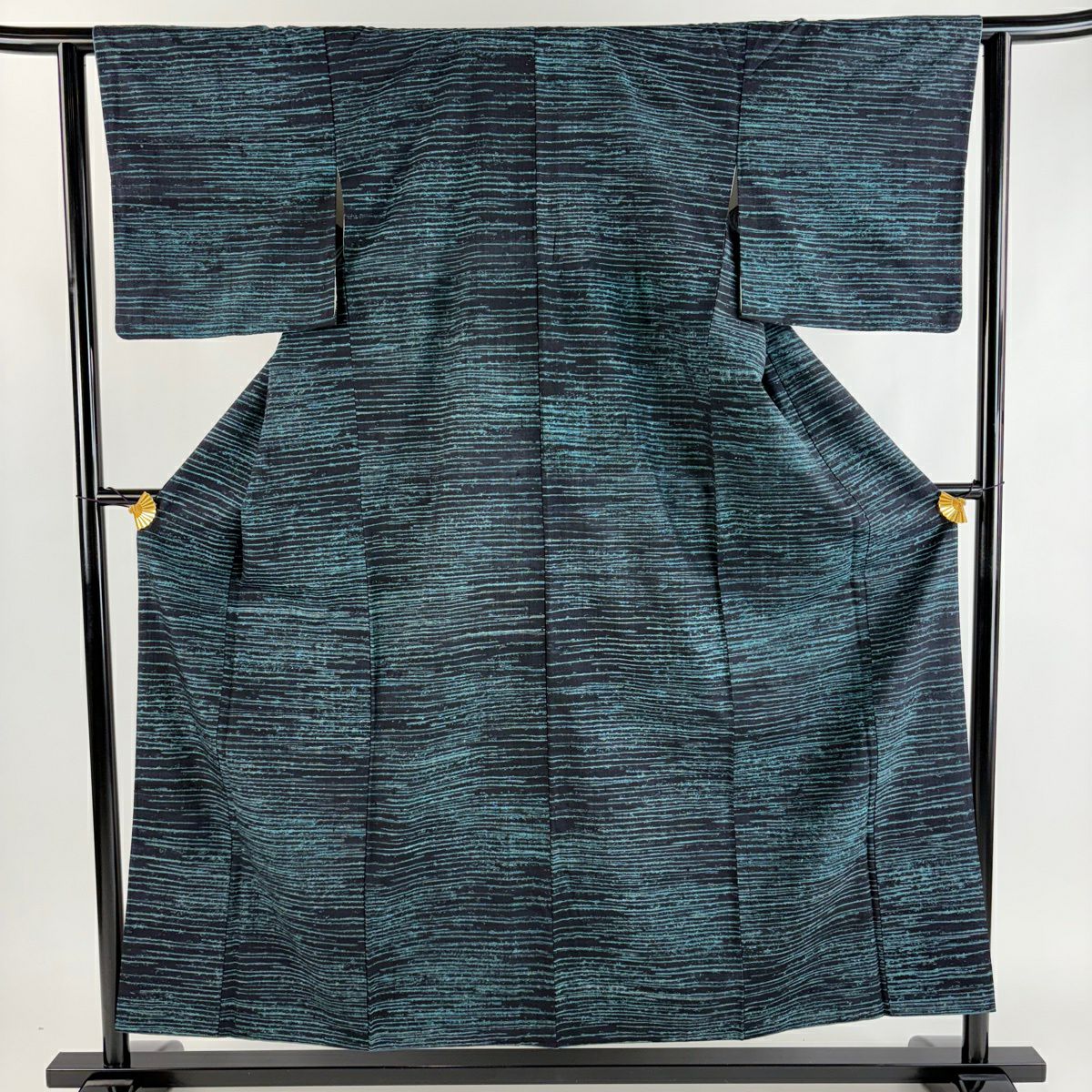 紬 身丈155.5cm 裄丈62cm S 袷 縞 濃紺 正絹 秀品