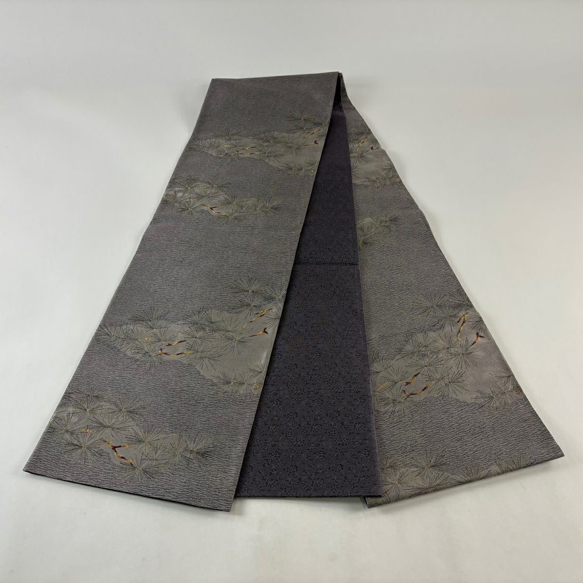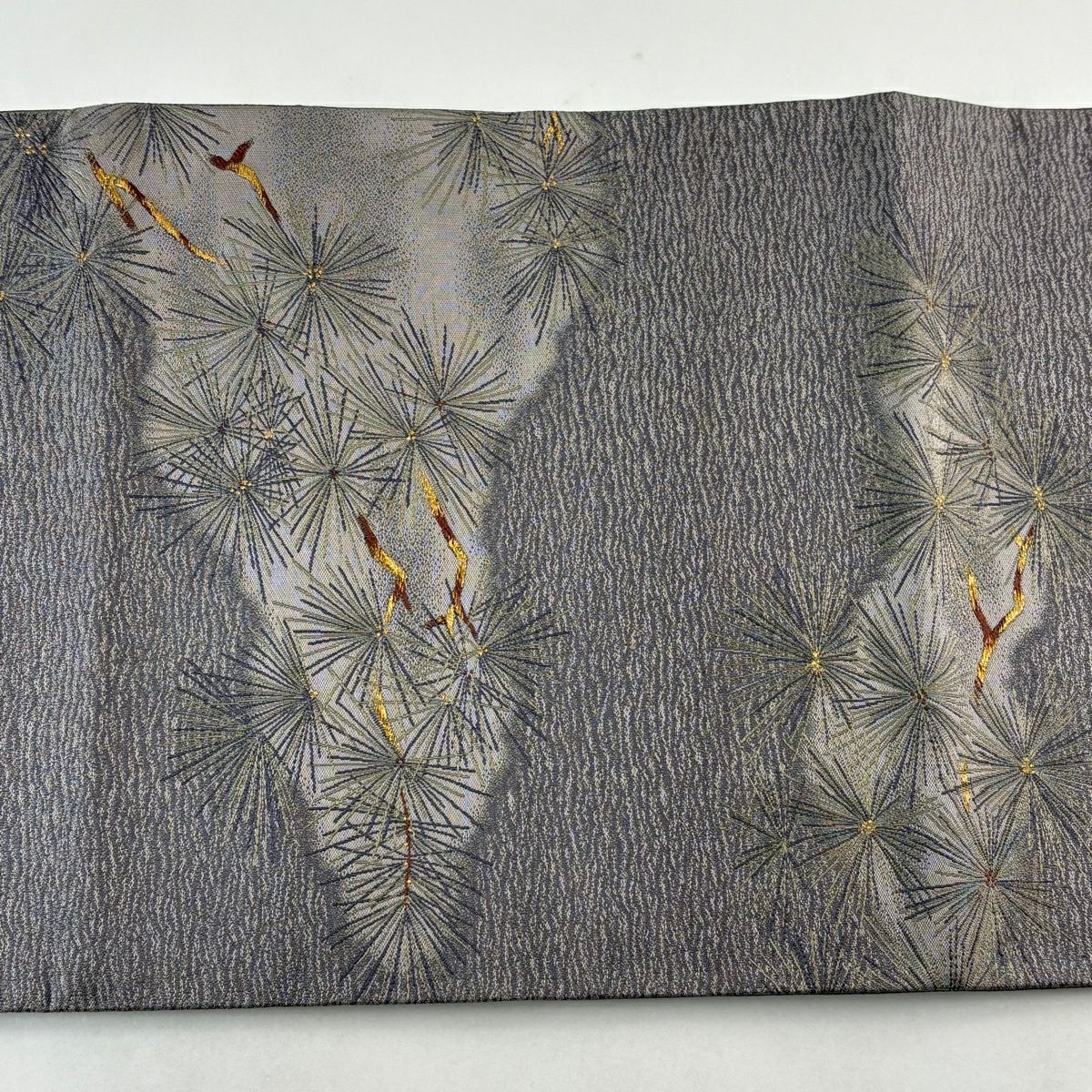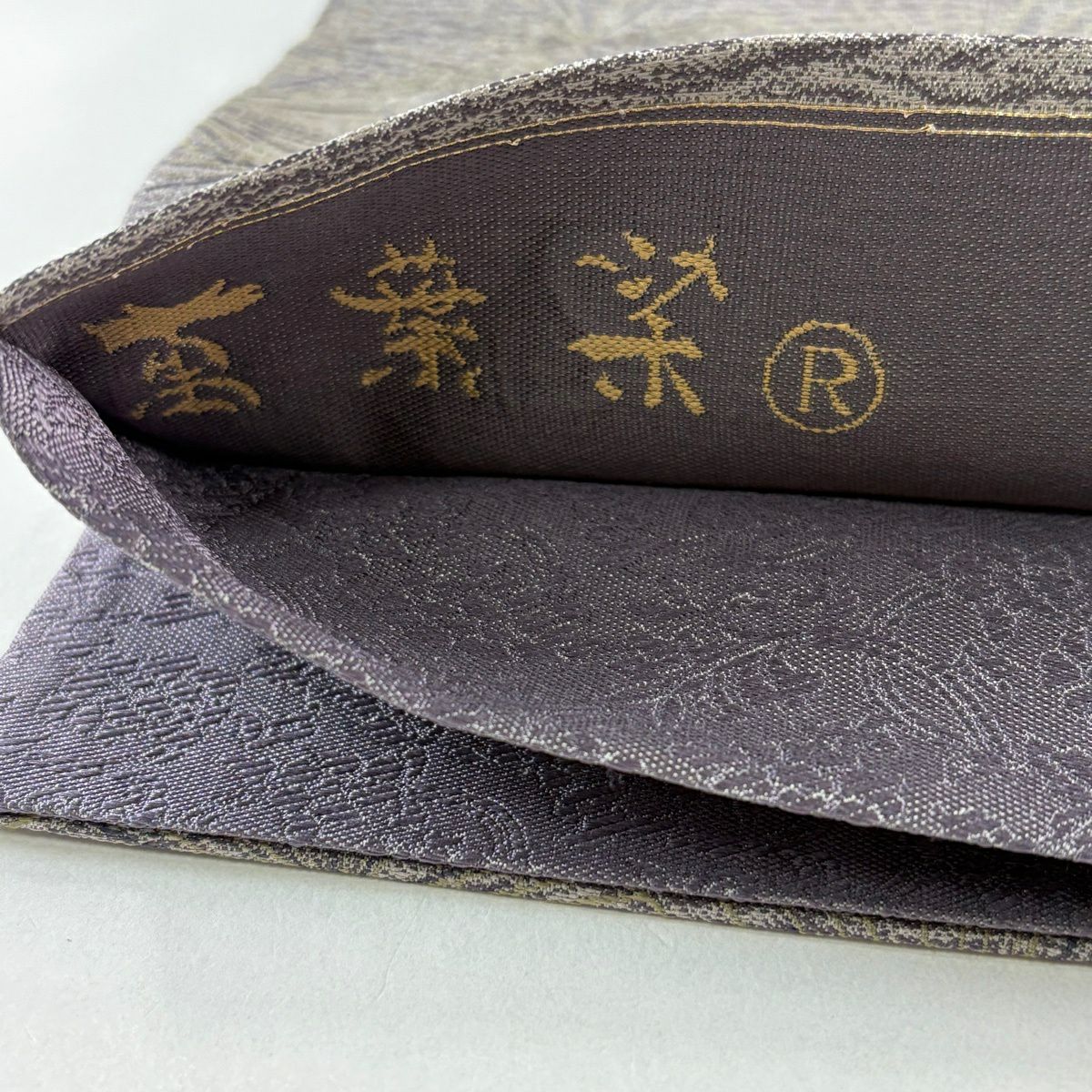 【美品】 袋帯 秀品 紹巴 萬葉染 若松 金糸 灰紫 全通 正絹