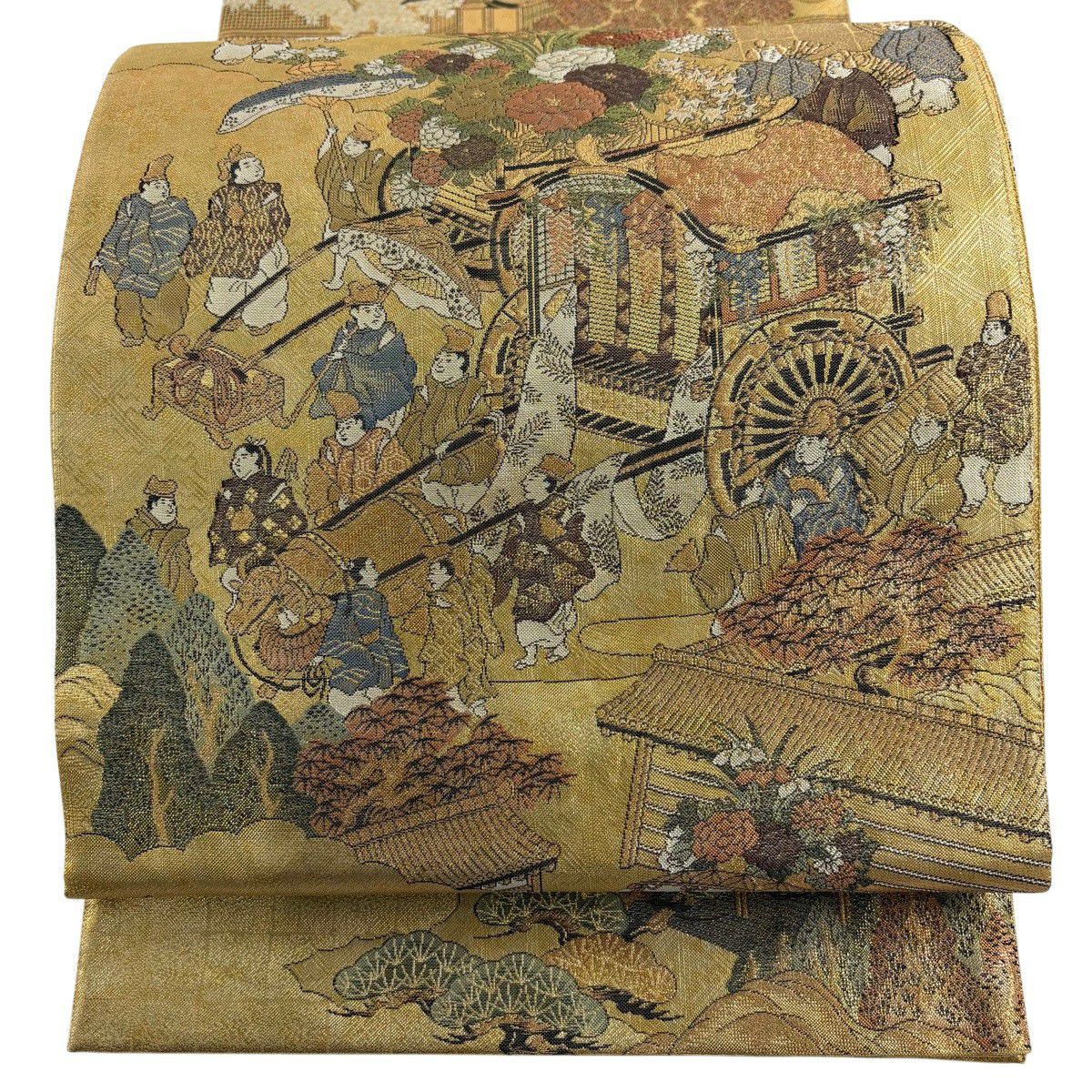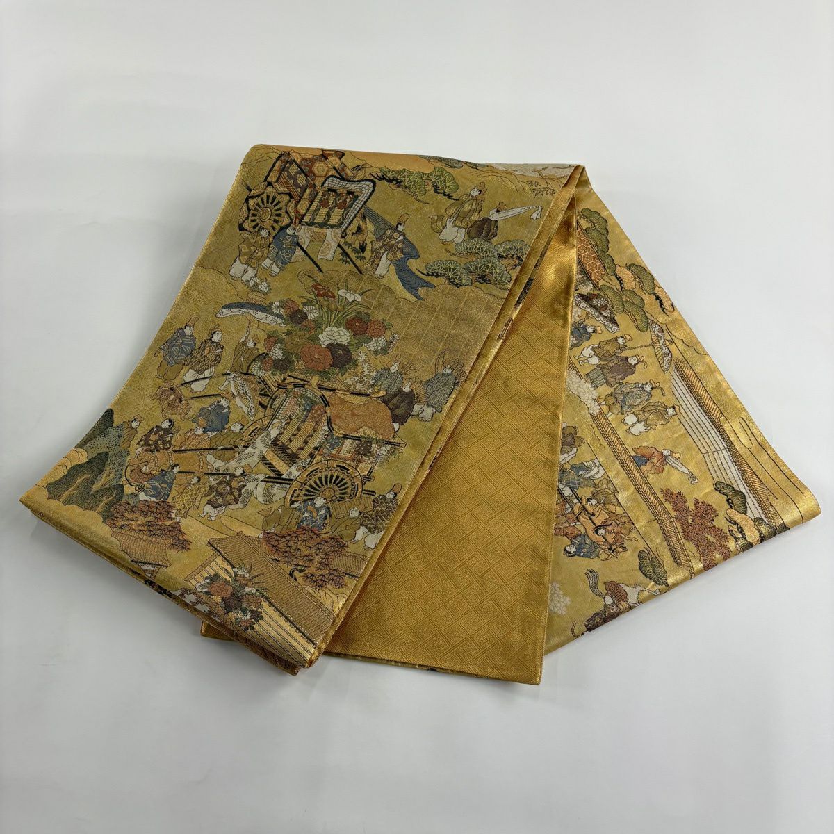 【美品】 袋帯 秀品 華文 宝尽くし 金銀糸 箔 金色 六通 正絹