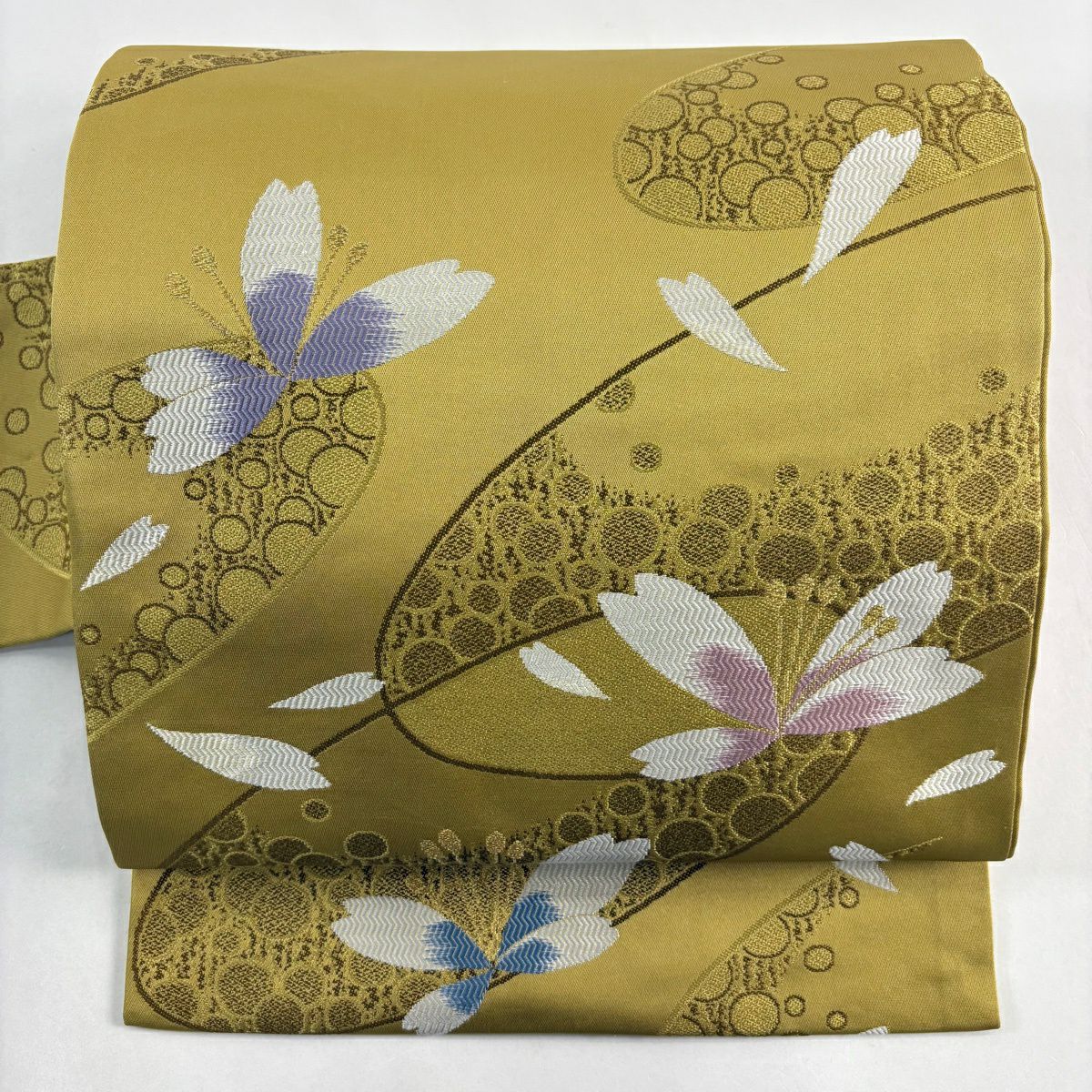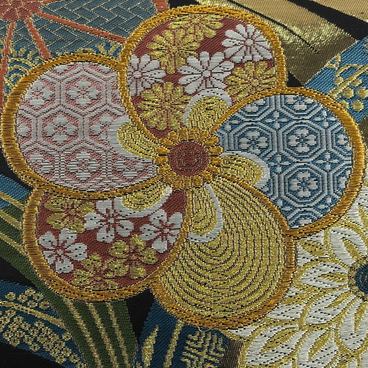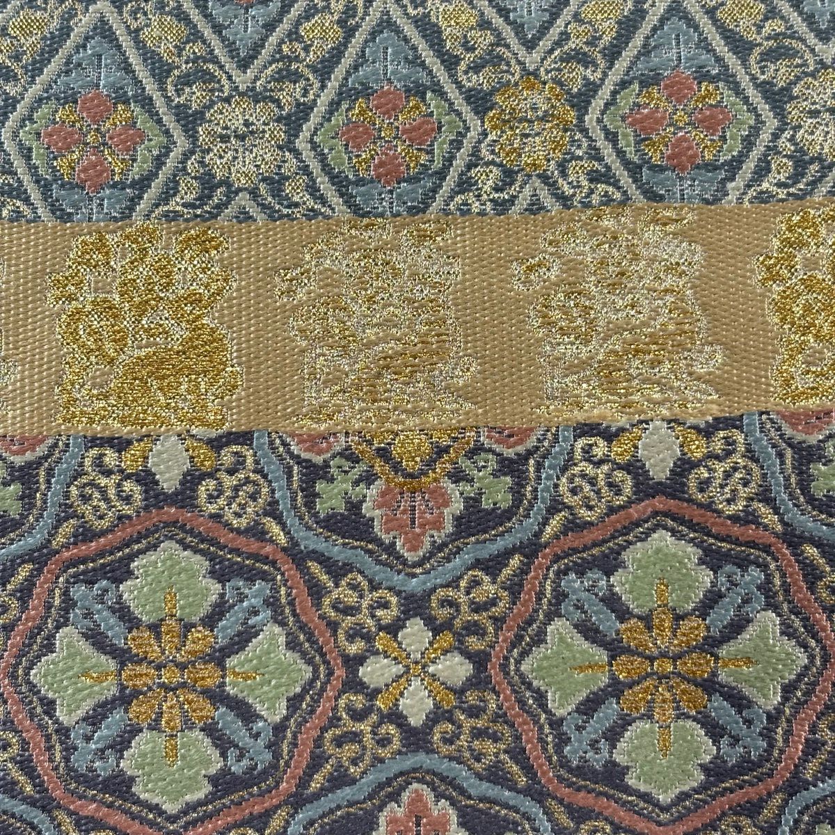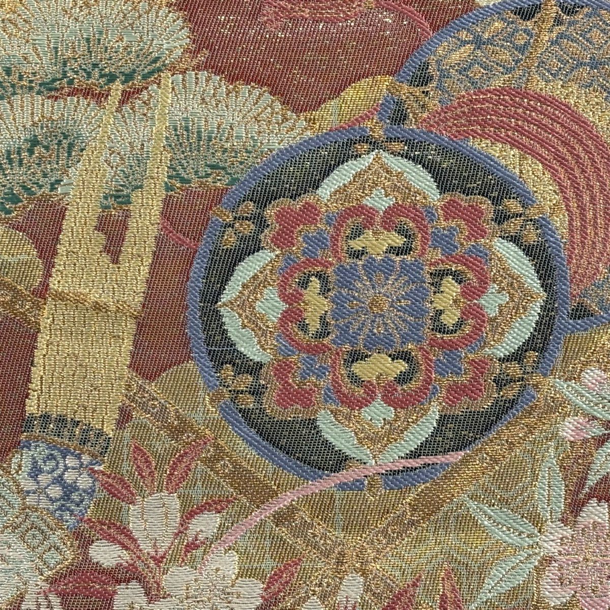 【美品】 袋帯 秀品 蜀江花丸文 花菱 箔 金糸 金色 六通 正絹