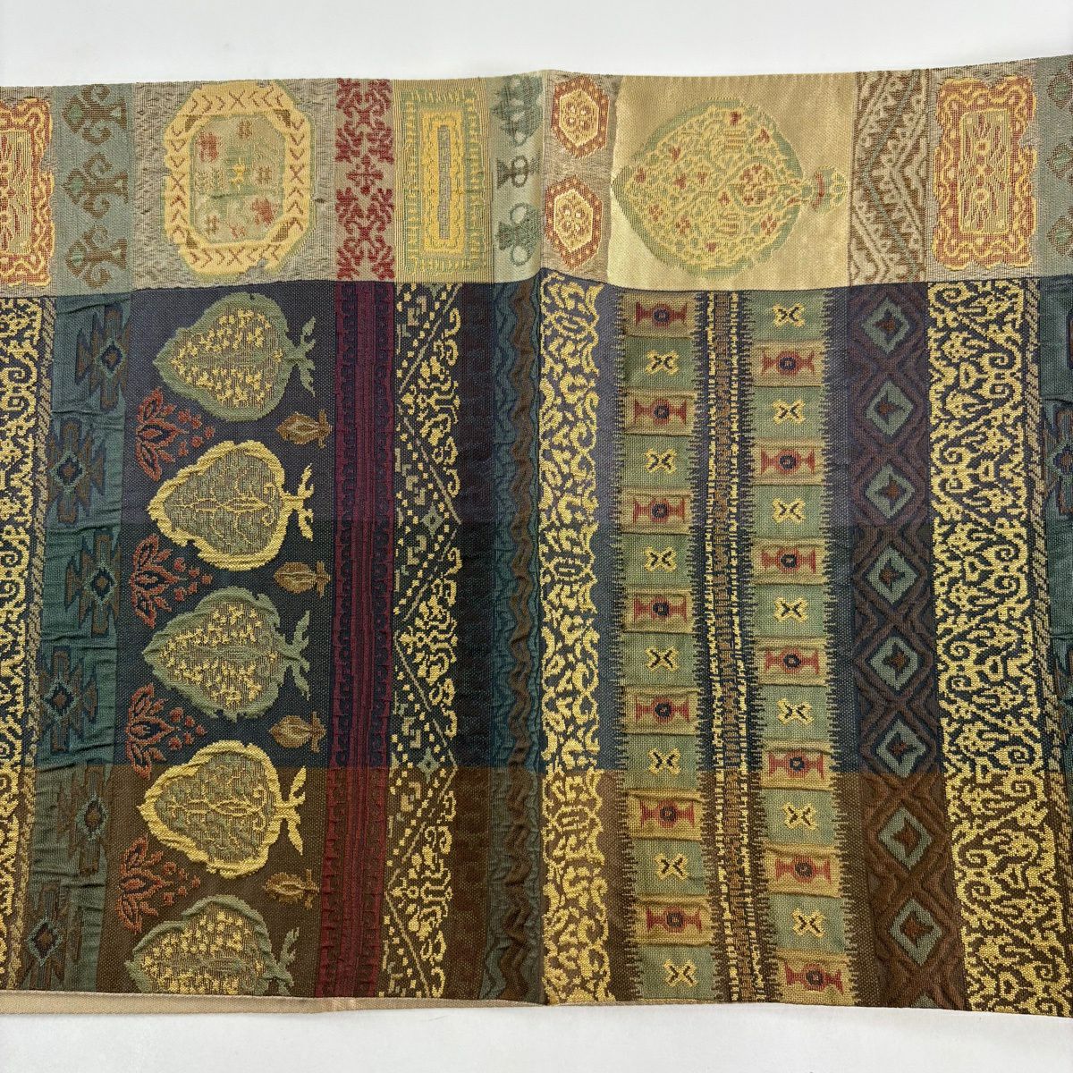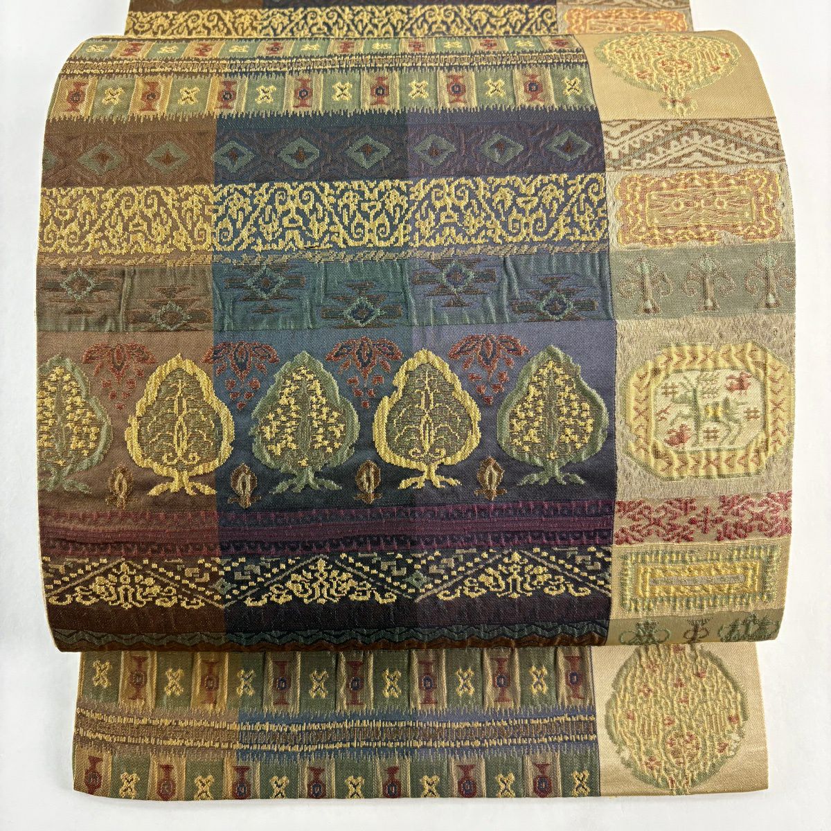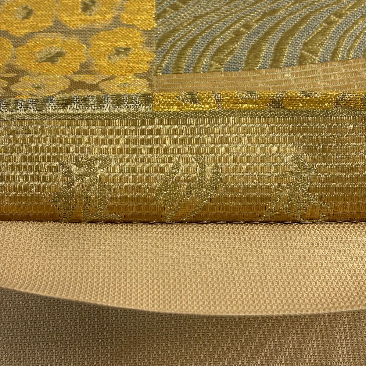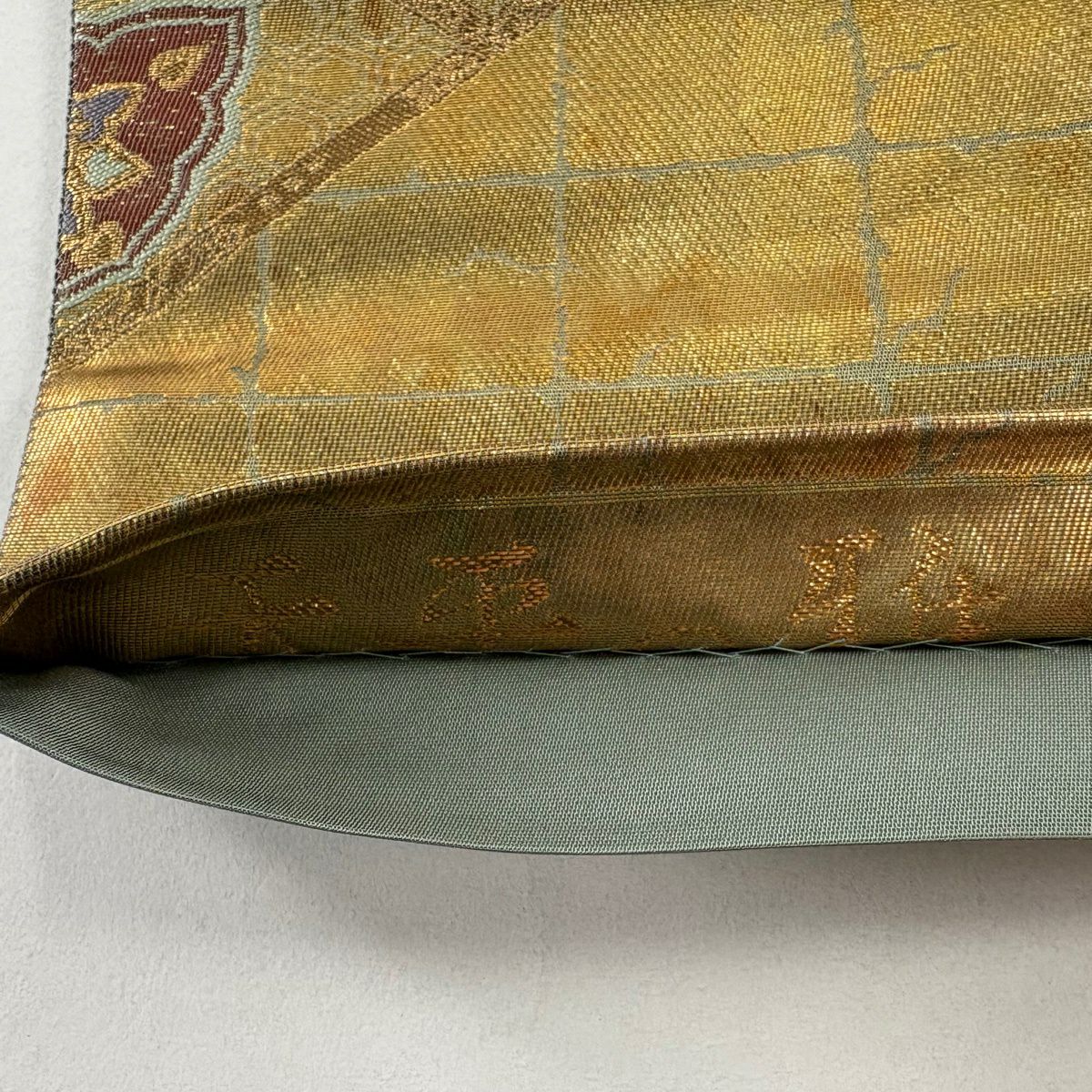 【美品】 袋帯 秀品 古錦集宝文 金糸 箔 山吹茶色 六通 正絹
