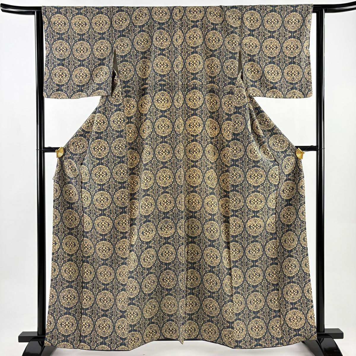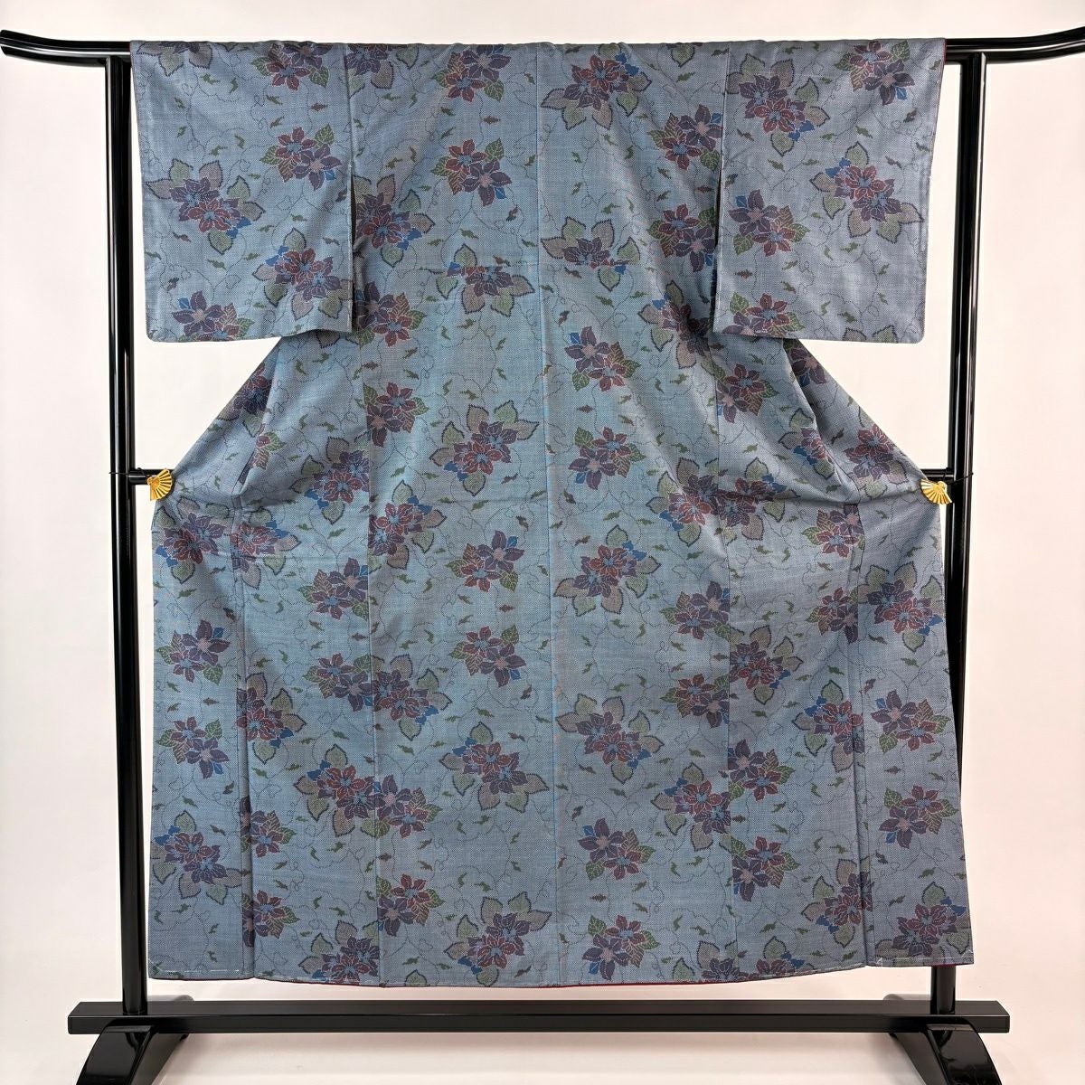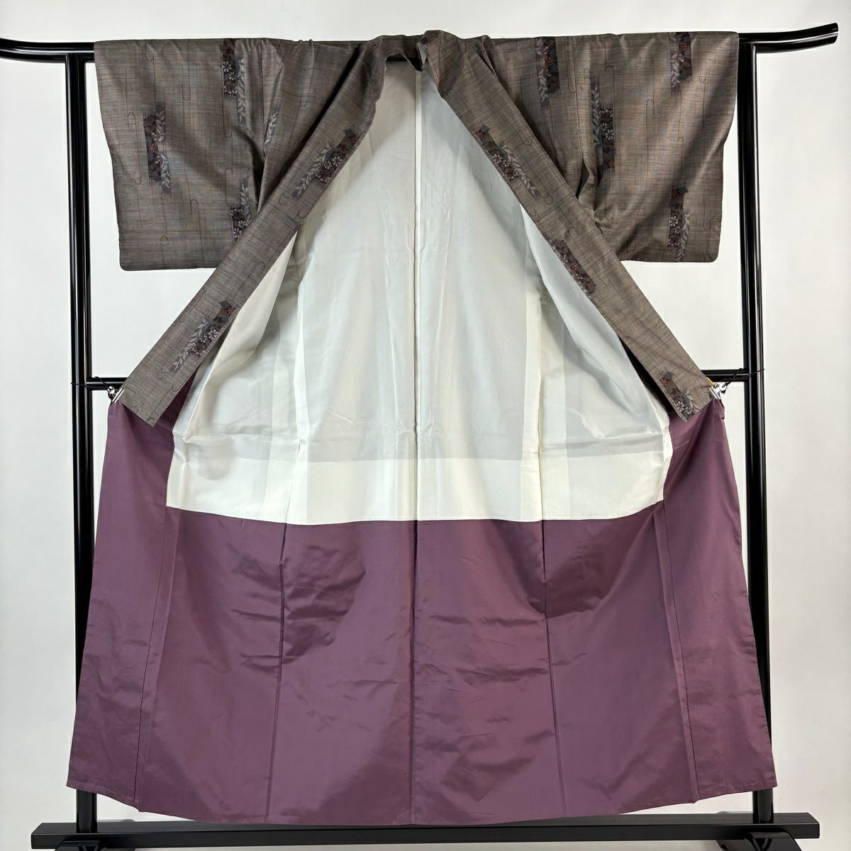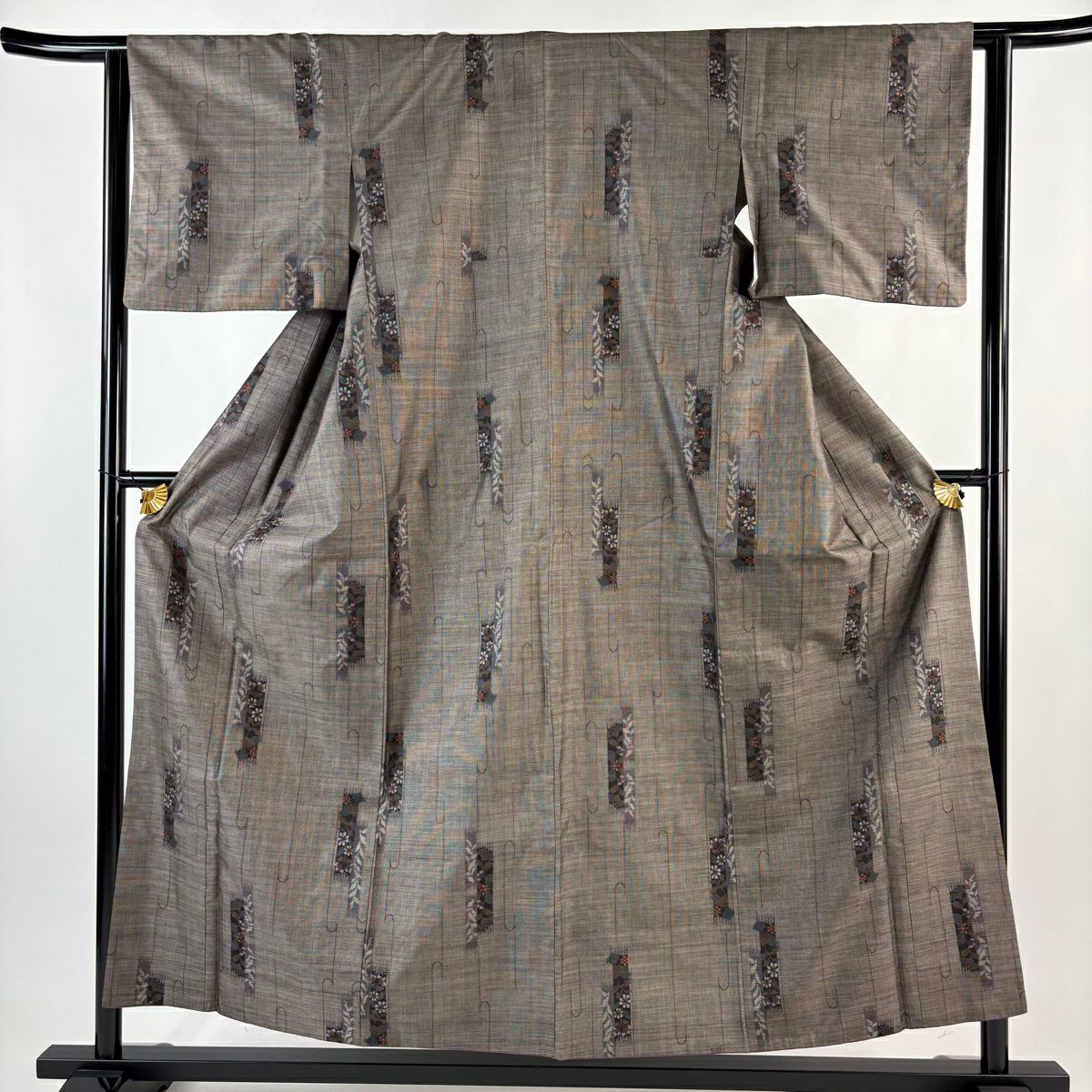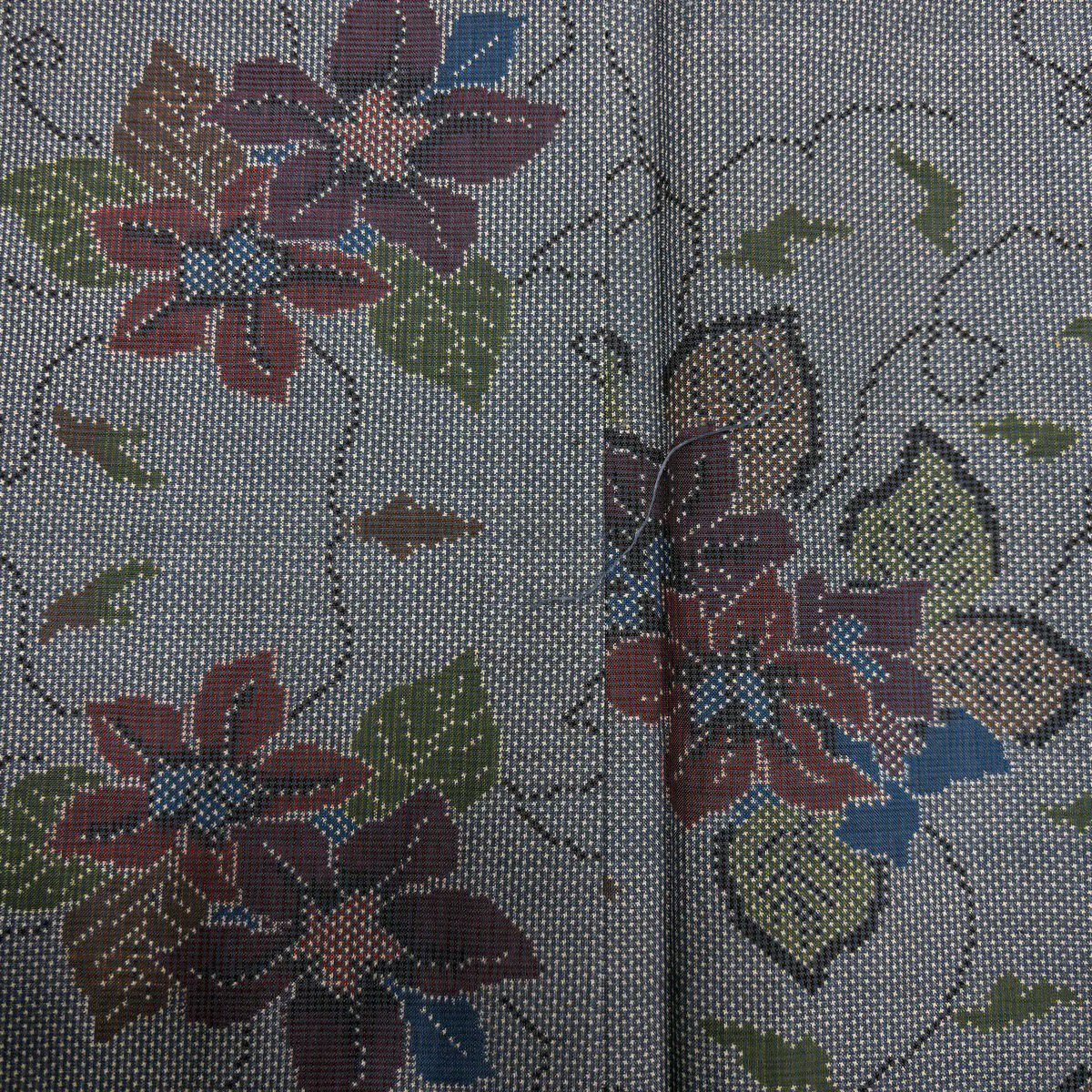 小紋 身丈160cm 裄丈63cm S 袷 草花 灰色 正絹 秀品