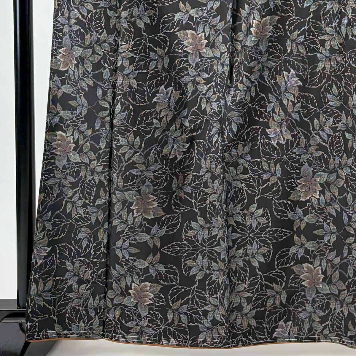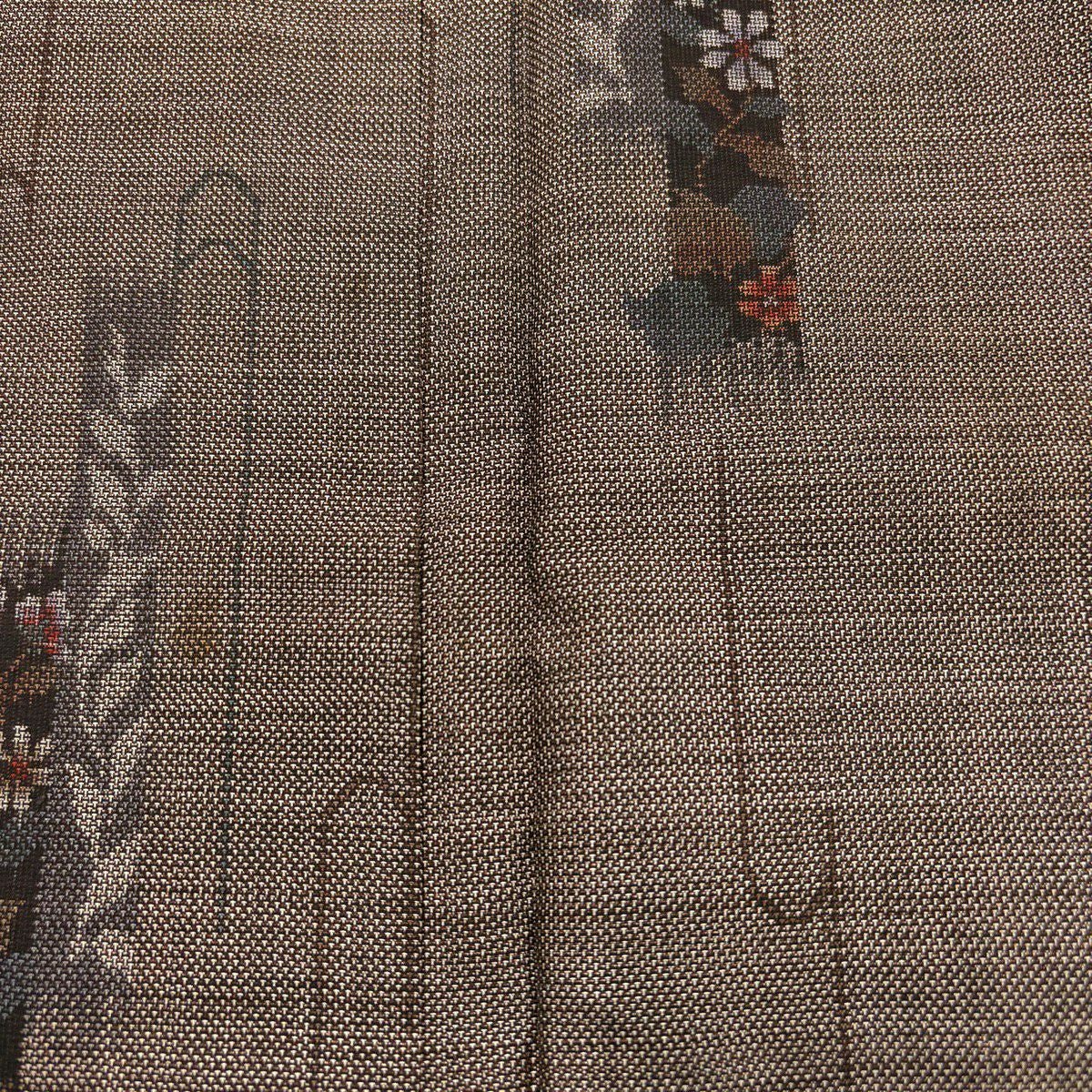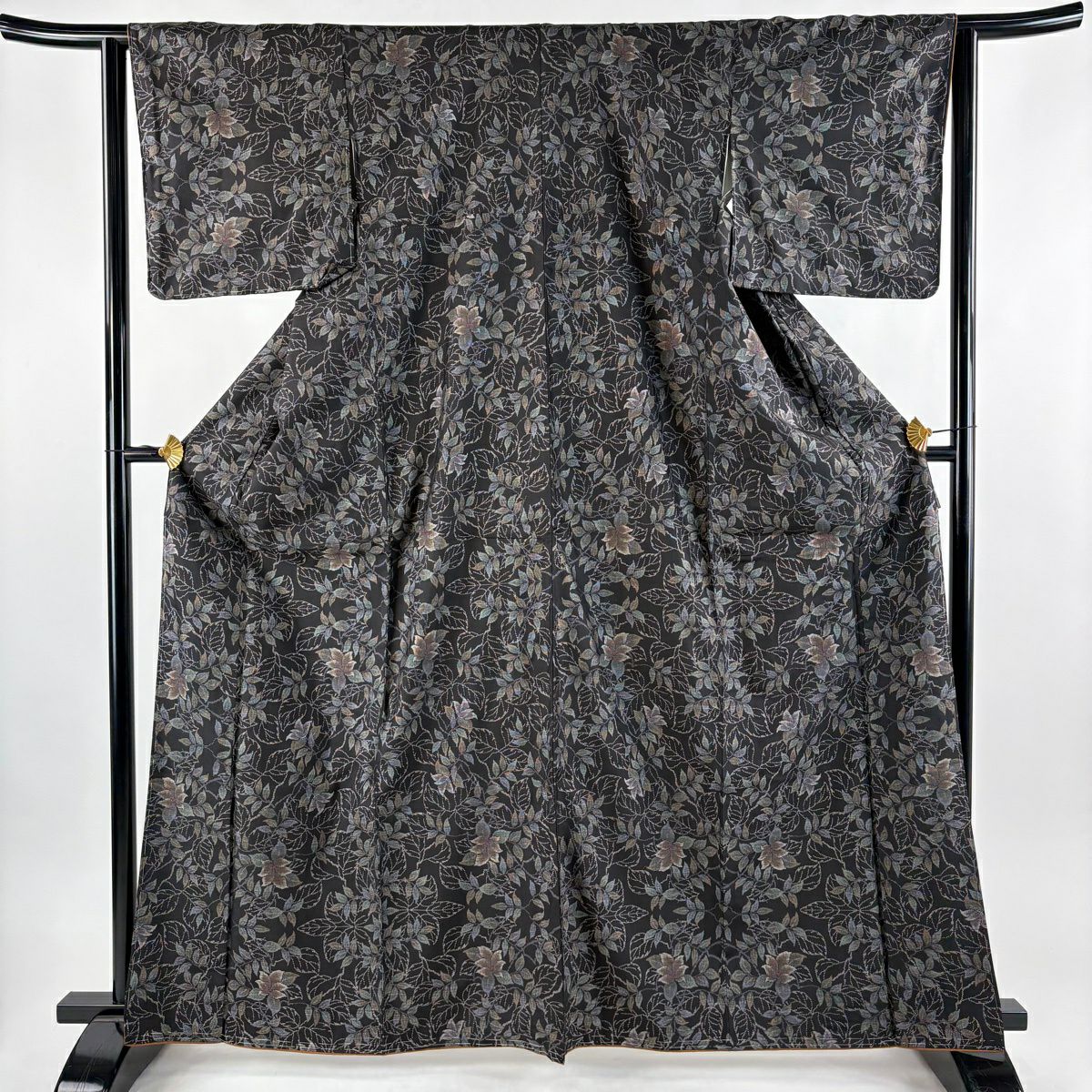 紬 身丈155cm 裄丈62cm S 袷 草花 焦茶色 正絹 秀品