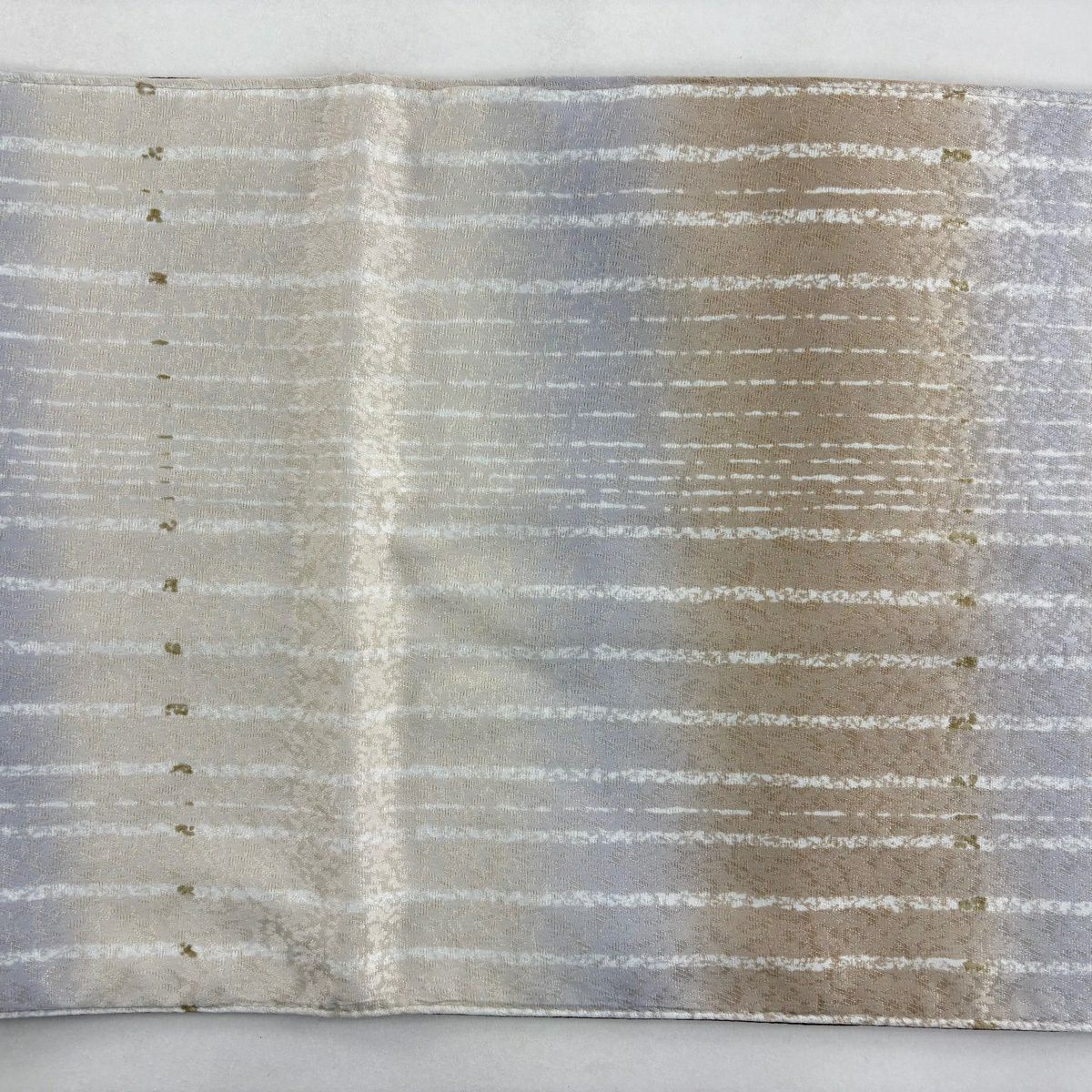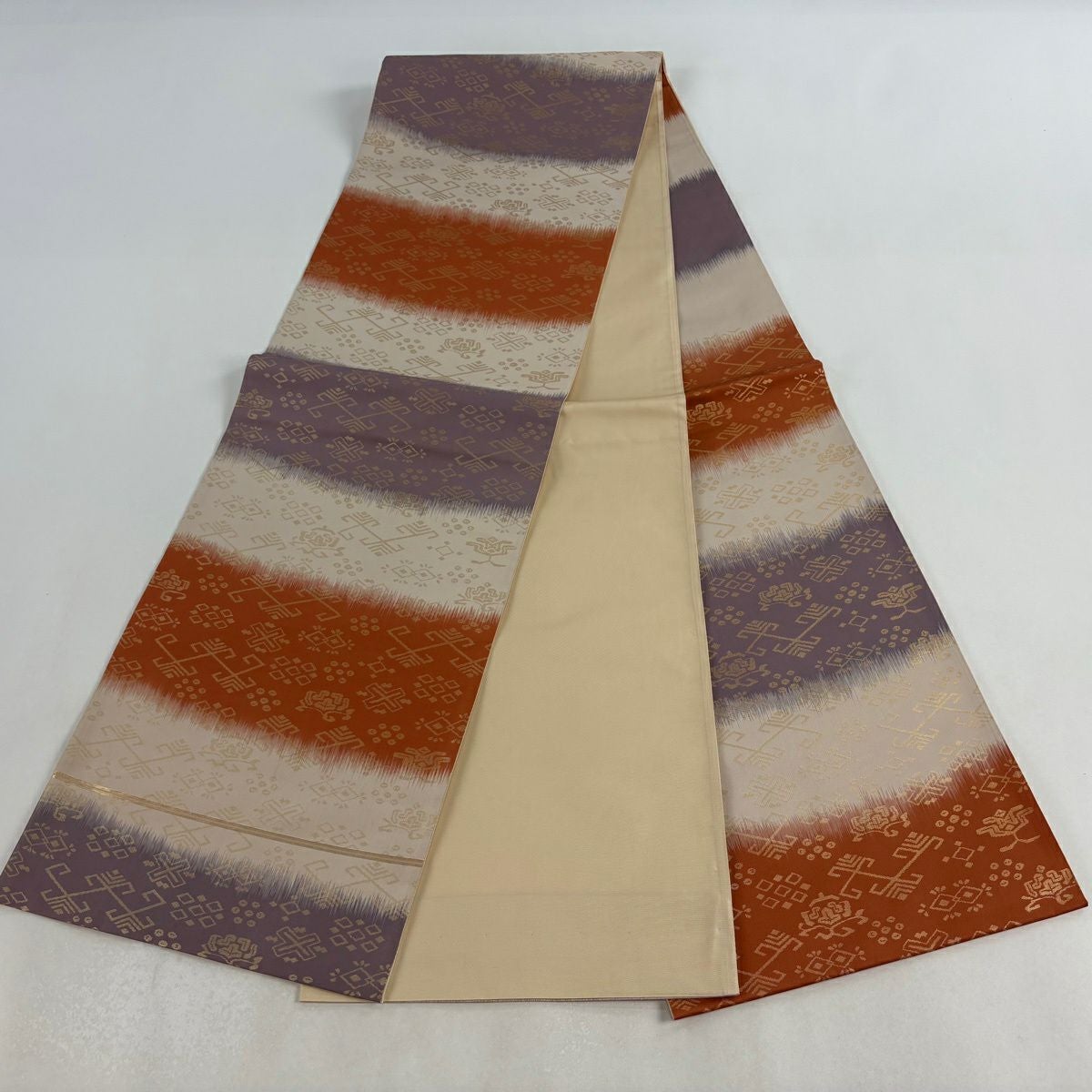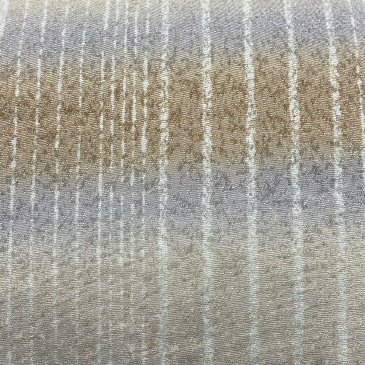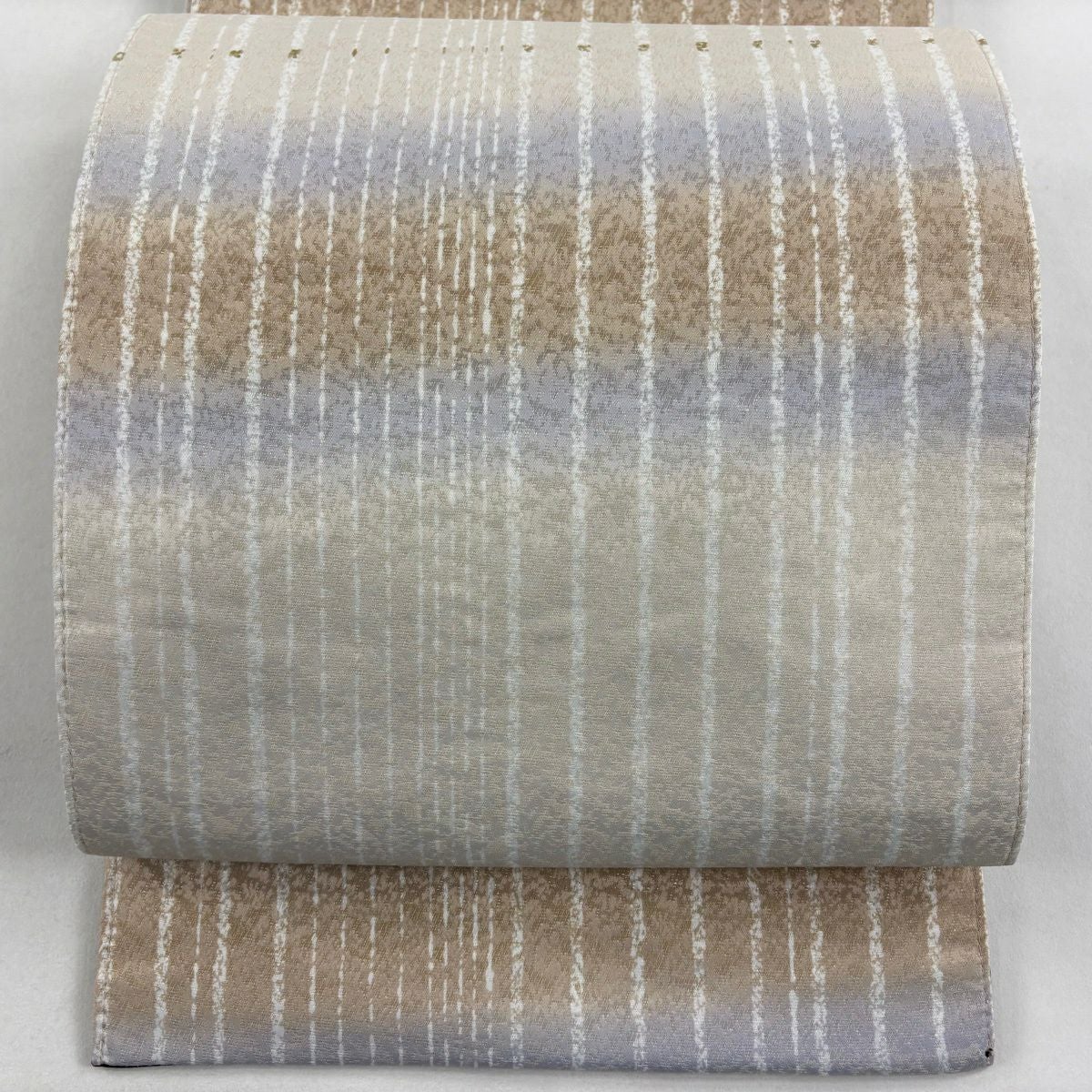 【美品】 袋帯 秀品 幾何学 段縞 箔 ベージュ 六通 正絹