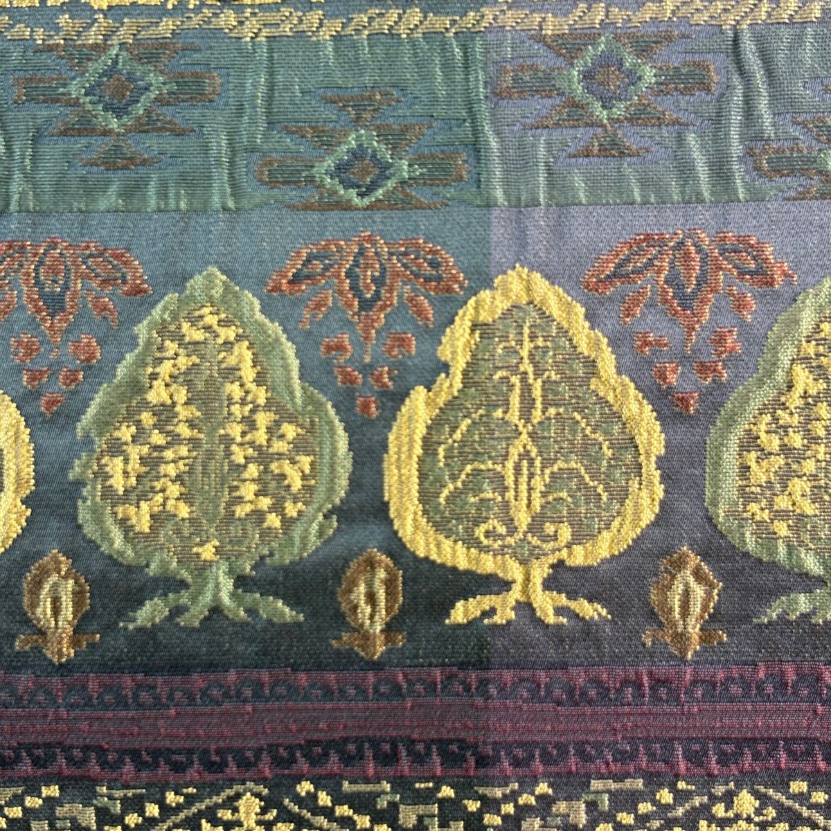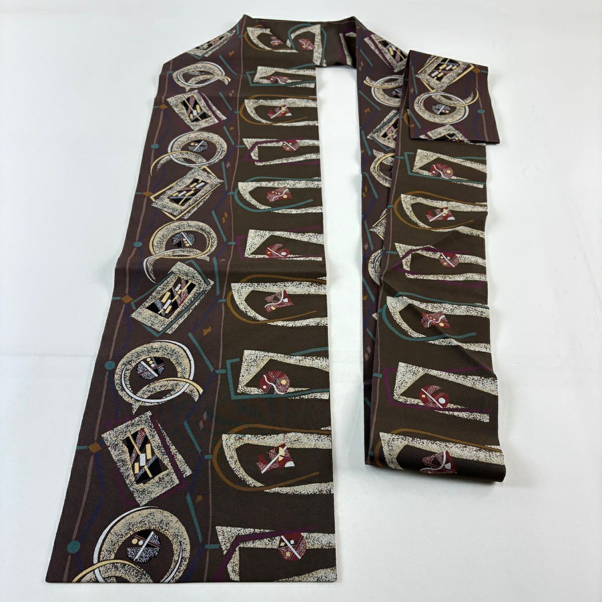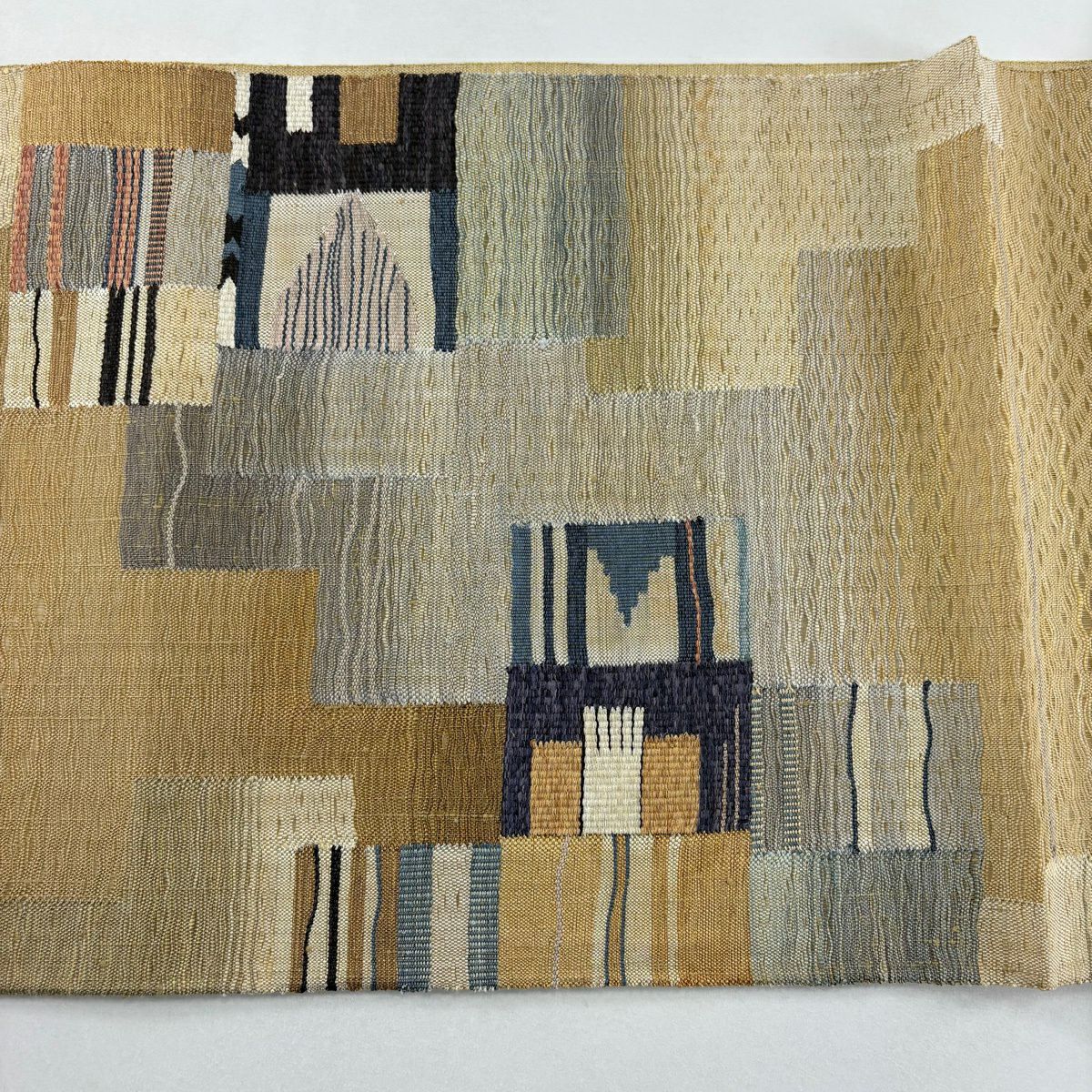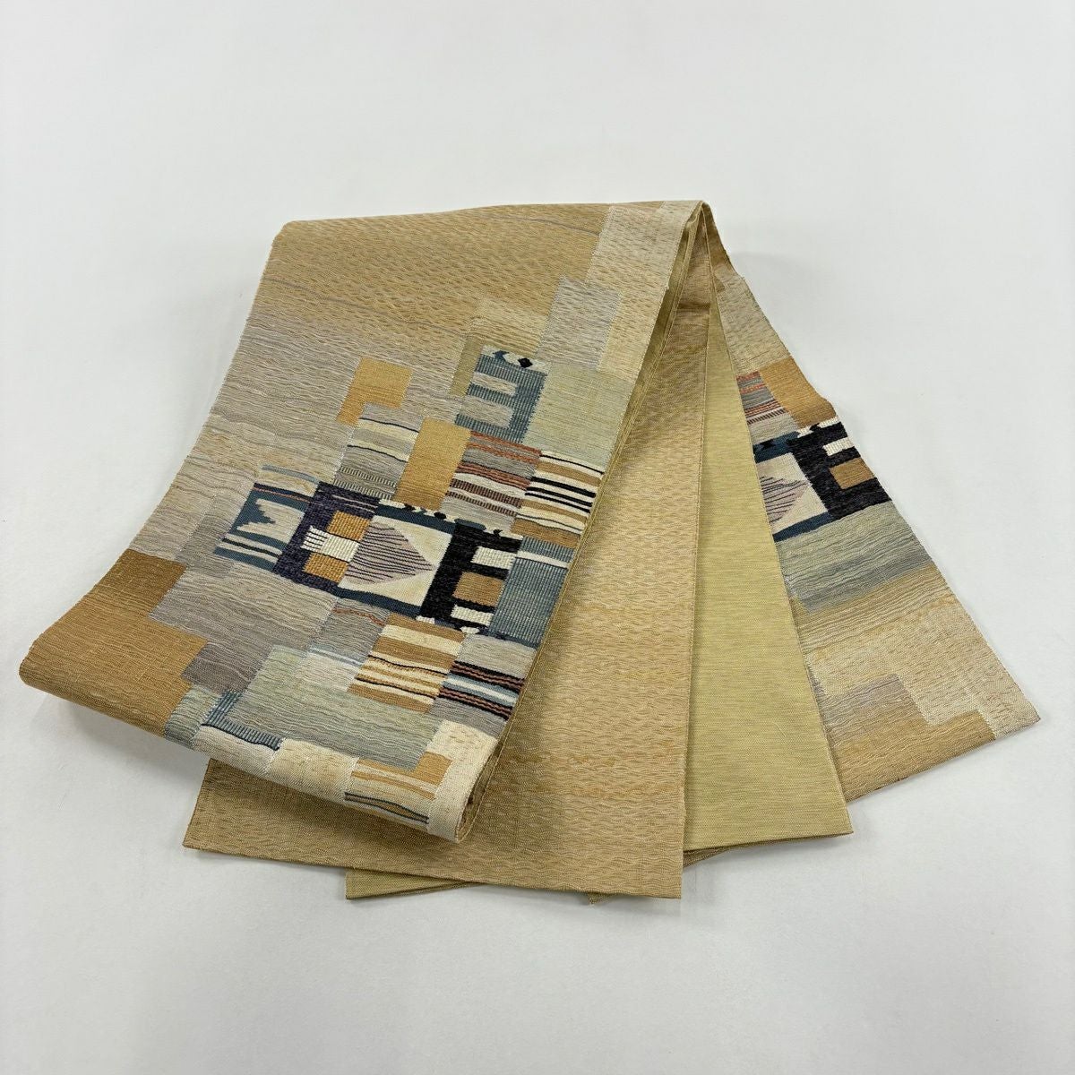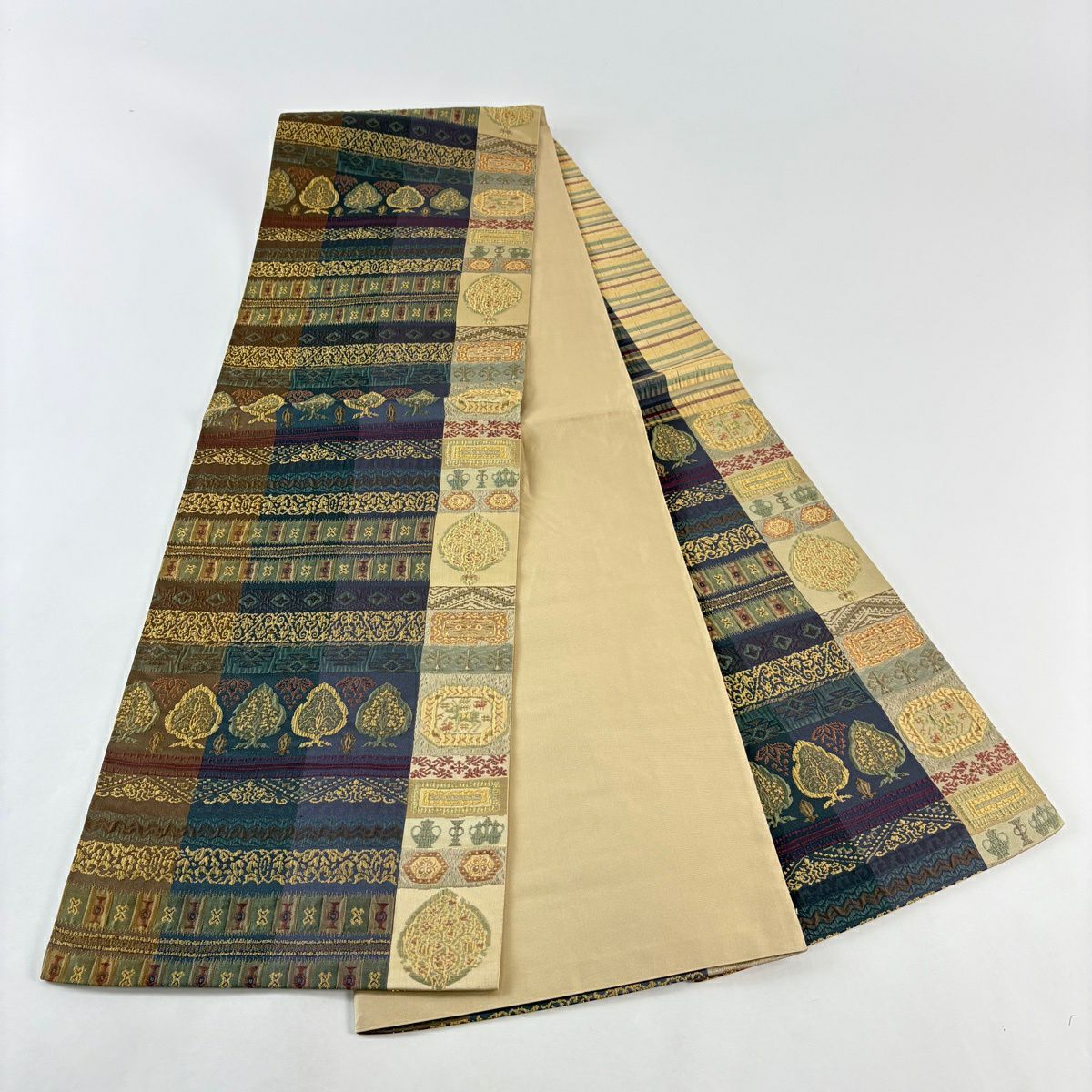 【美品】 袋帯 秀品 樹木 幾何学模様 ベージュ 六通 正絹