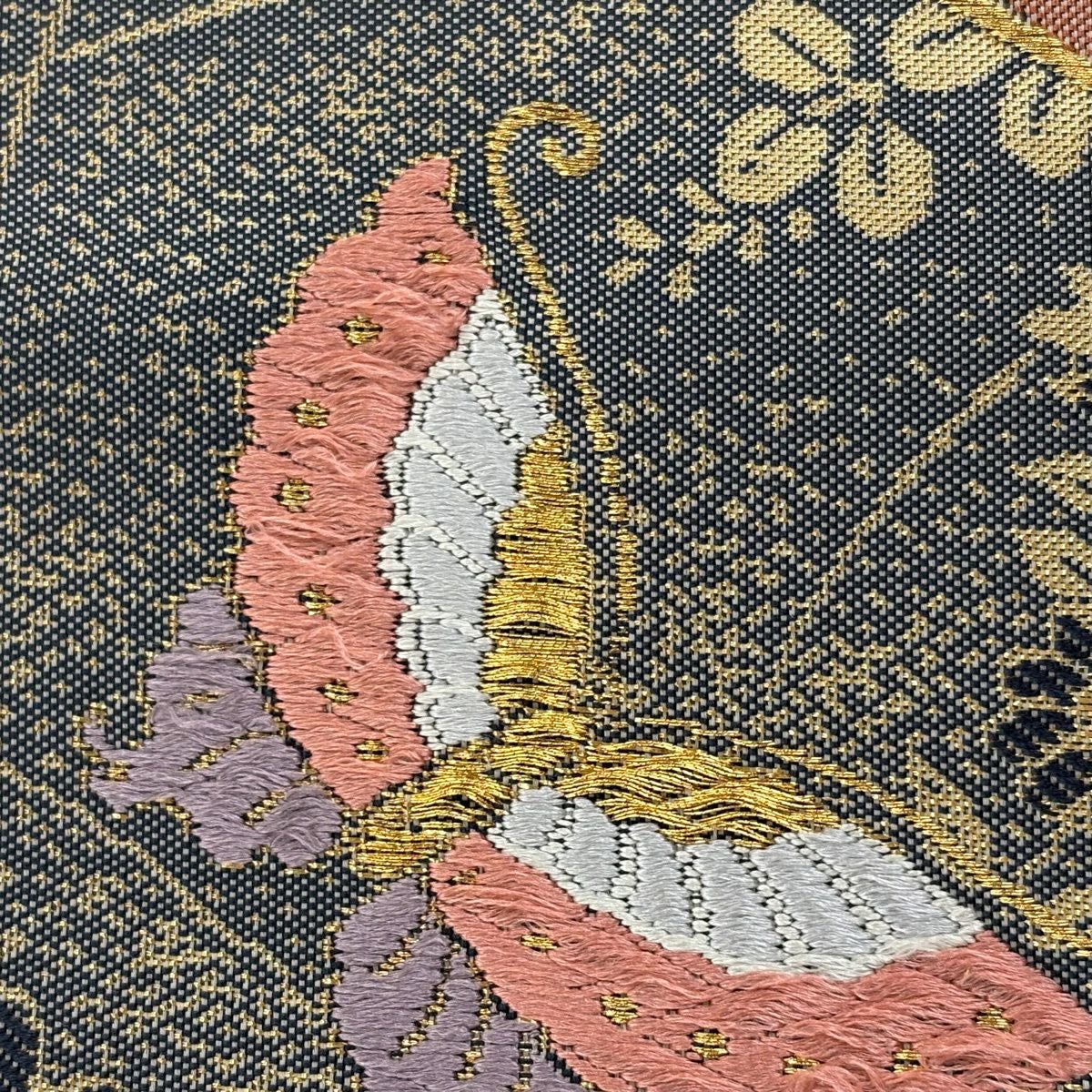 【美品】 袋帯 秀品 草花 流水 金糸 切嵌 金色 お太鼓柄 正絹