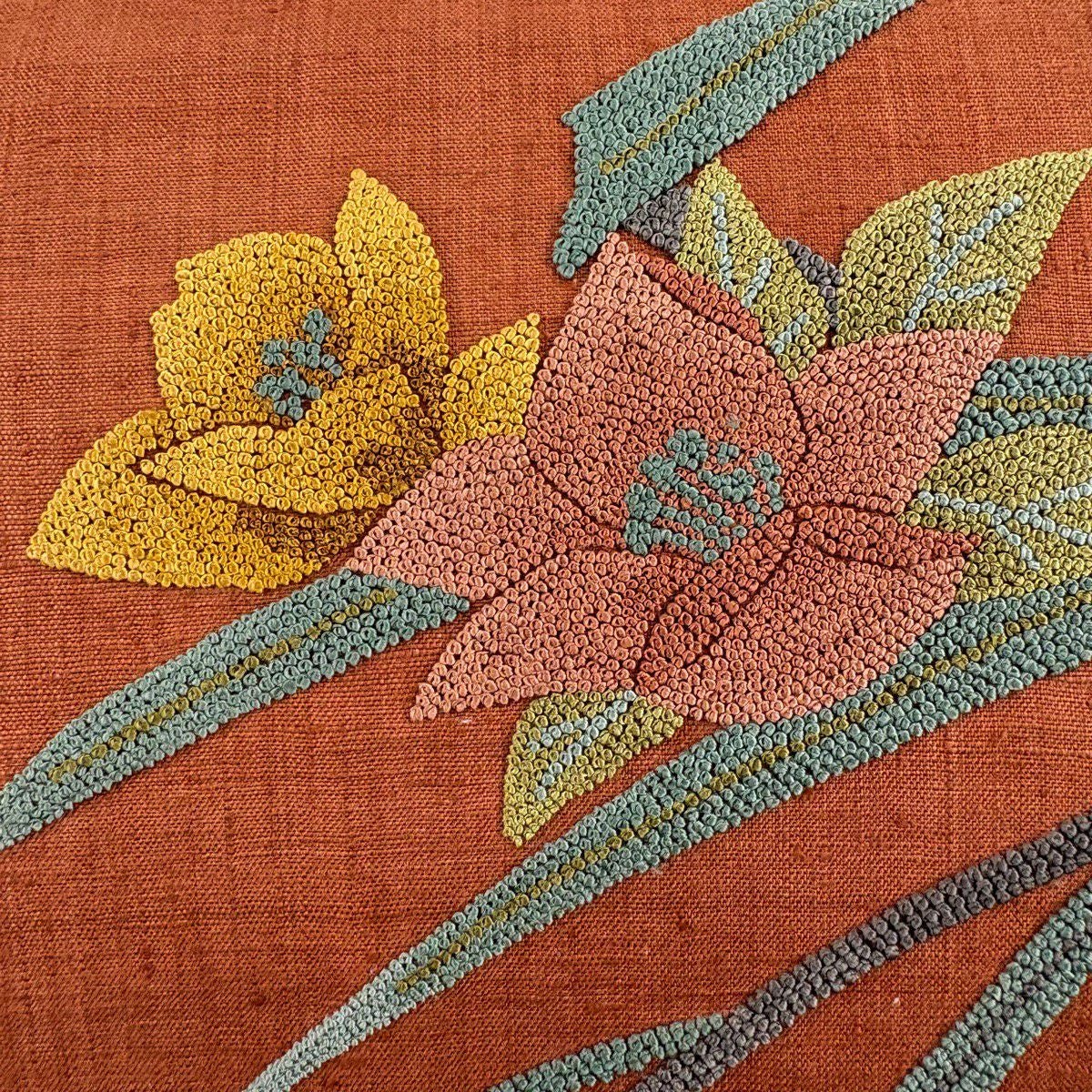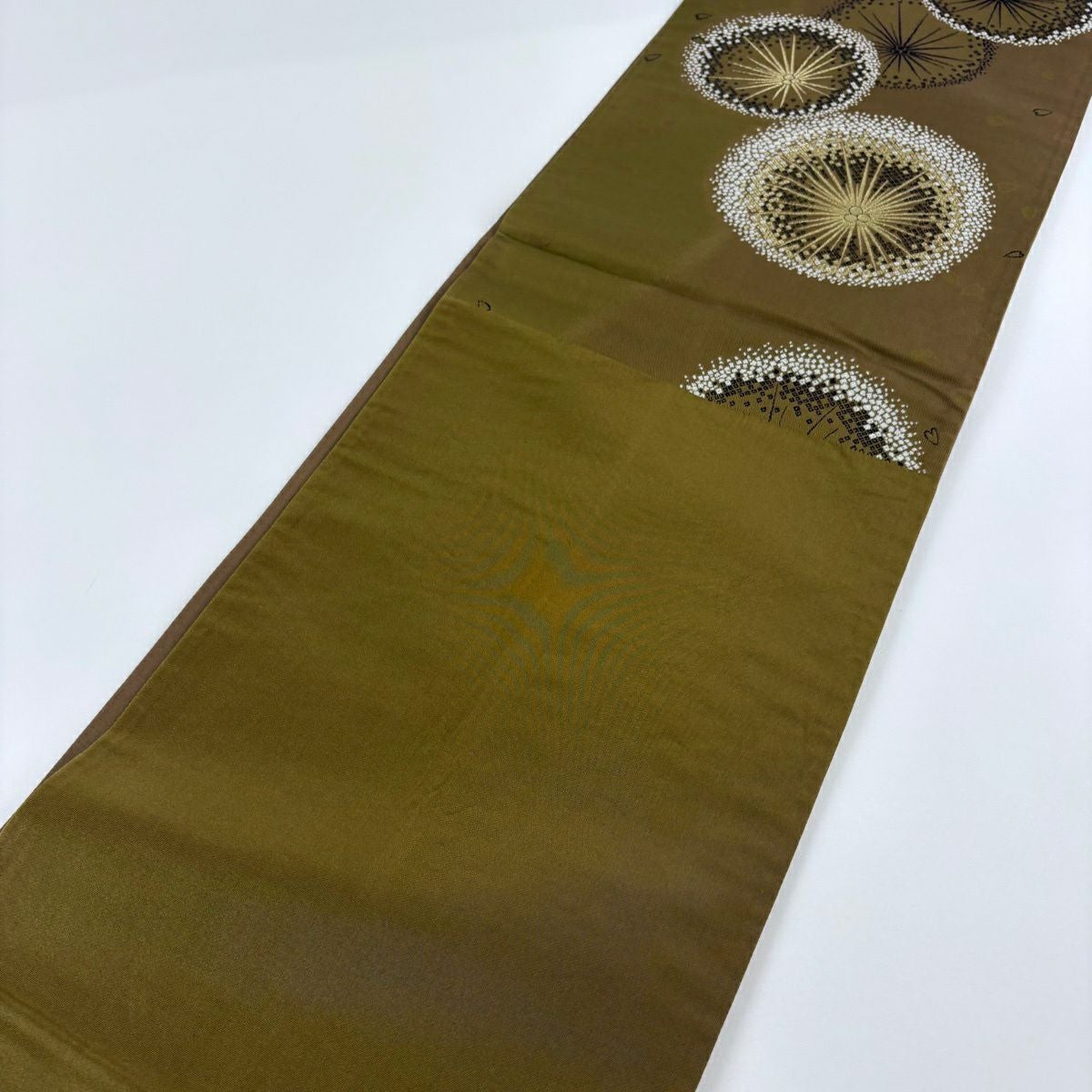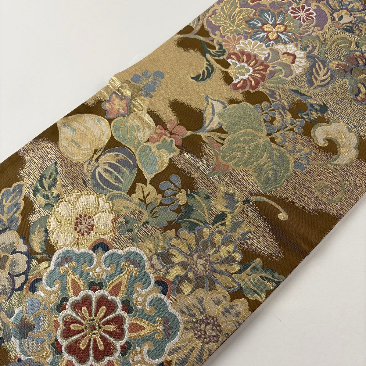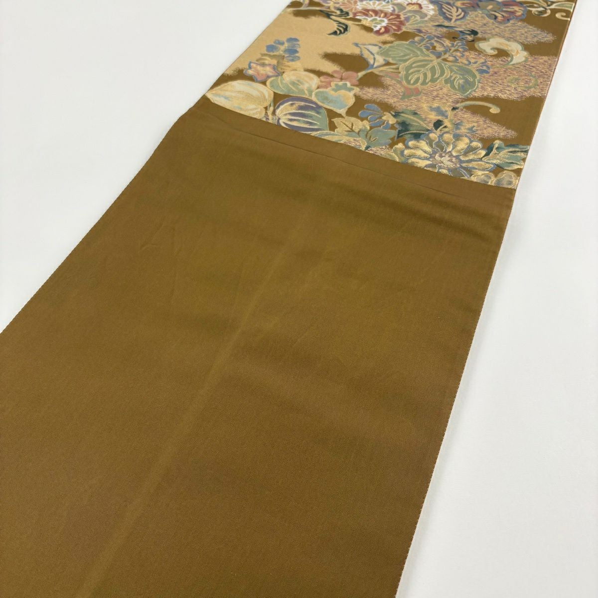袋帯 秀品 辻が花柄 草花 金銀糸 箔 山吹茶色 お太鼓柄 正絹