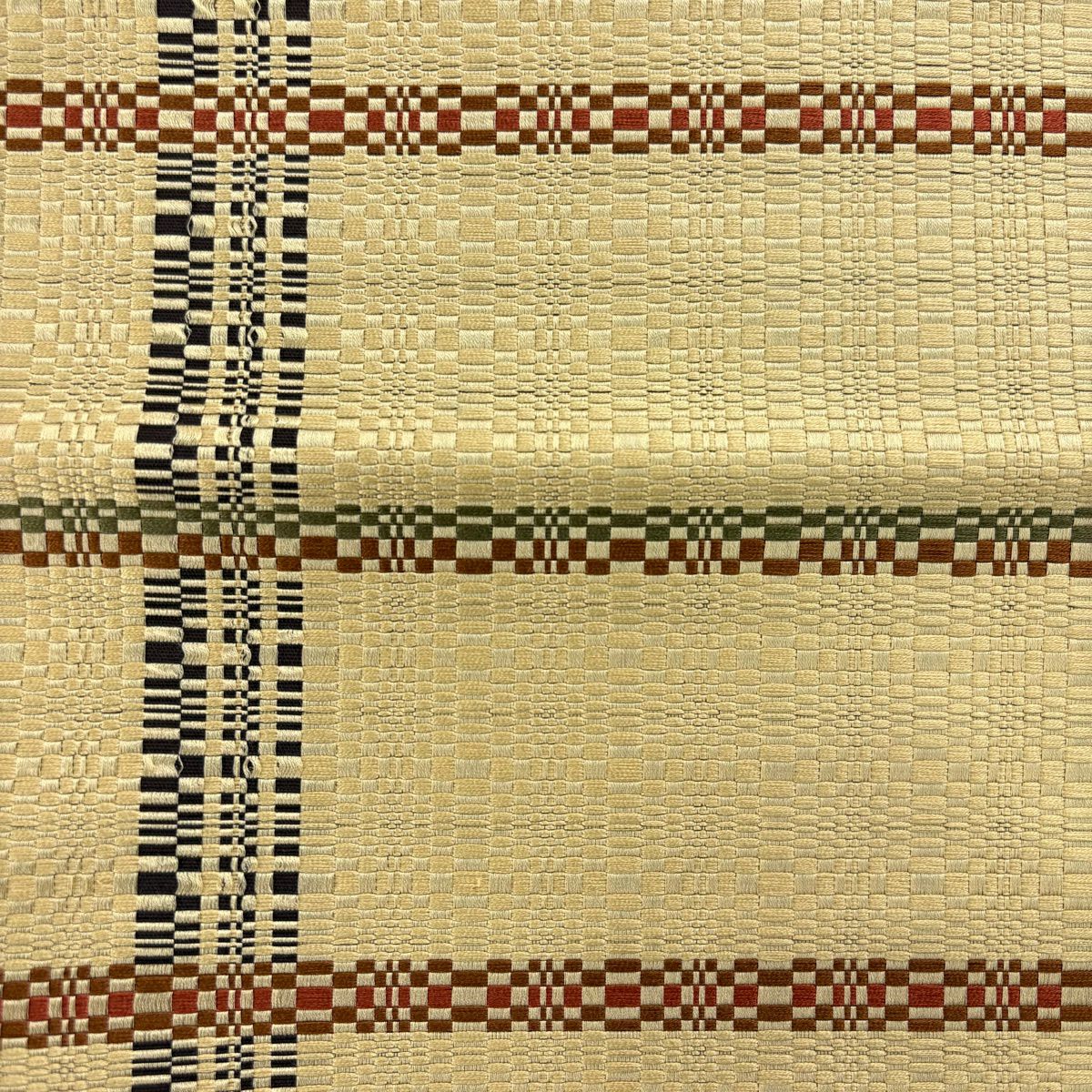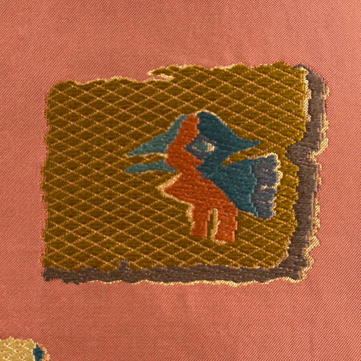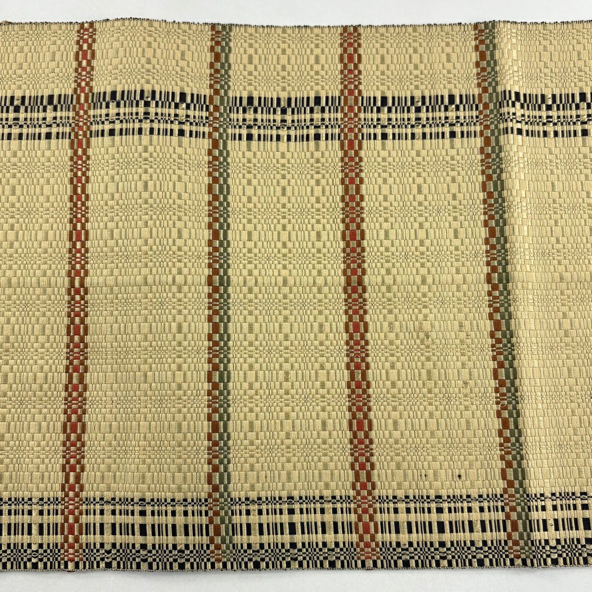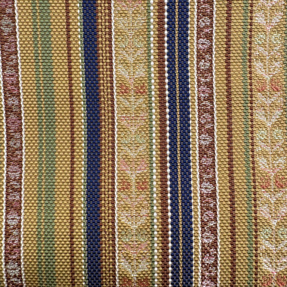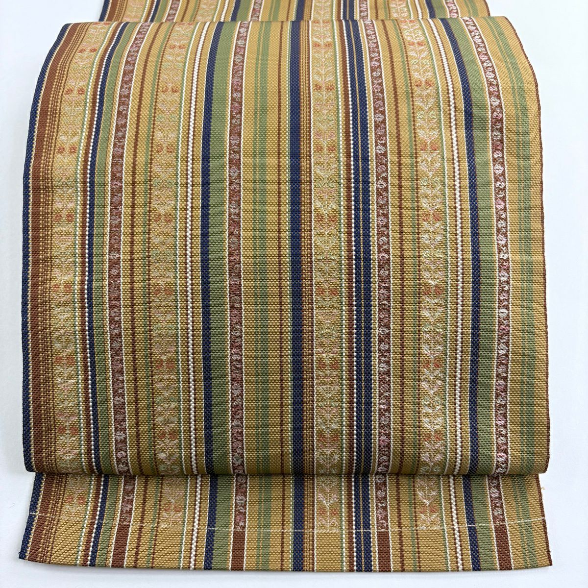 袋帯 秀品 夏帯 幾何学模様 縞 金銀糸 黄土色 お太鼓柄 正絹
