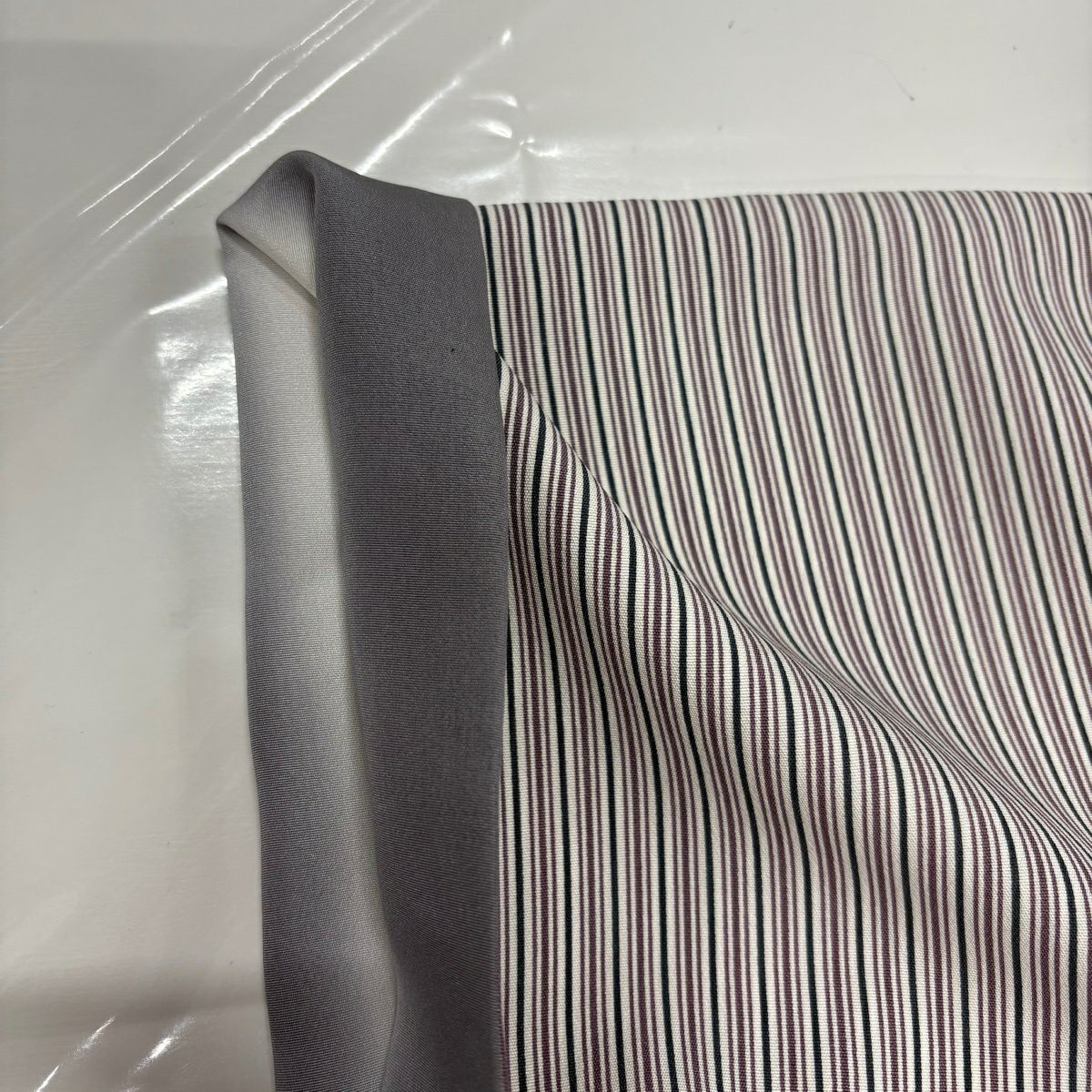 【美品】名古屋帯 秀品 松葉仕立て 八寸名古屋帯 よろけ縞 灰白 正絹