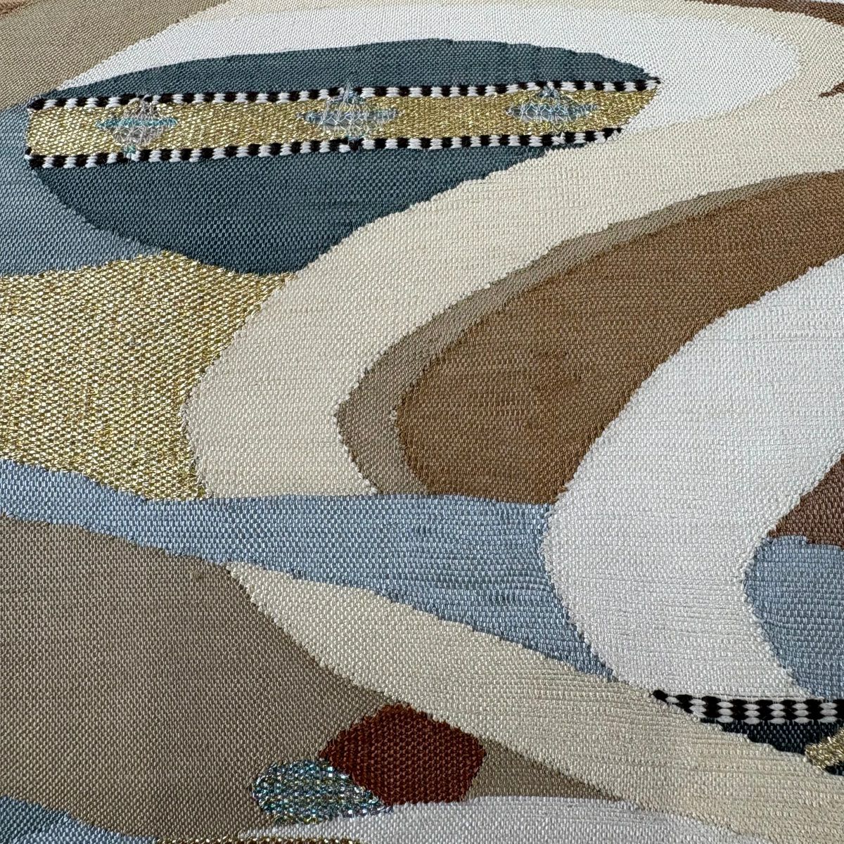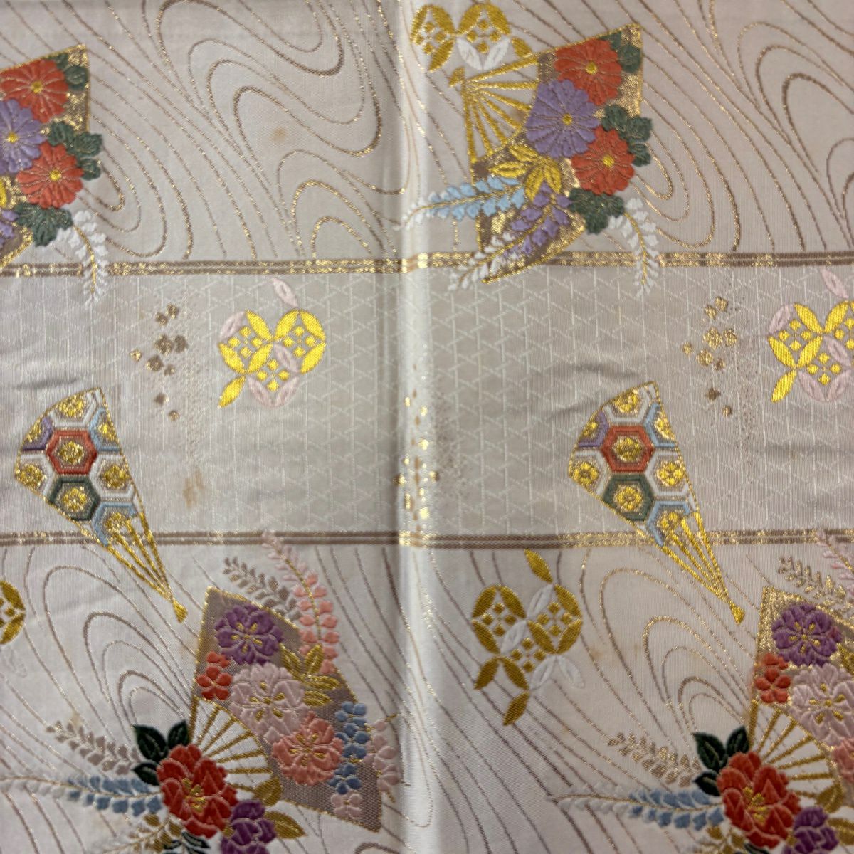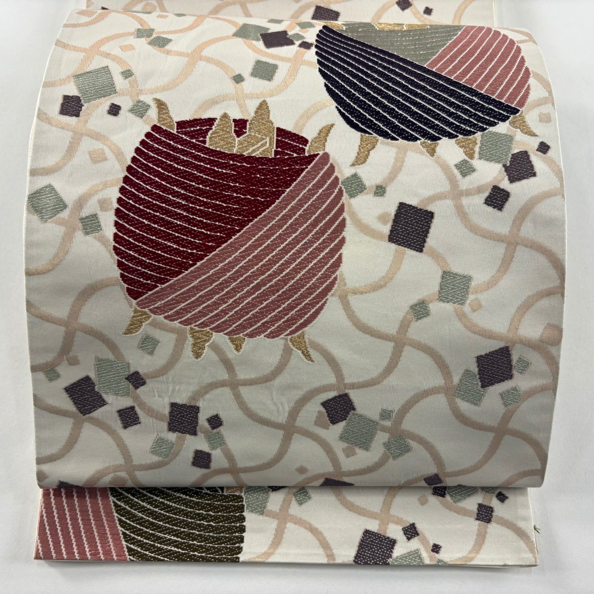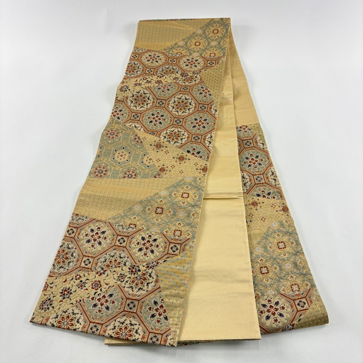 【美品】 袋帯 秀品 幾何学模様 金糸 ベージュ 全通 正絹