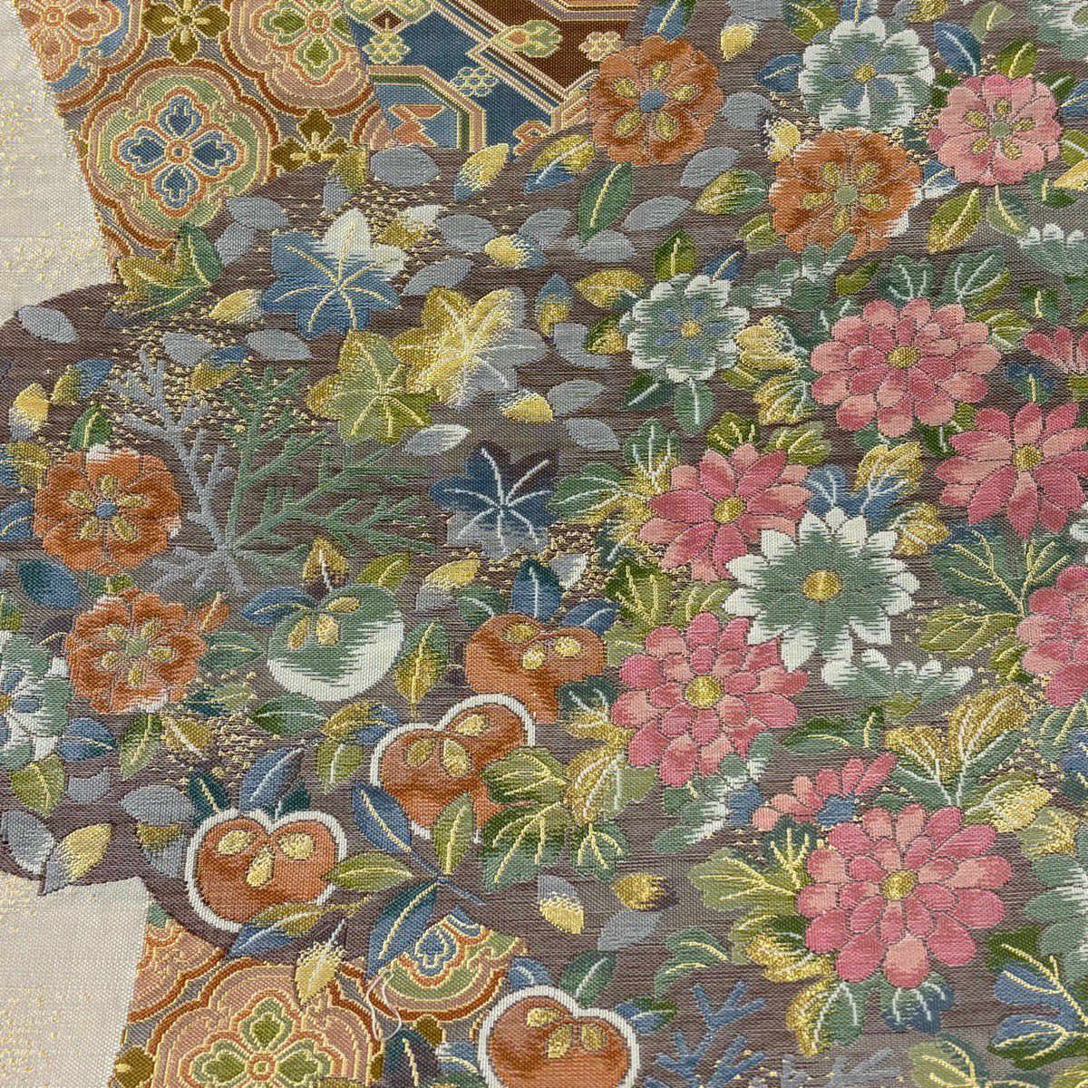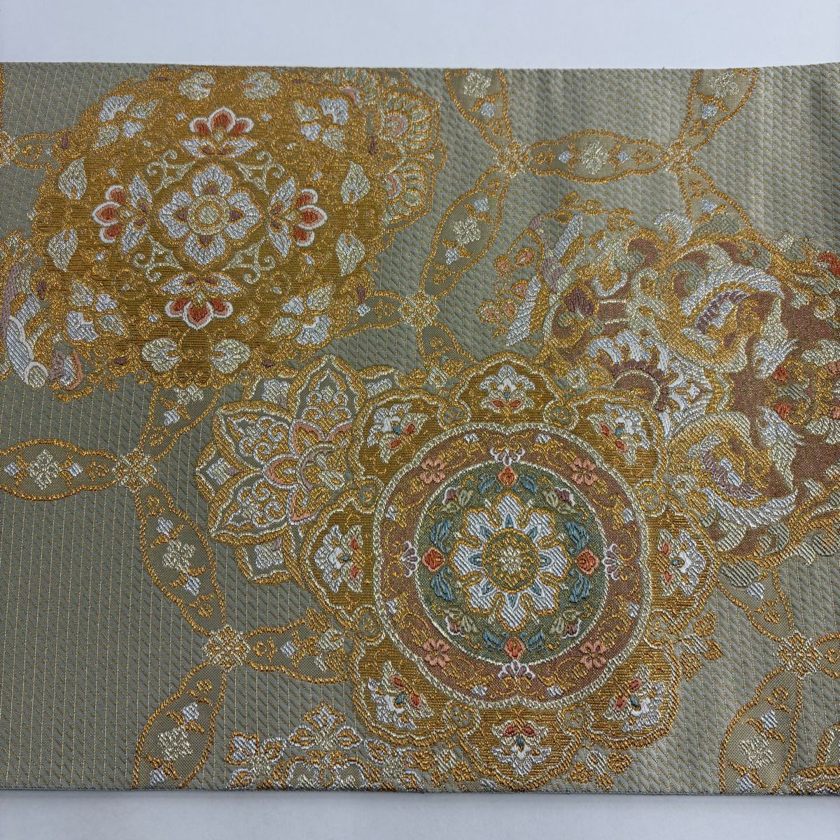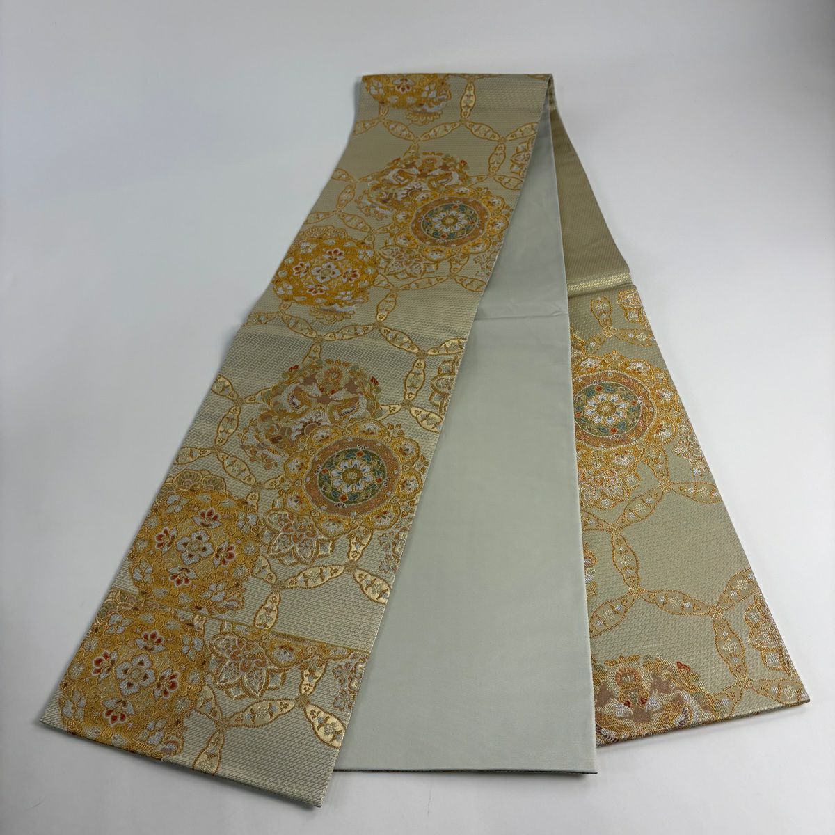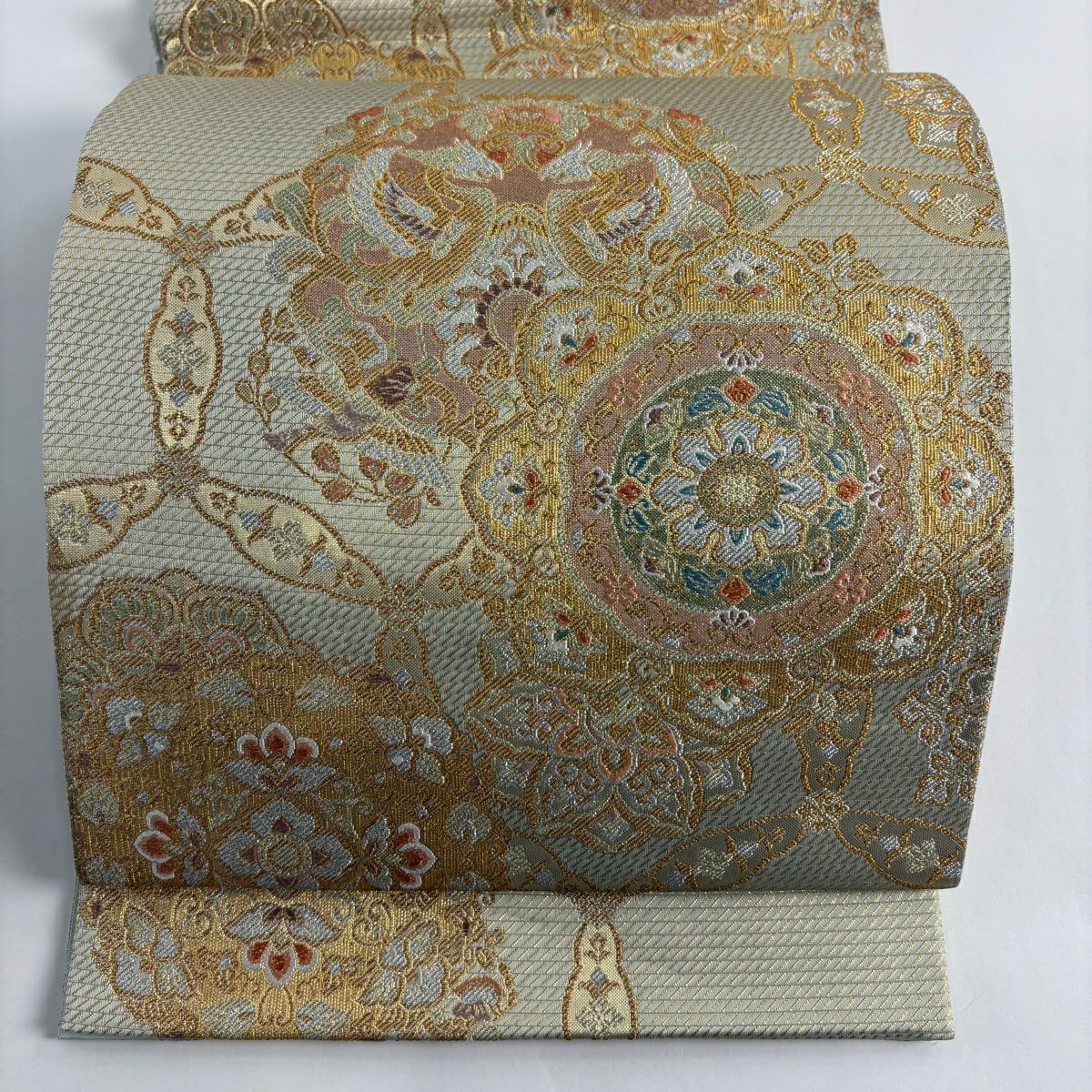 【美品】 袋帯 秀品 華文 花鳥 宮廷煌彩唐織 灰色 六通 正絹