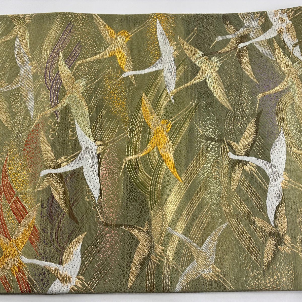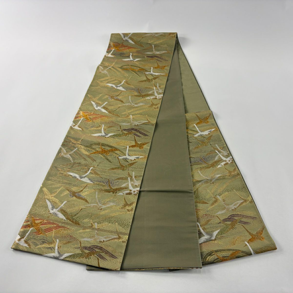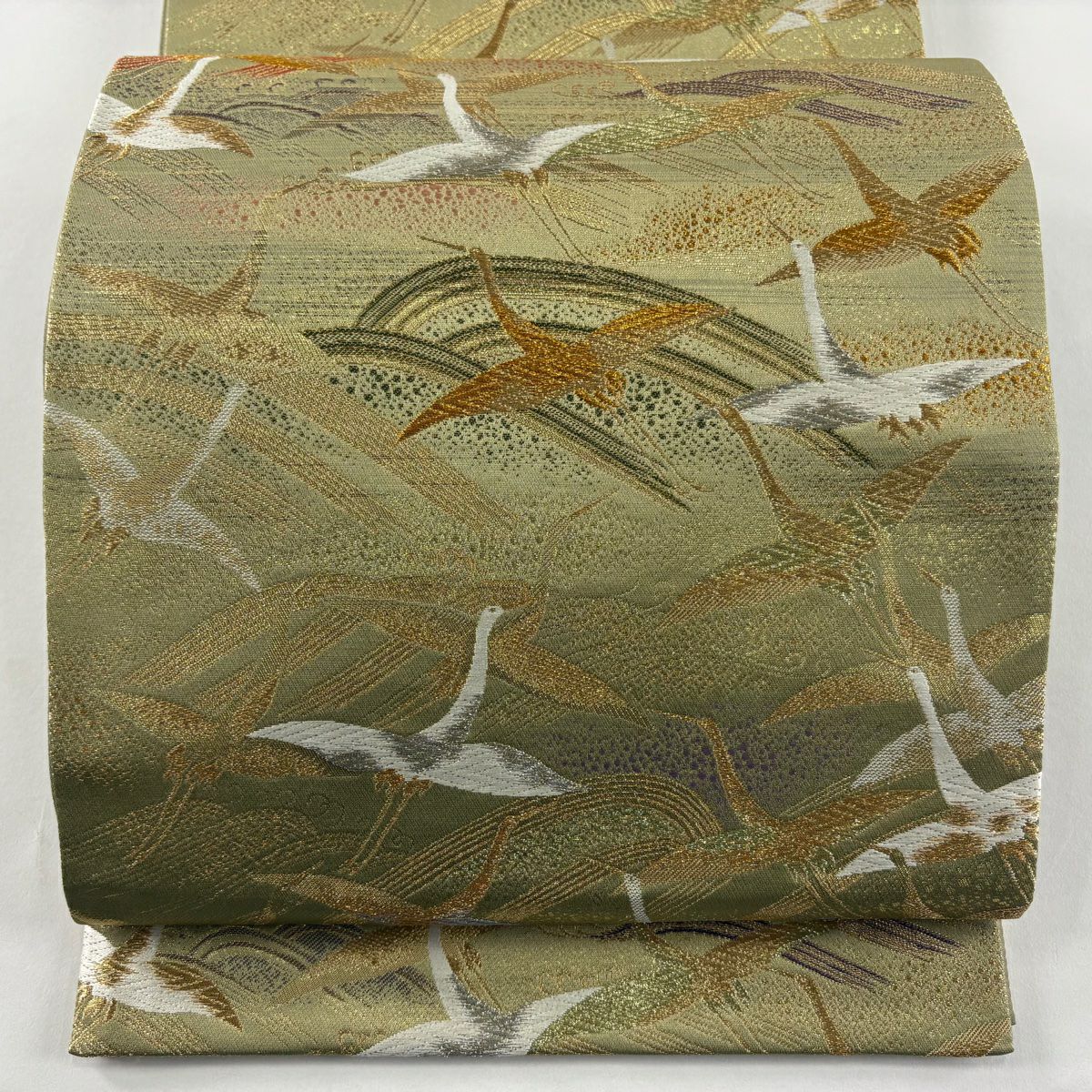 【美品】 袋帯 秀品 舞鶴波涛文 金銀糸 箔 抹茶色 六通 正絹