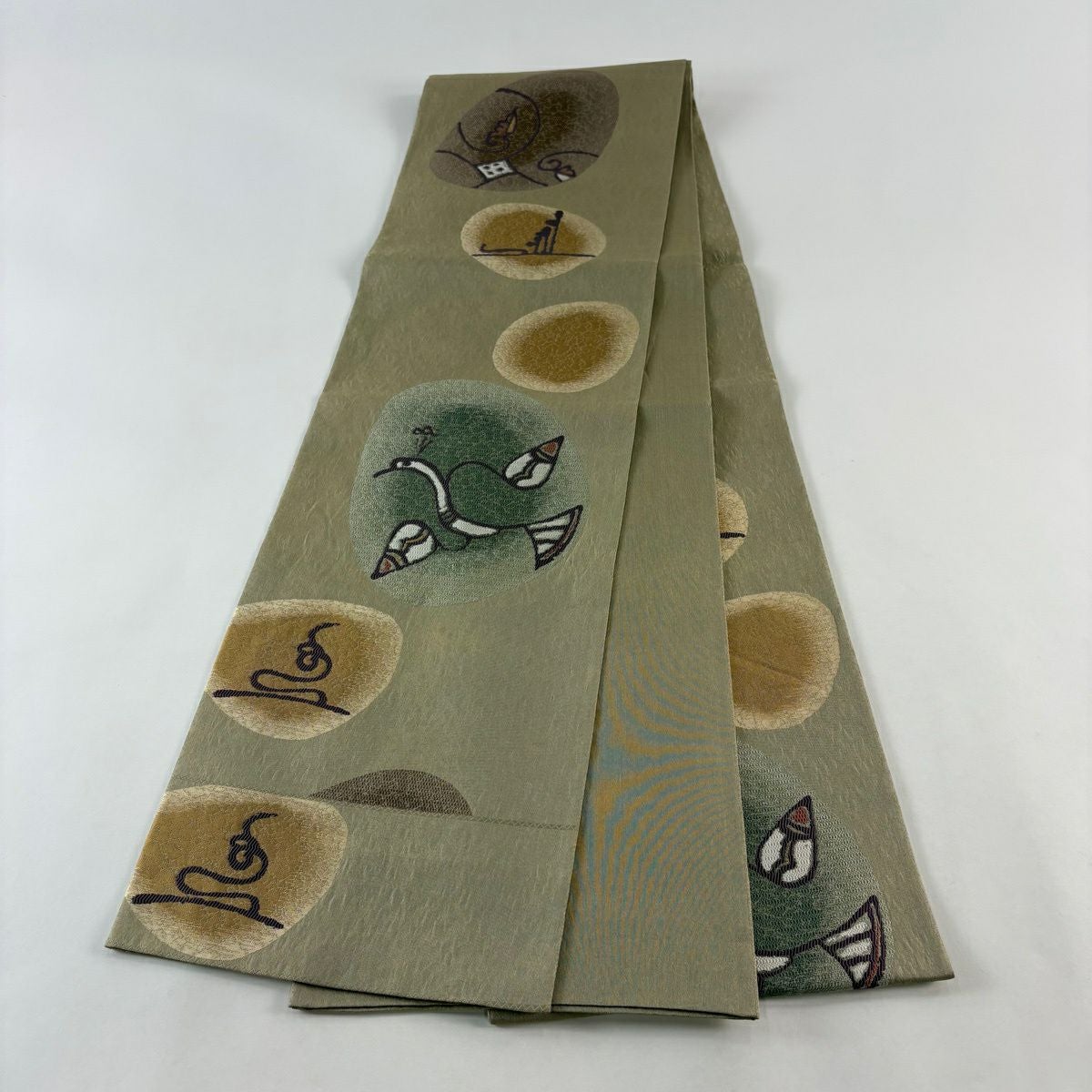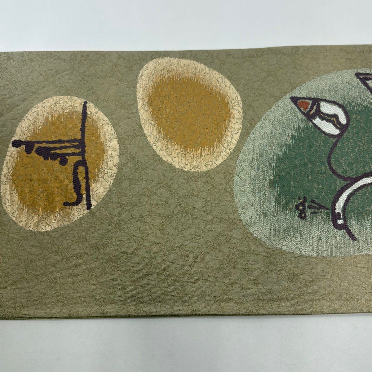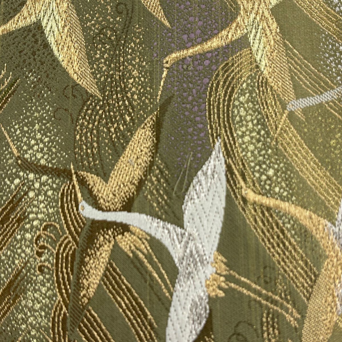 【美品】 袋帯 秀品 舞鶴波涛文 金銀糸 箔 抹茶色 六通 正絹