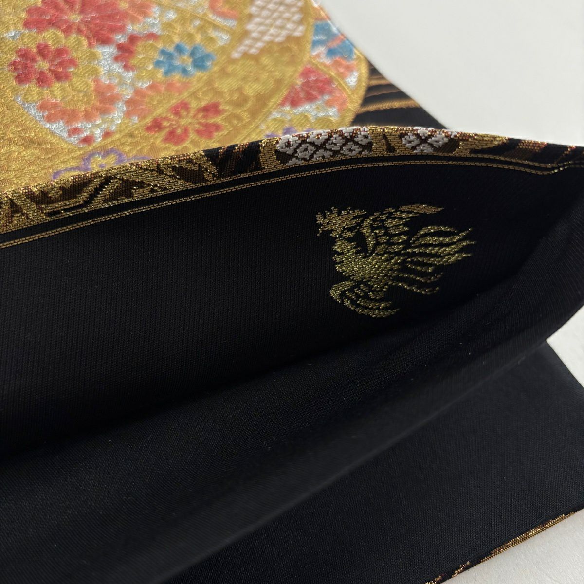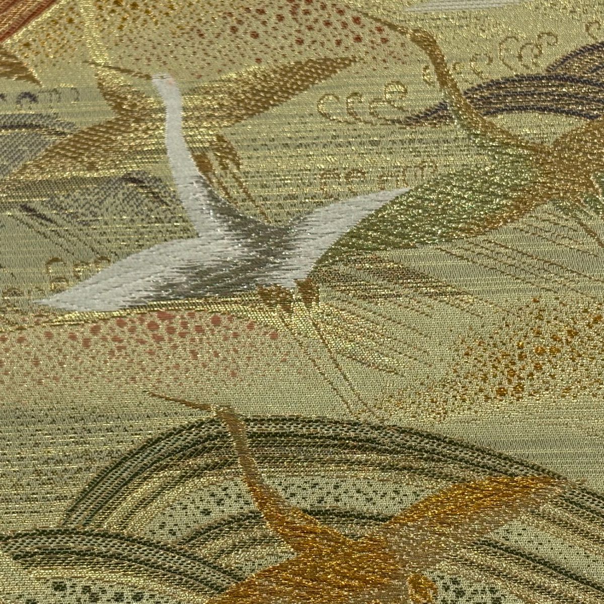 【美品】 袋帯 秀品 華文 向かい鳥 金銀糸 箔 金色 六通 正絹