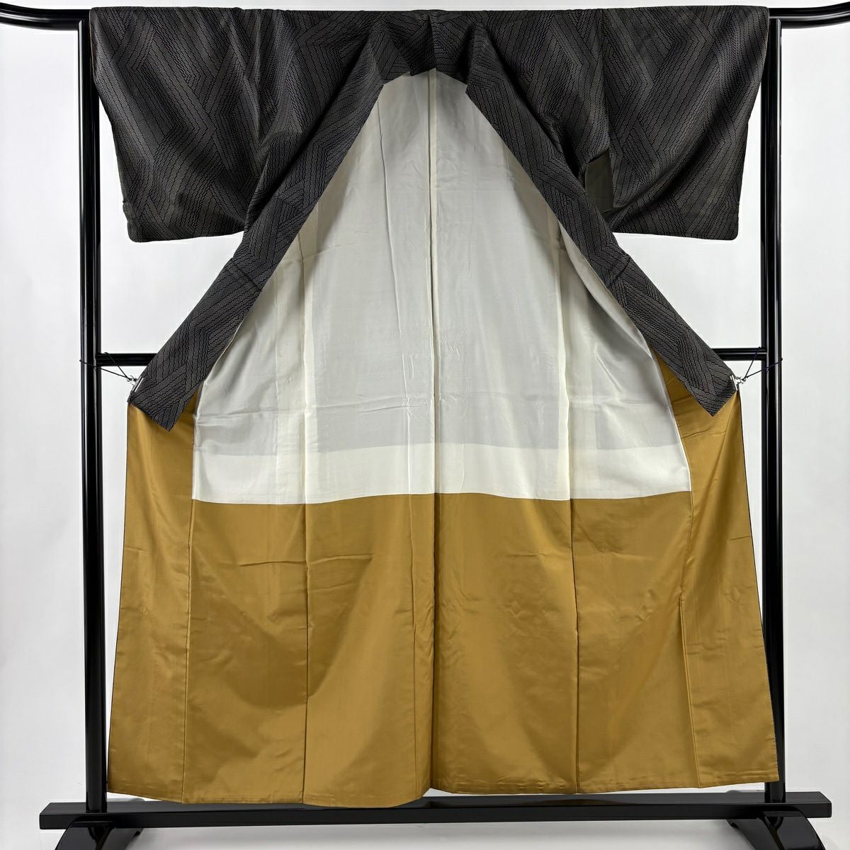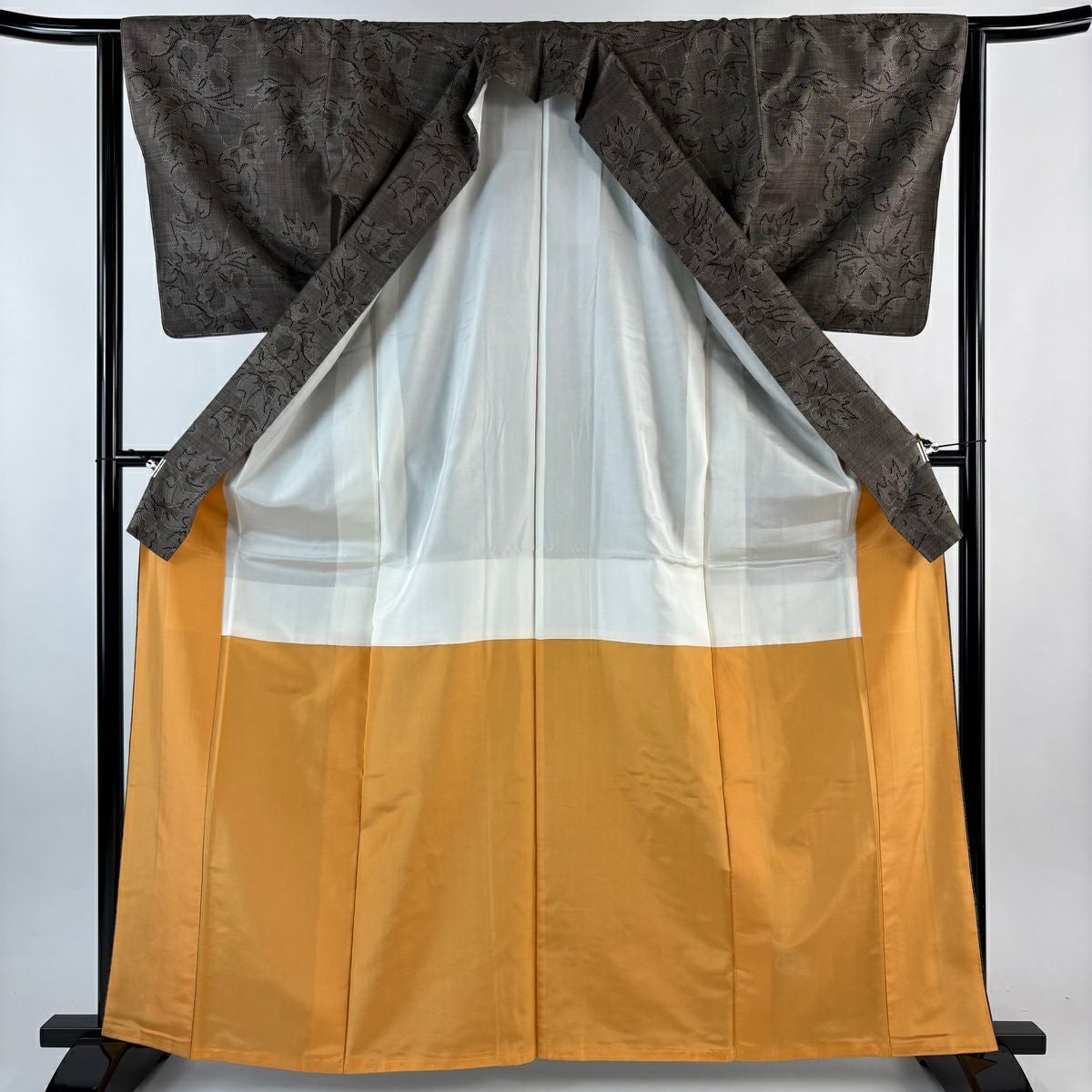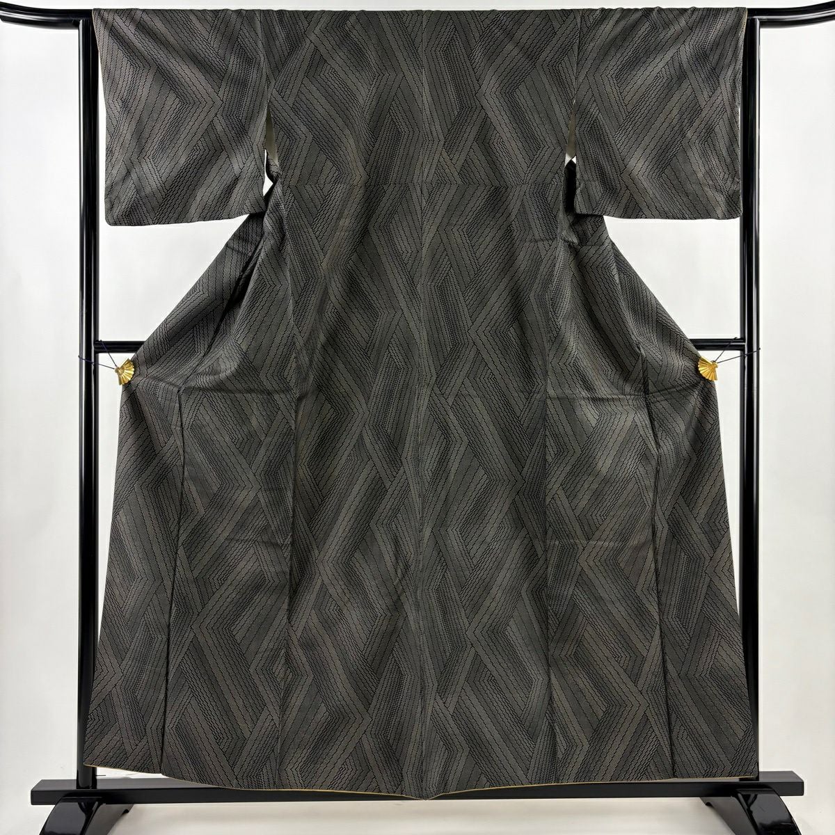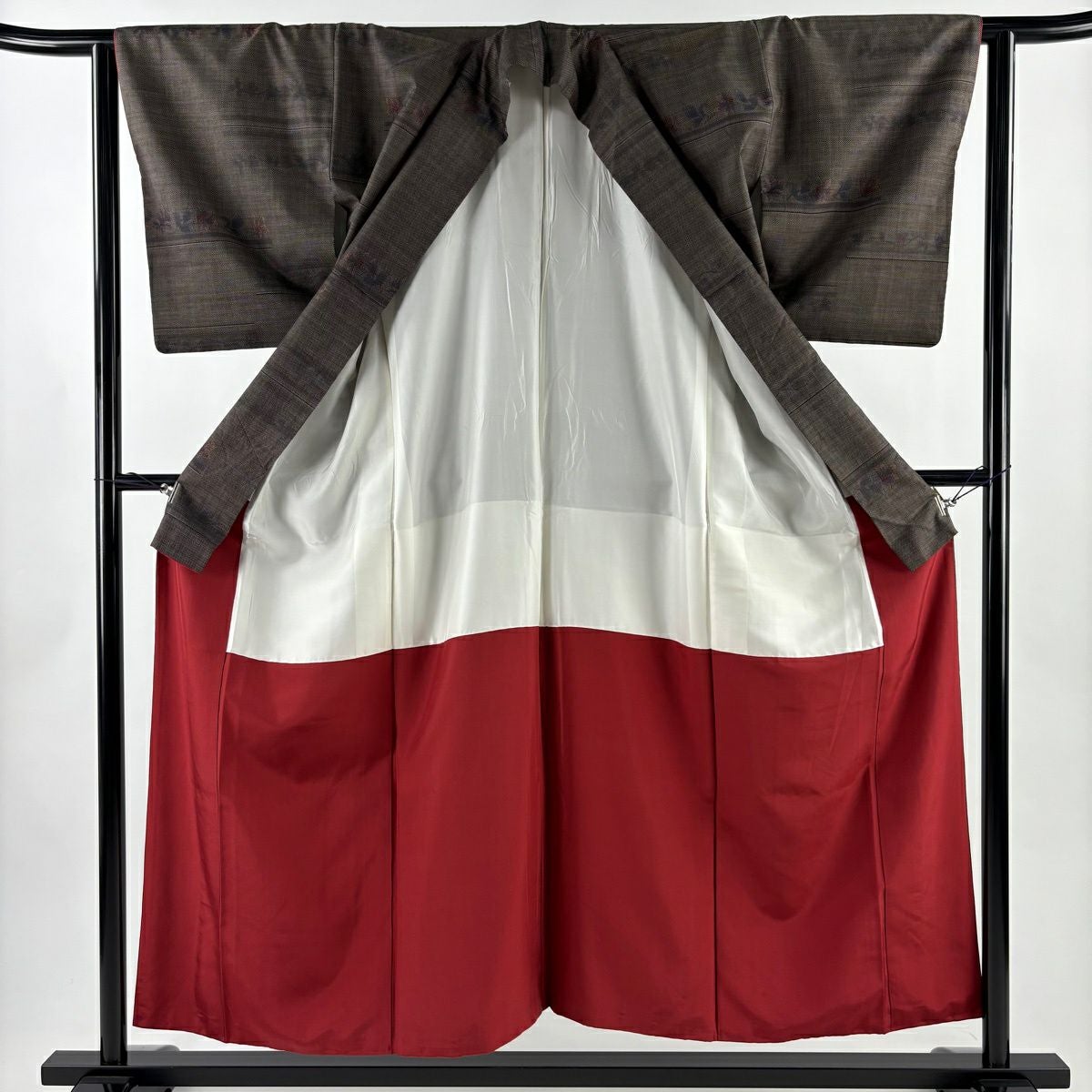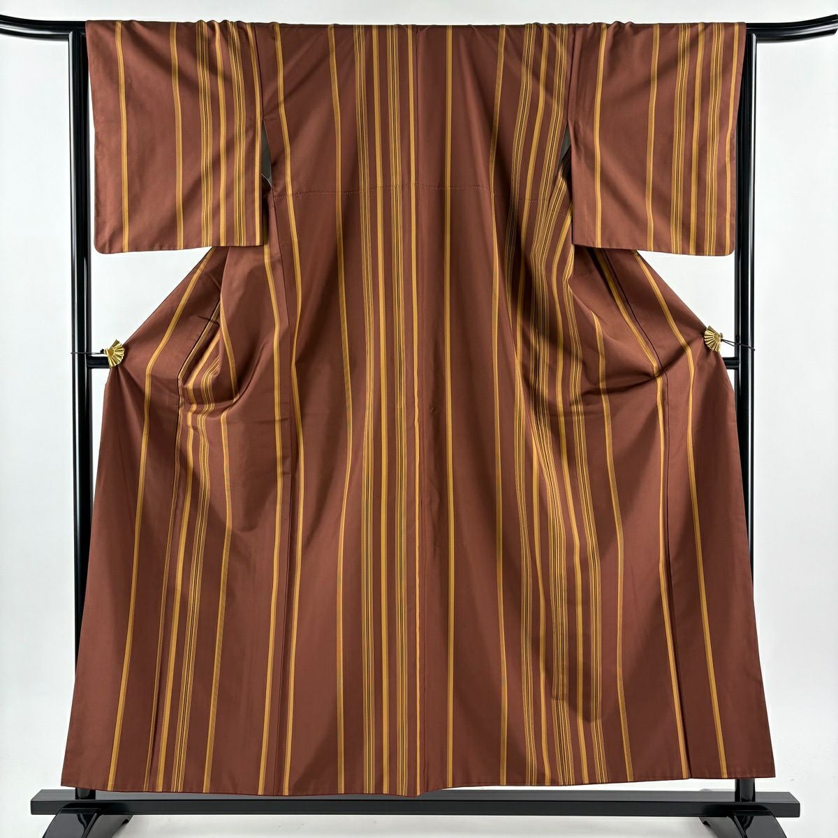 紬 身丈159cm 裄丈62.5cm S 袷 縞 茶色 正絹 秀品