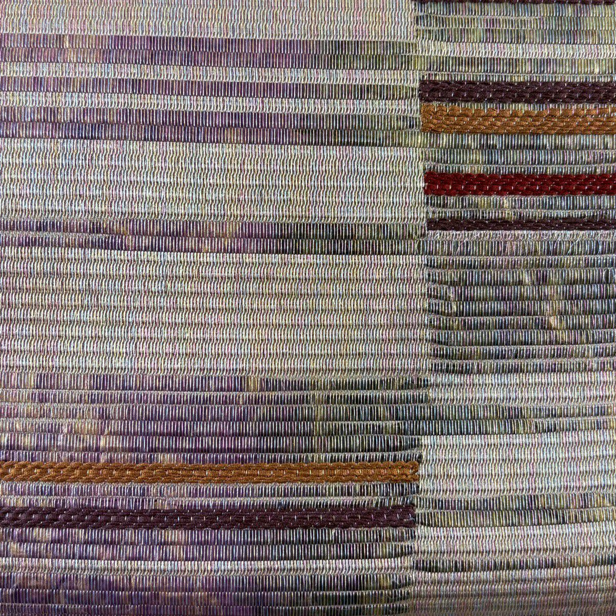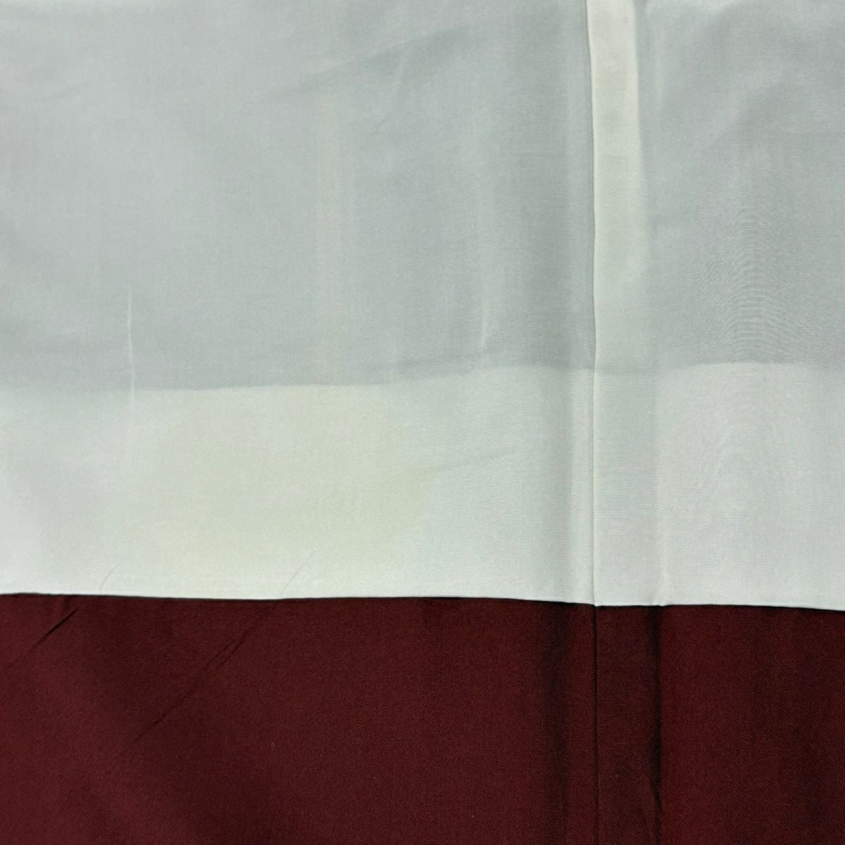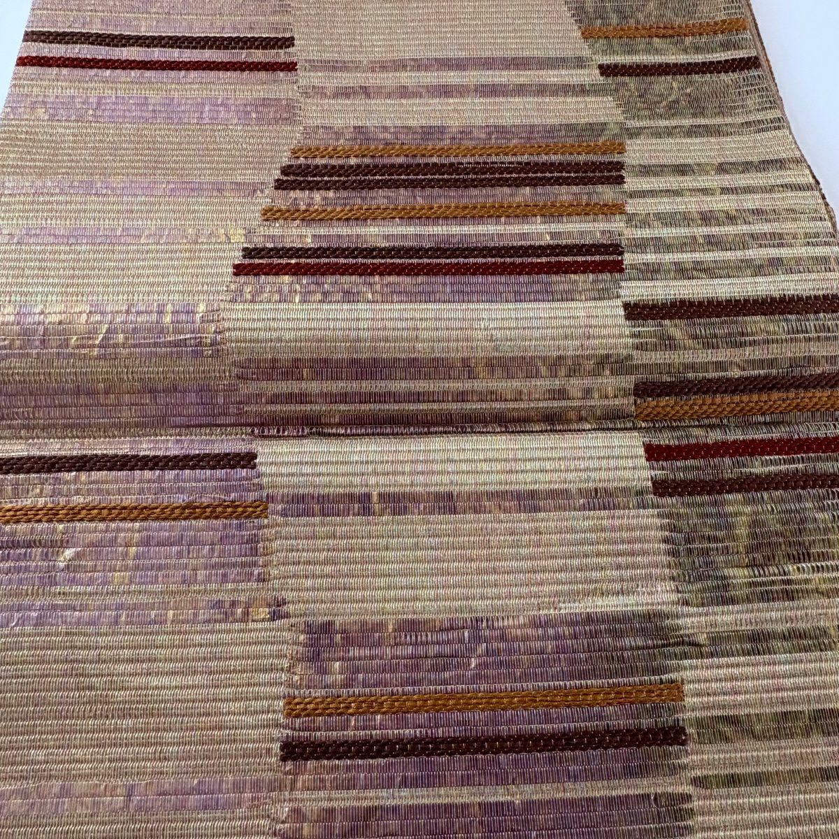 【美品】 袋帯 秀品 よろけ縞 幾何学 銀糸 小豆色 六通 正絹