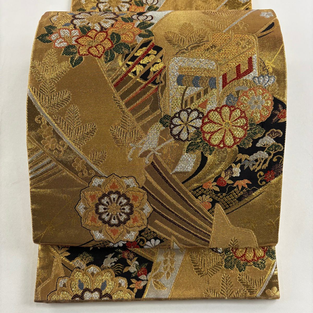 【在庫一掃】 袋帯 秀品 破れ色紙 金糸 箔 金色 お太鼓柄 正絹