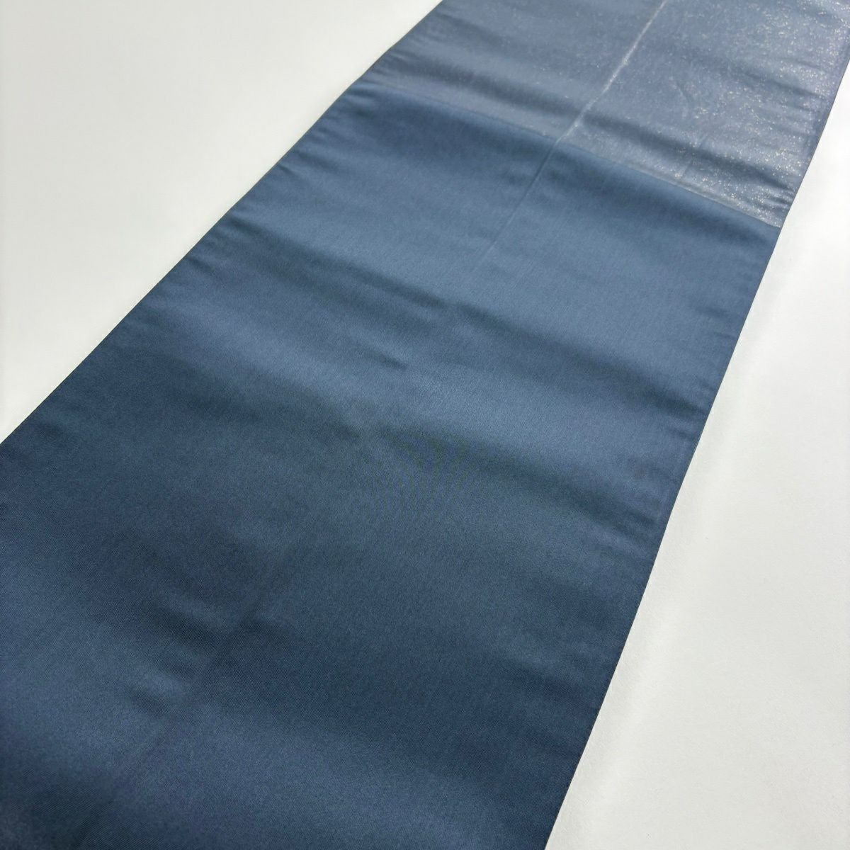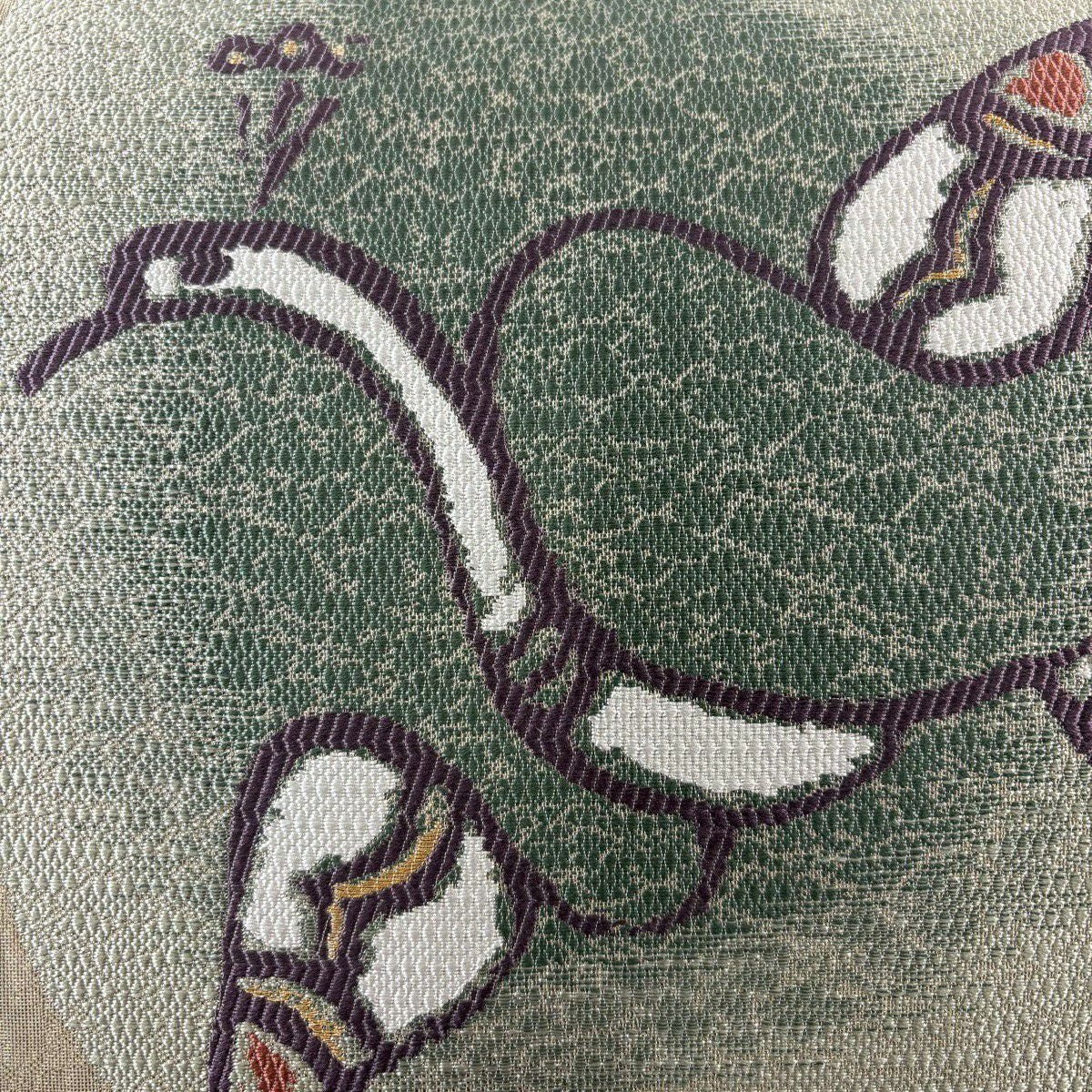 【在庫一掃】 名古屋帯 秀品 紬地 生り物 霞 刺繍 灰緑 正絹