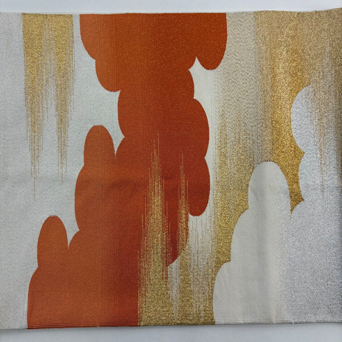 【美品】 袋帯 秀品 落款あり 霞 金通し 灰茶 お太鼓柄 正絹