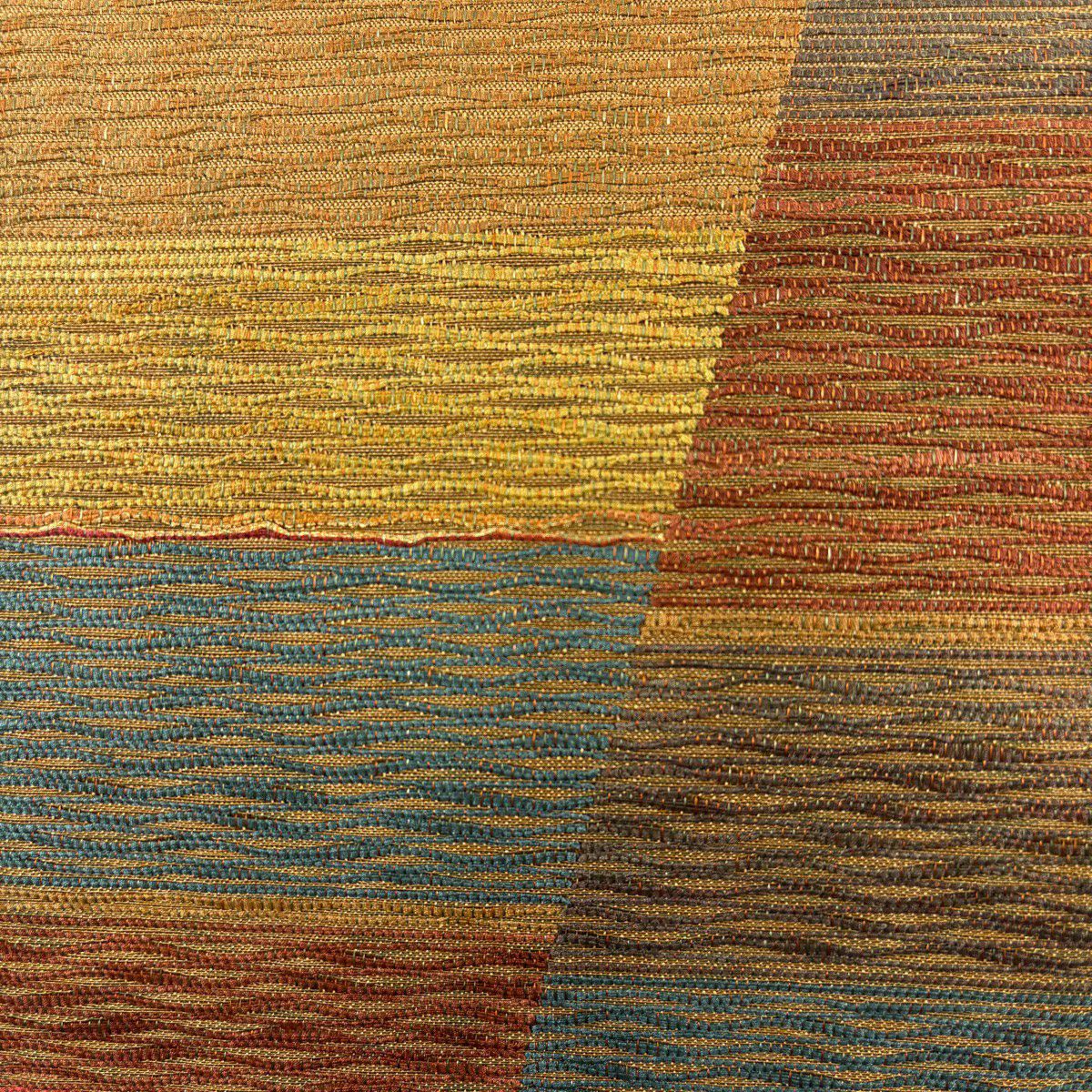 【在庫一掃】 名古屋帯 秀品 市松 波 金糸 綴れ 黄土色 正絹