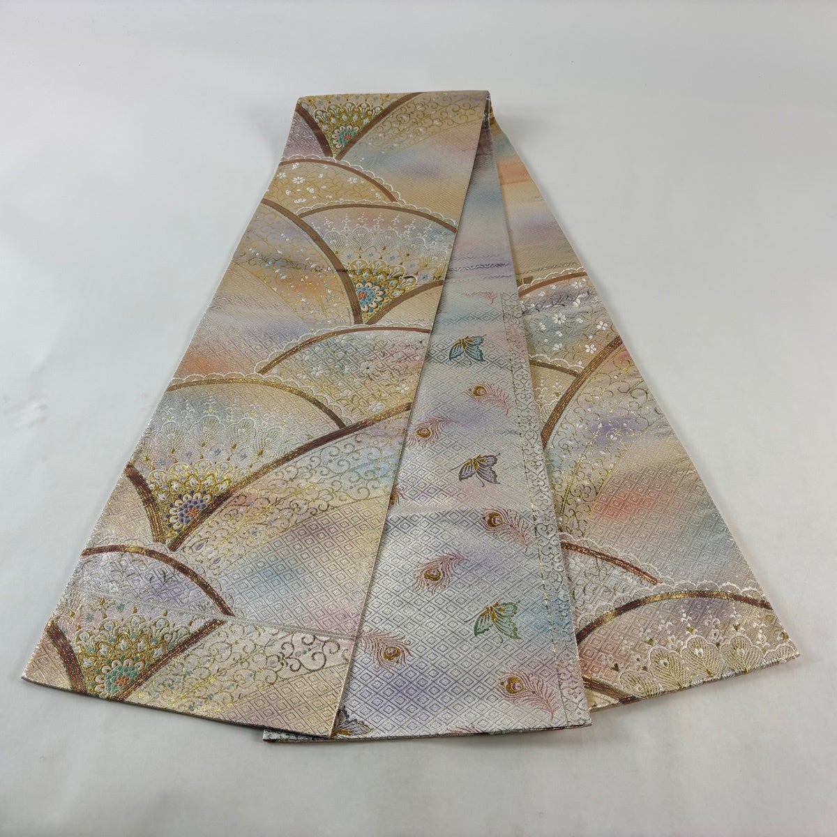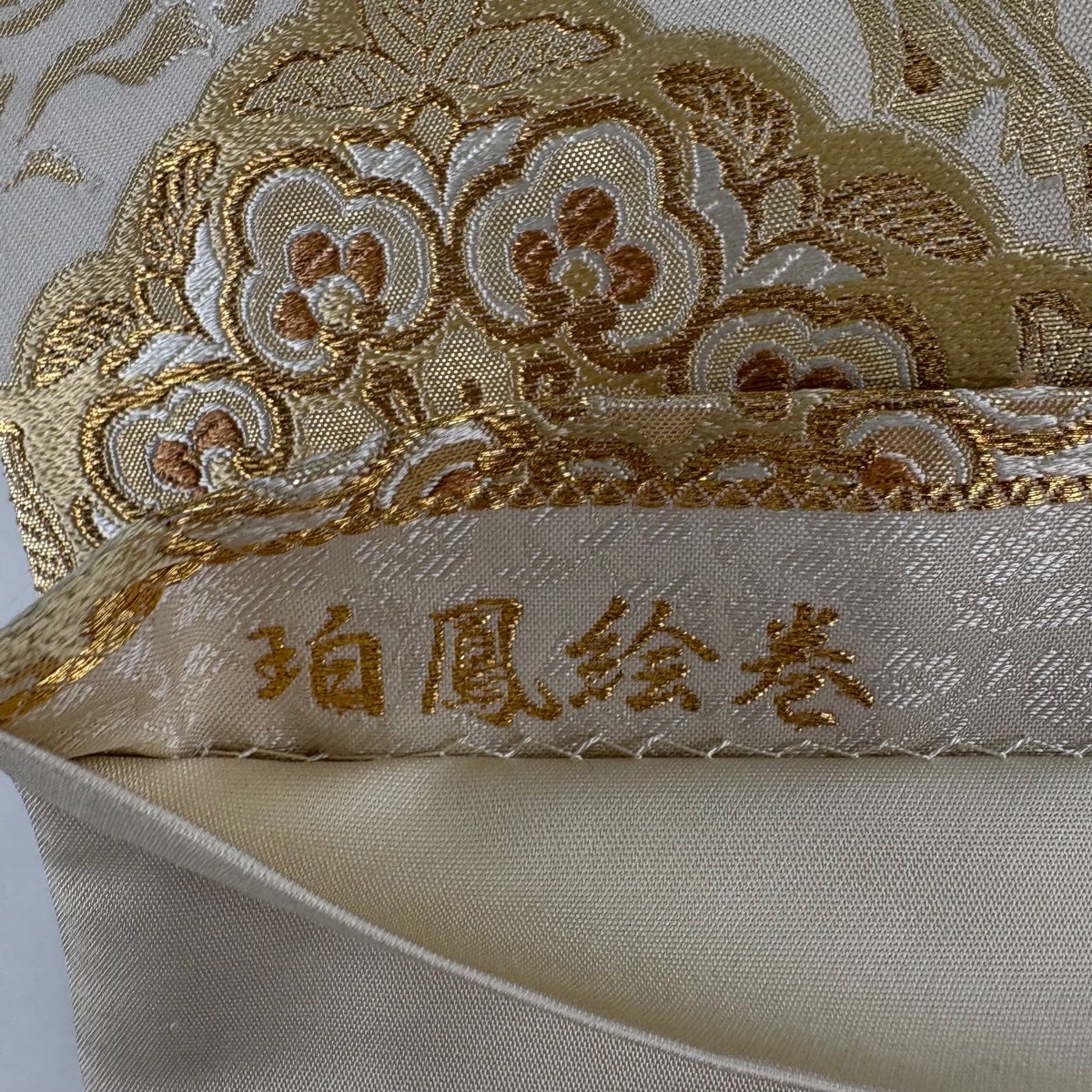 【美品】 袋帯 秀品 珀鳳絵巻 金糸 箔 ベージュ 六通 正絹