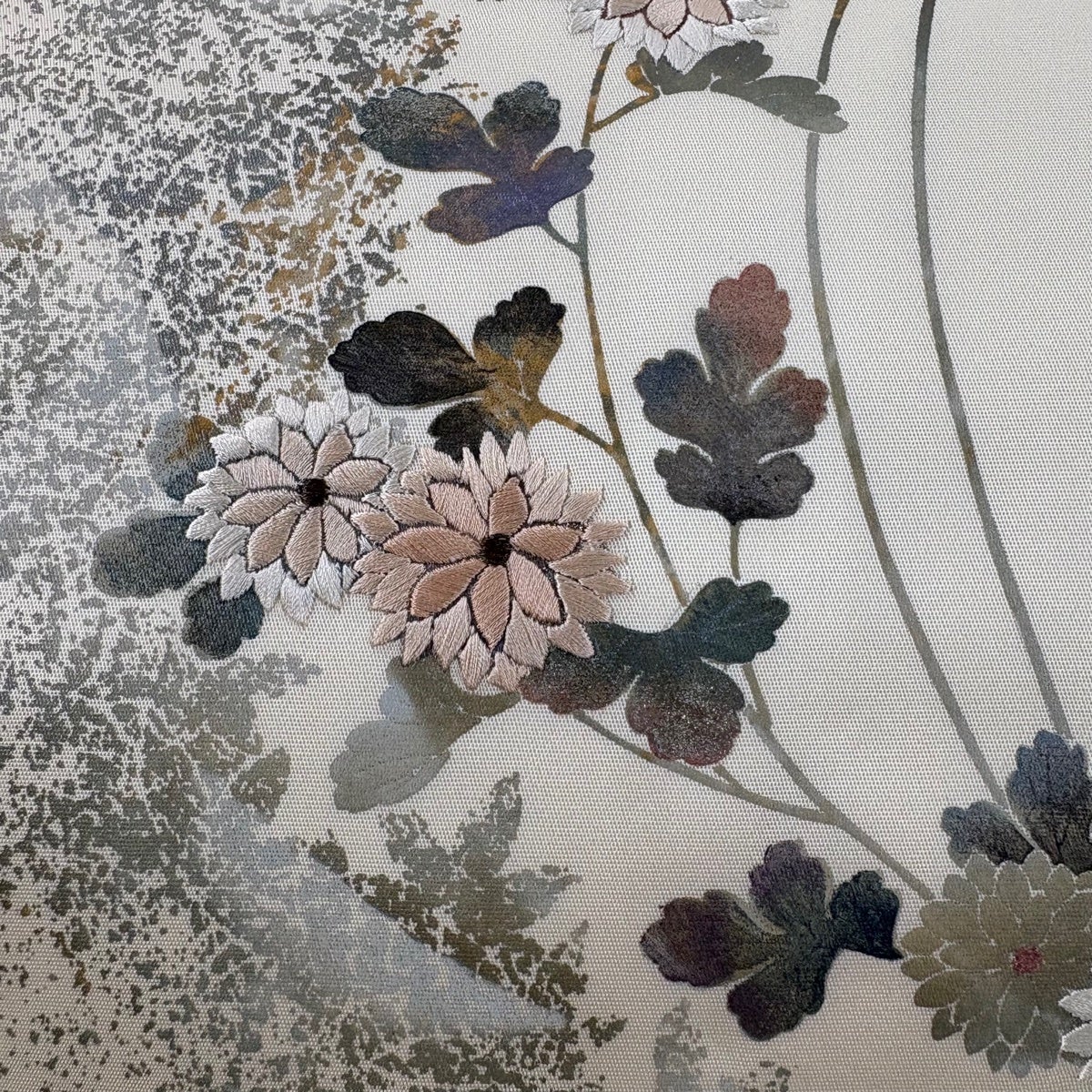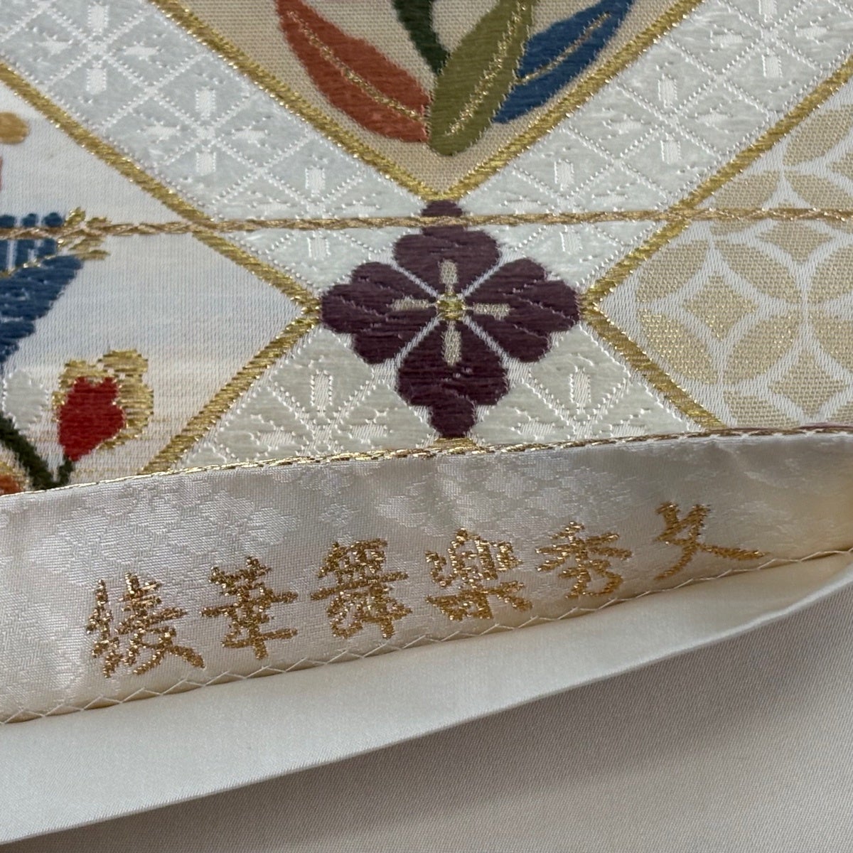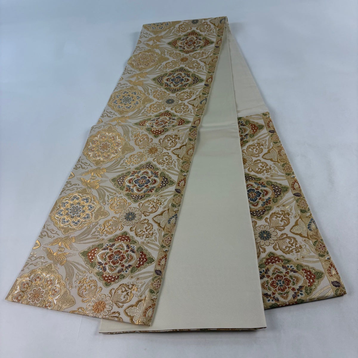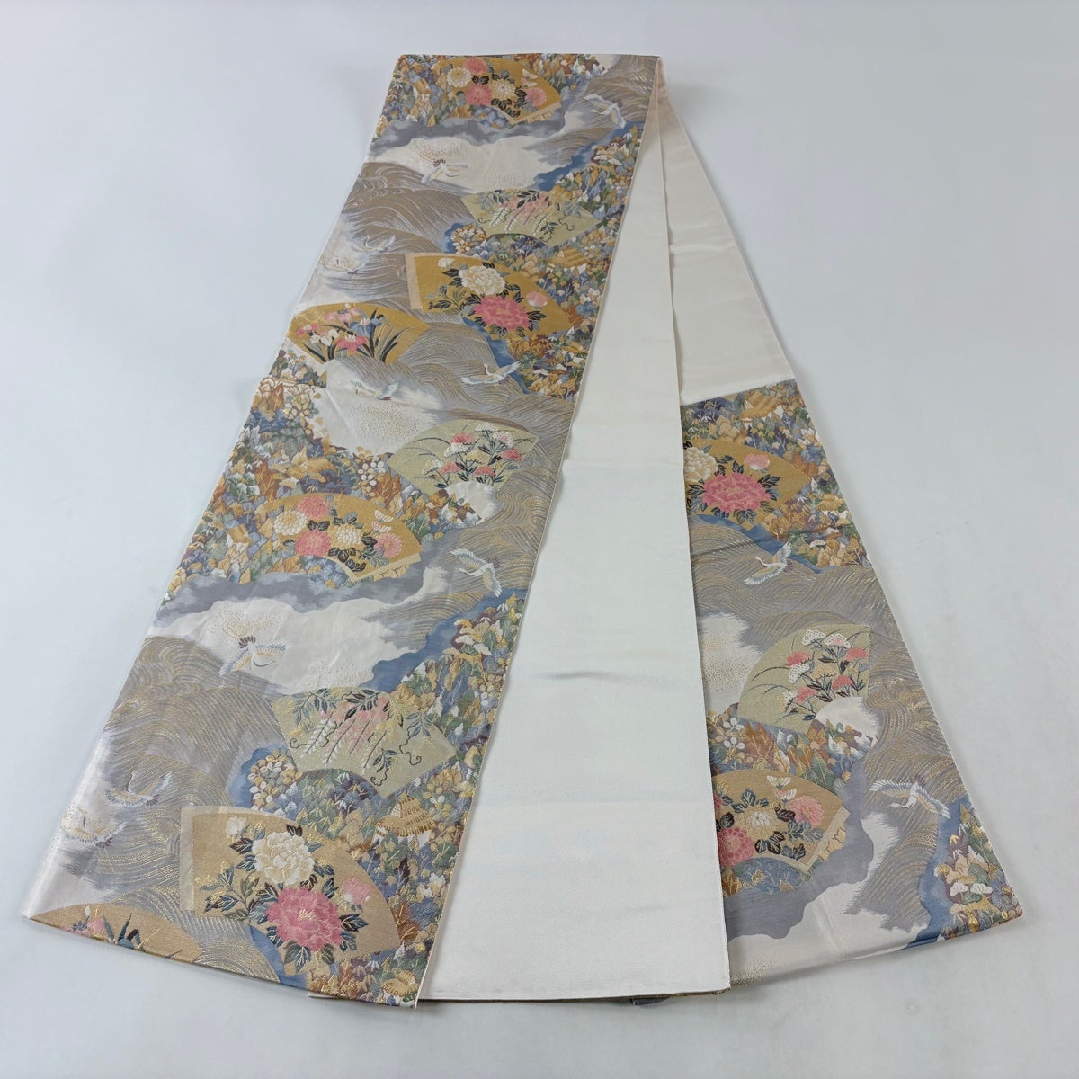 【美品】 袋帯 秀品 菊 立涌 金銀糸 刺繍 クリーム 六通 正絹
