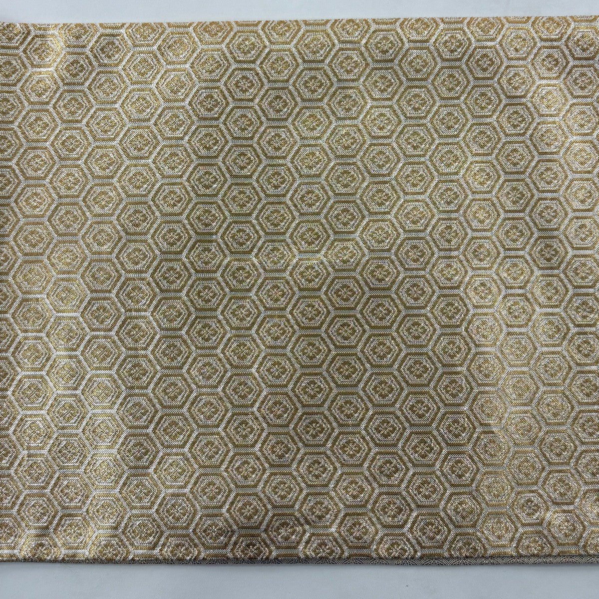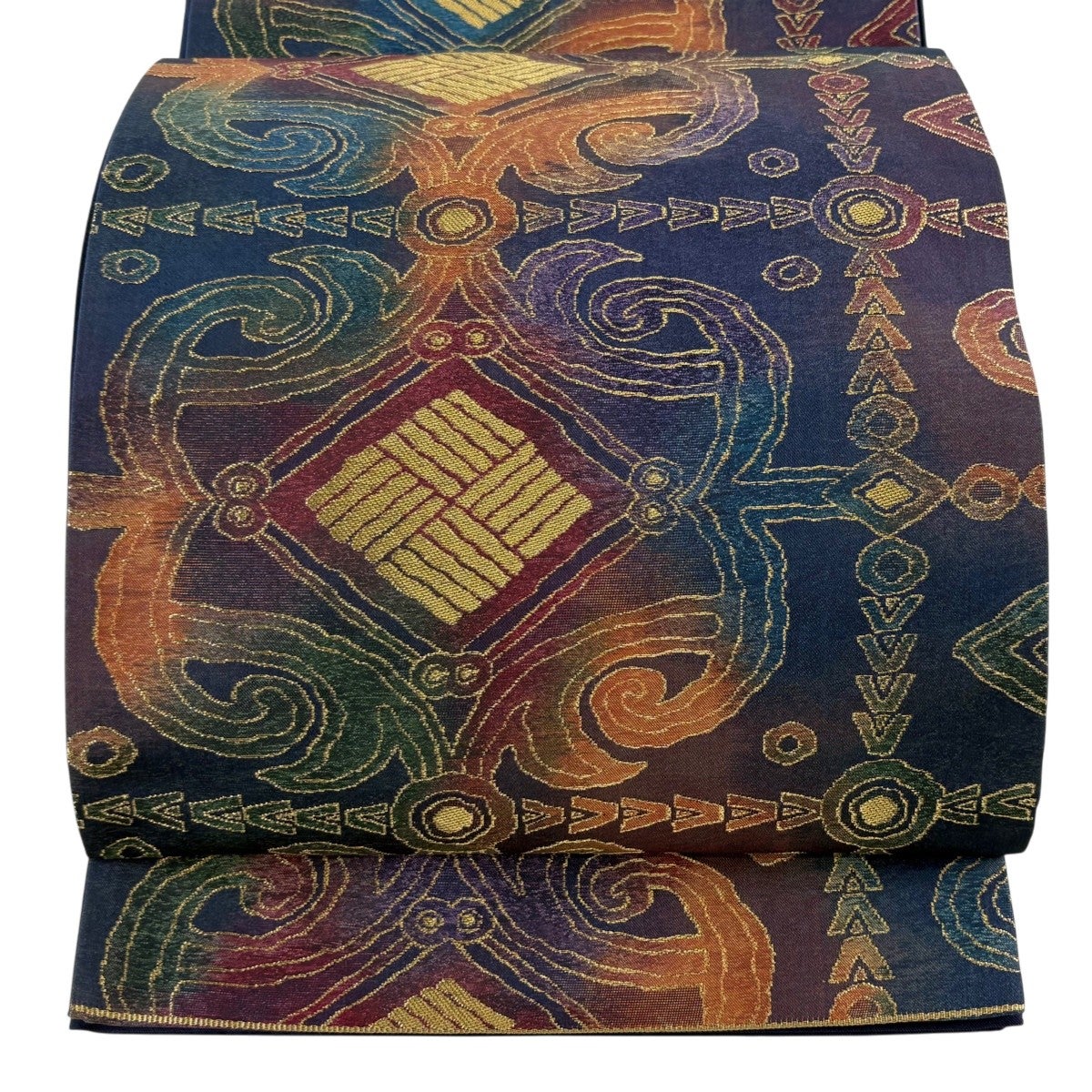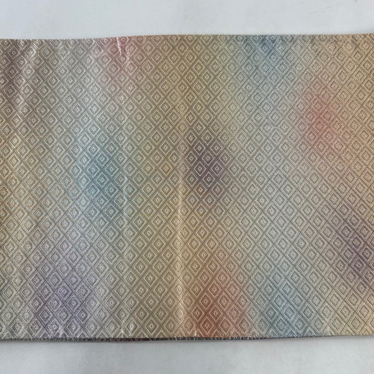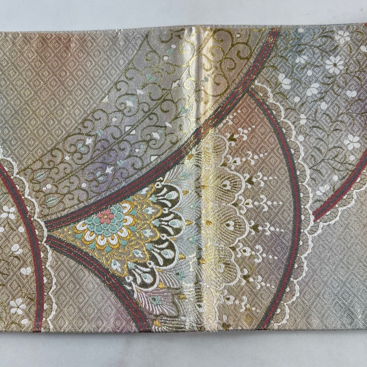 【美品】 袋帯 秀品 華文 幾何学模様 金糸 箔 銀色 六通 正絹