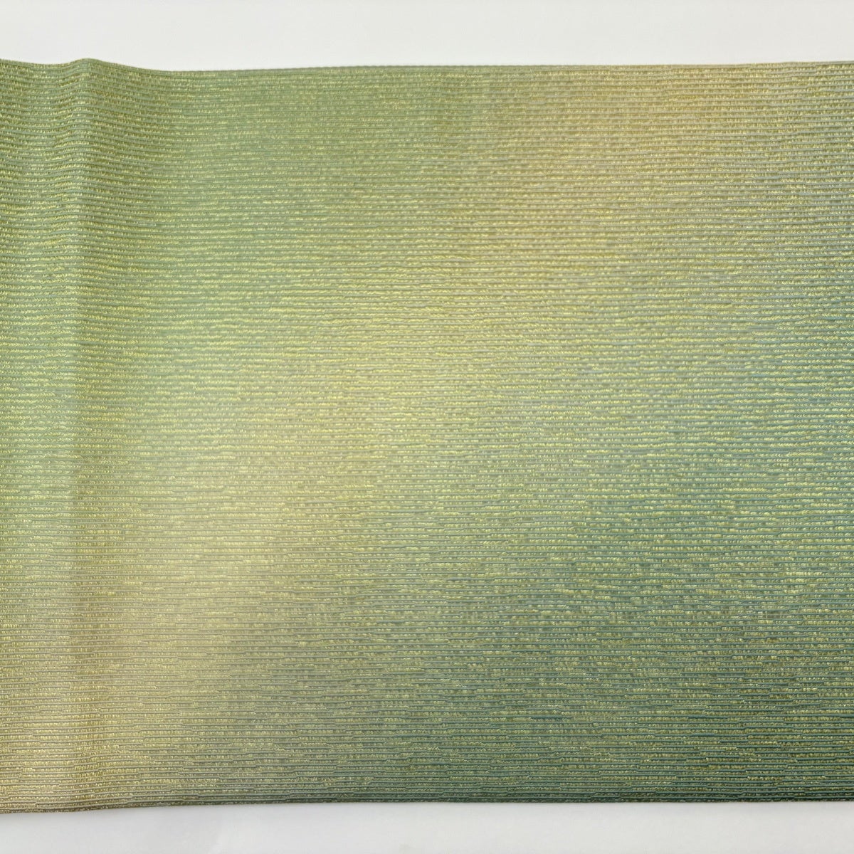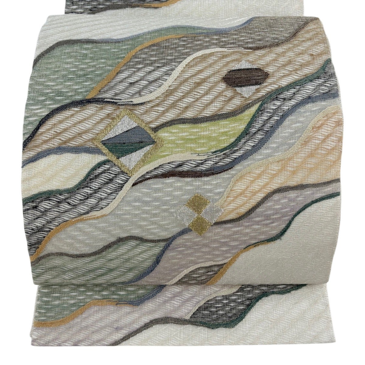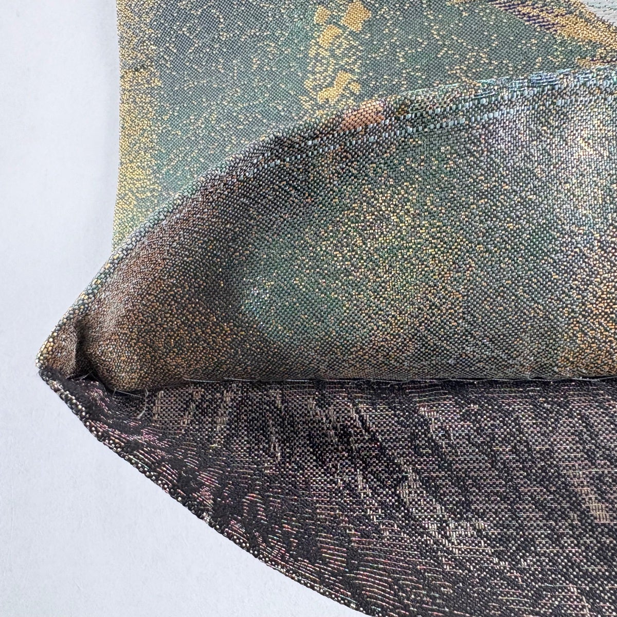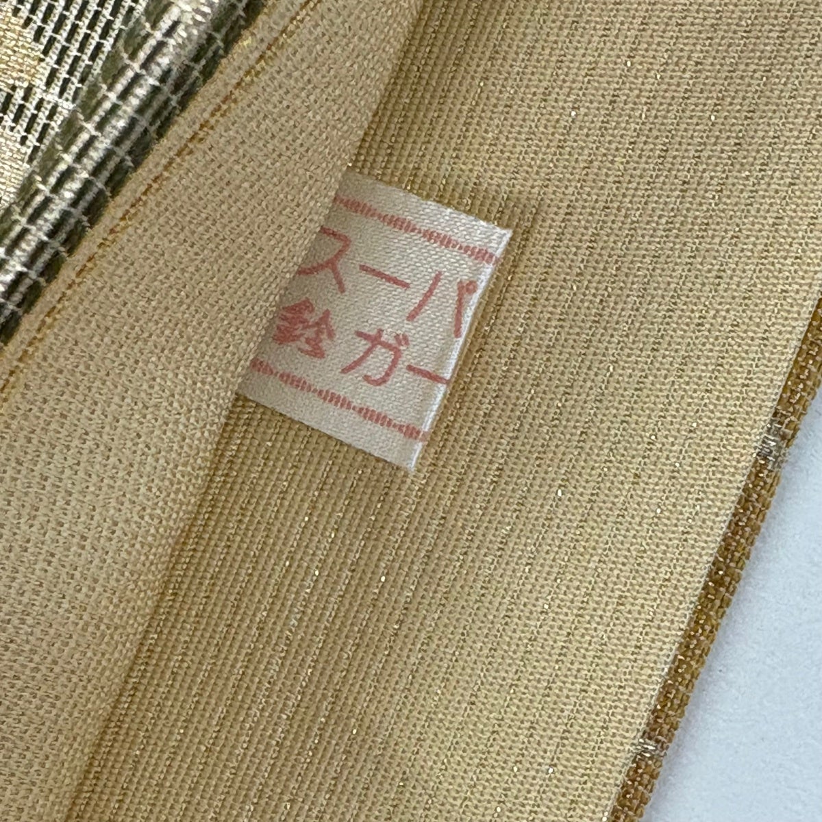 【美品】 袋帯 秀品 霞 幾何学模様 金糸 箔 茶緑色 六通 正絹
