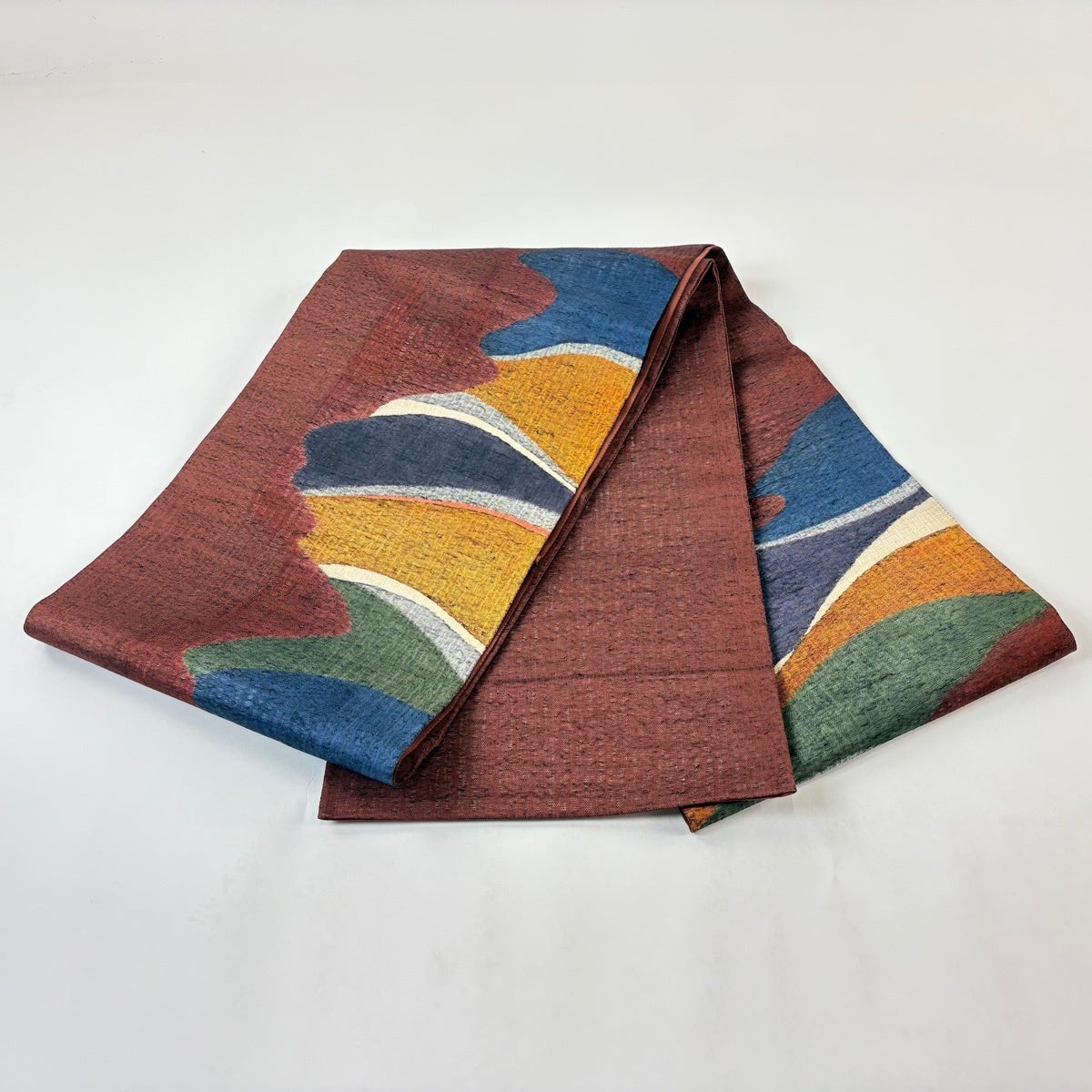 【美品】 袋帯 秀品 やまと 幾何学模様 えんじ色 お太鼓柄 正絹