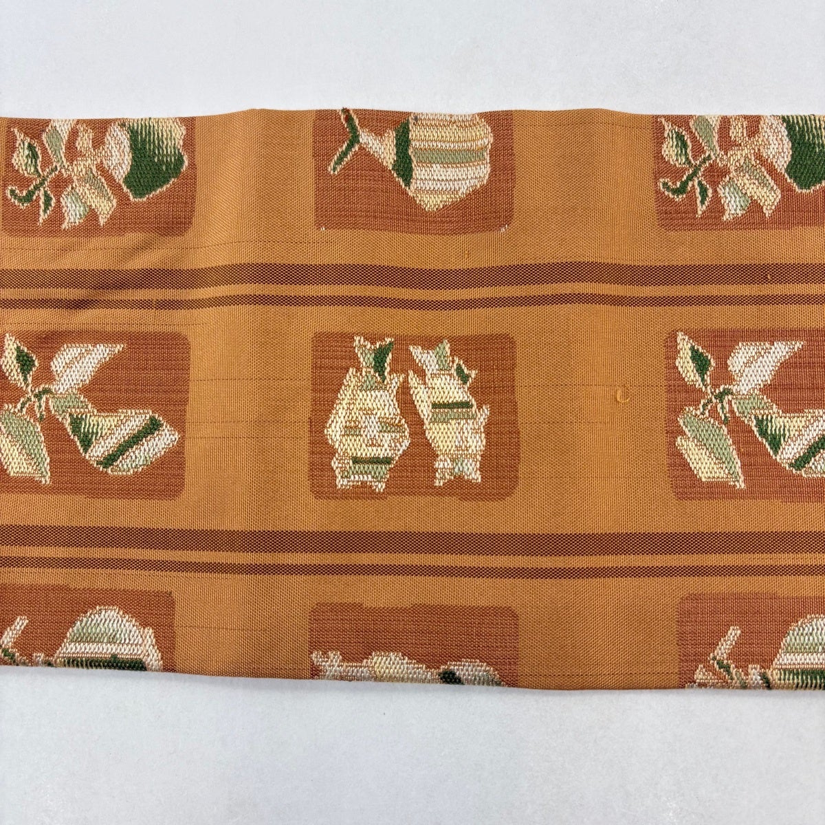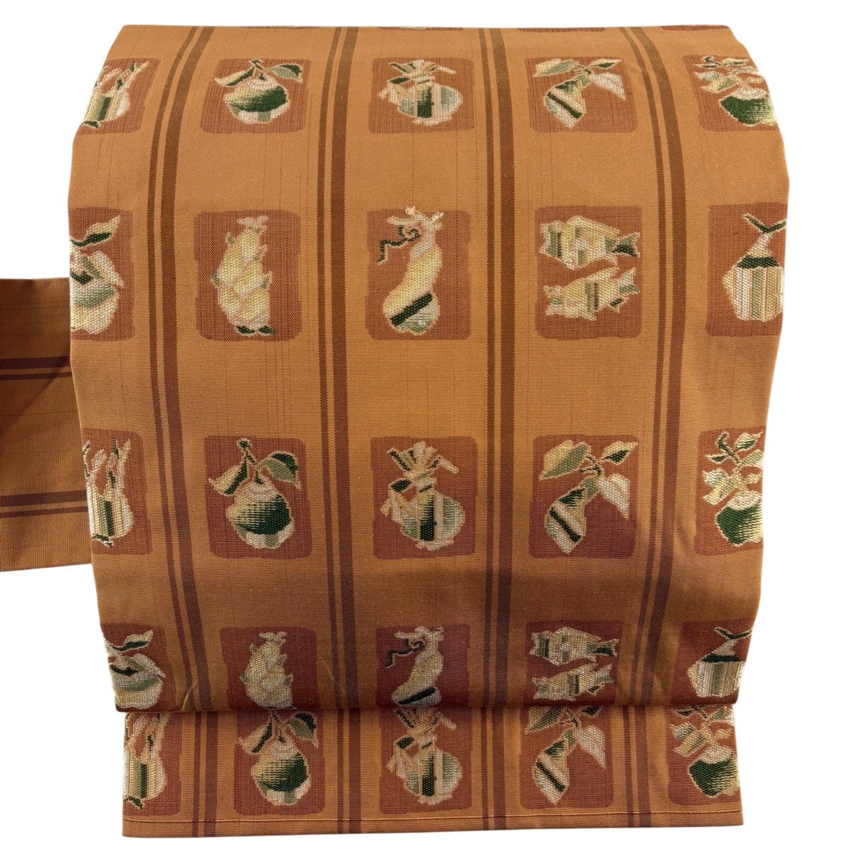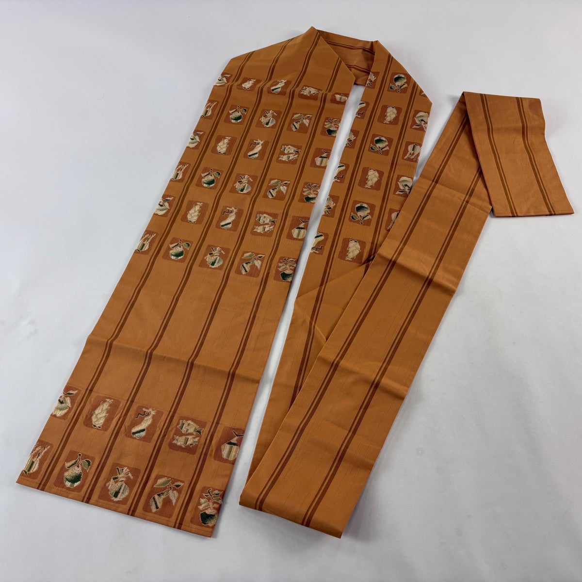 【美品】 名古屋帯 秀品 関西仕立て 竹の子 縞 オレンジ 正絹