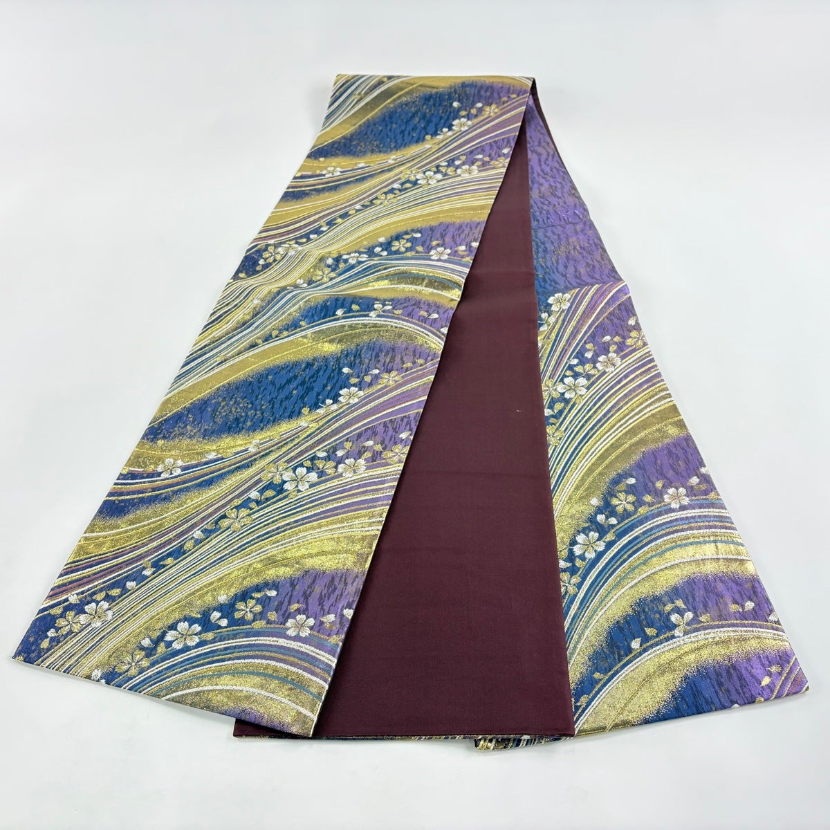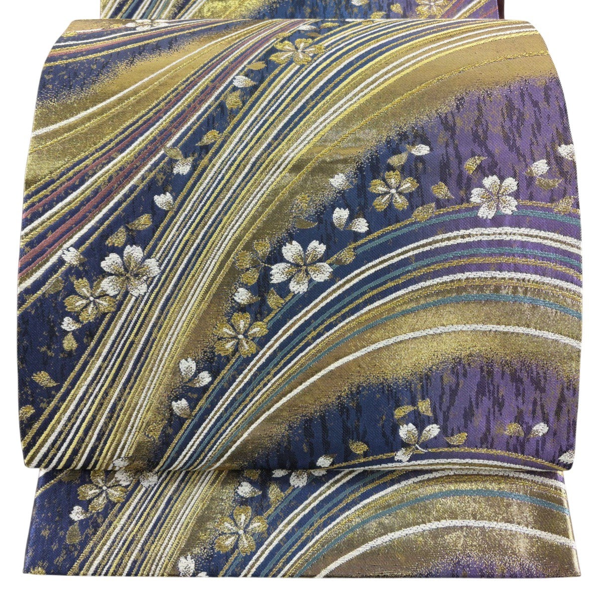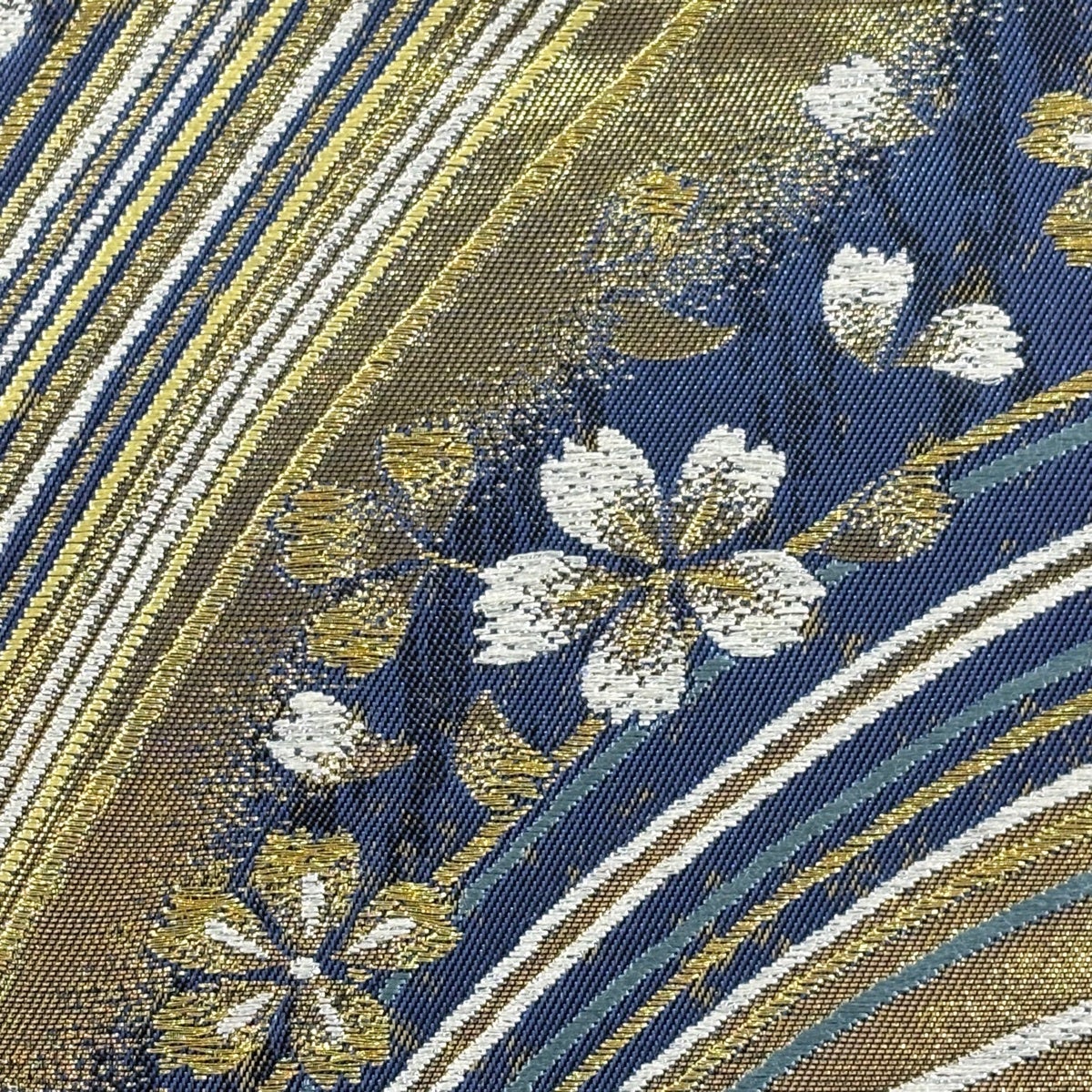 【美品】 袋帯 秀品 鈴乃屋 桜 花びら 金糸 箔 青 六通 正絹