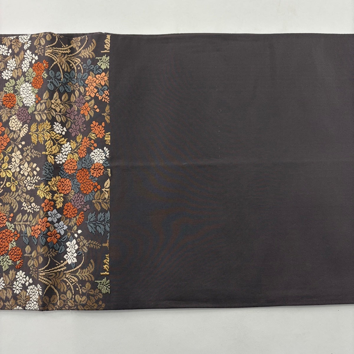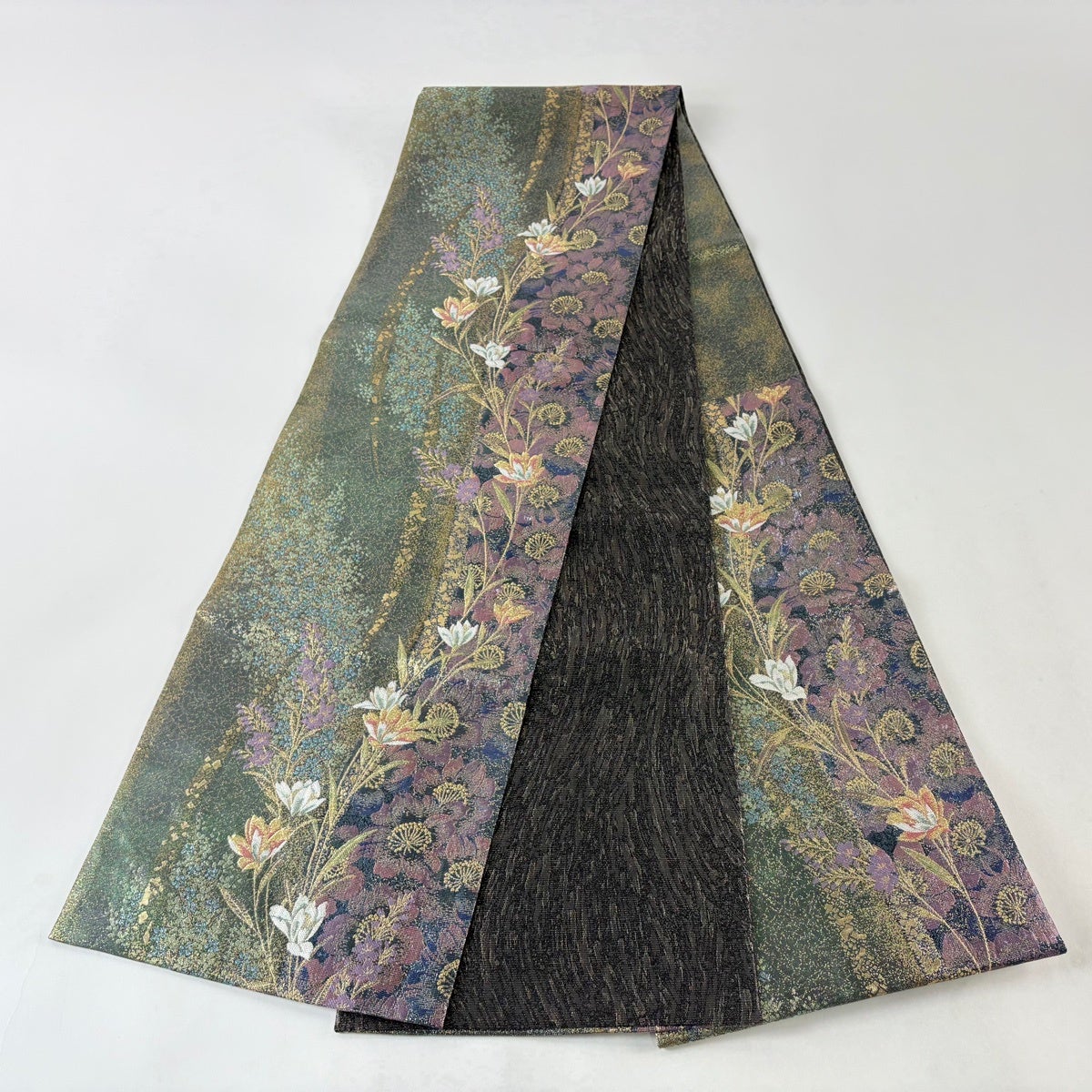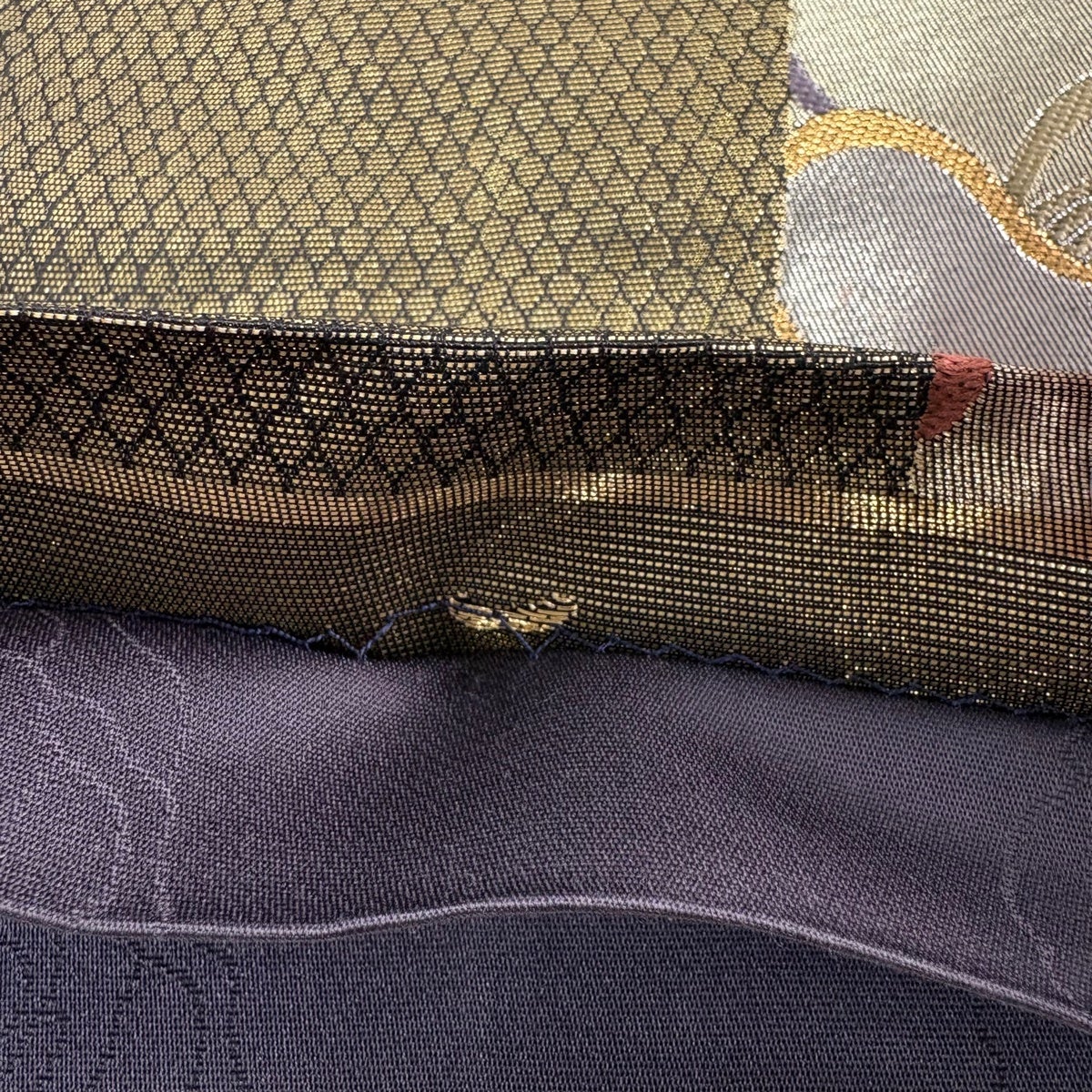【美品】 袋帯 秀品 関西仕立て 秋草 金糸 箔 灰紫 六通 正絹