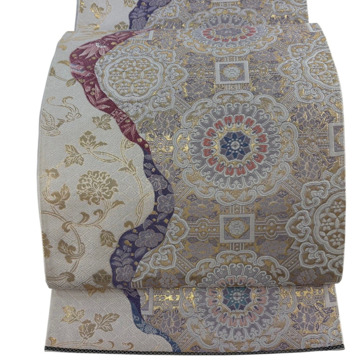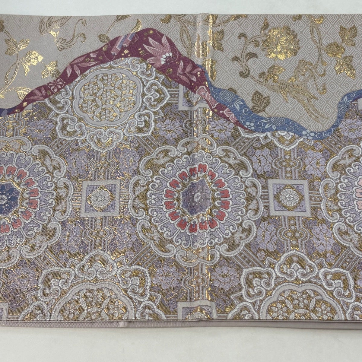 袋帯 秀品 関西仕立て 華文 古伝名宝文 本金箔 薄紫 六通 正絹