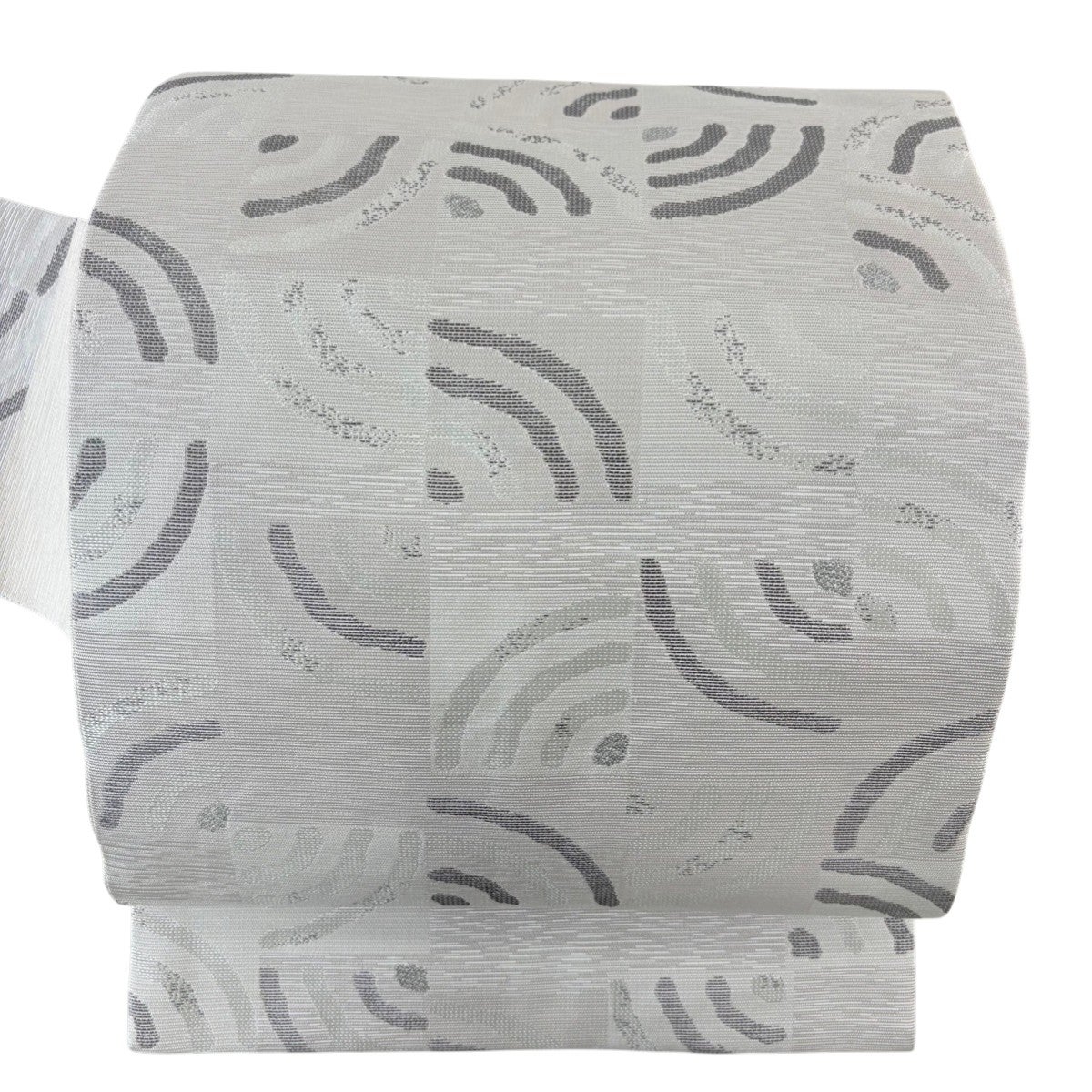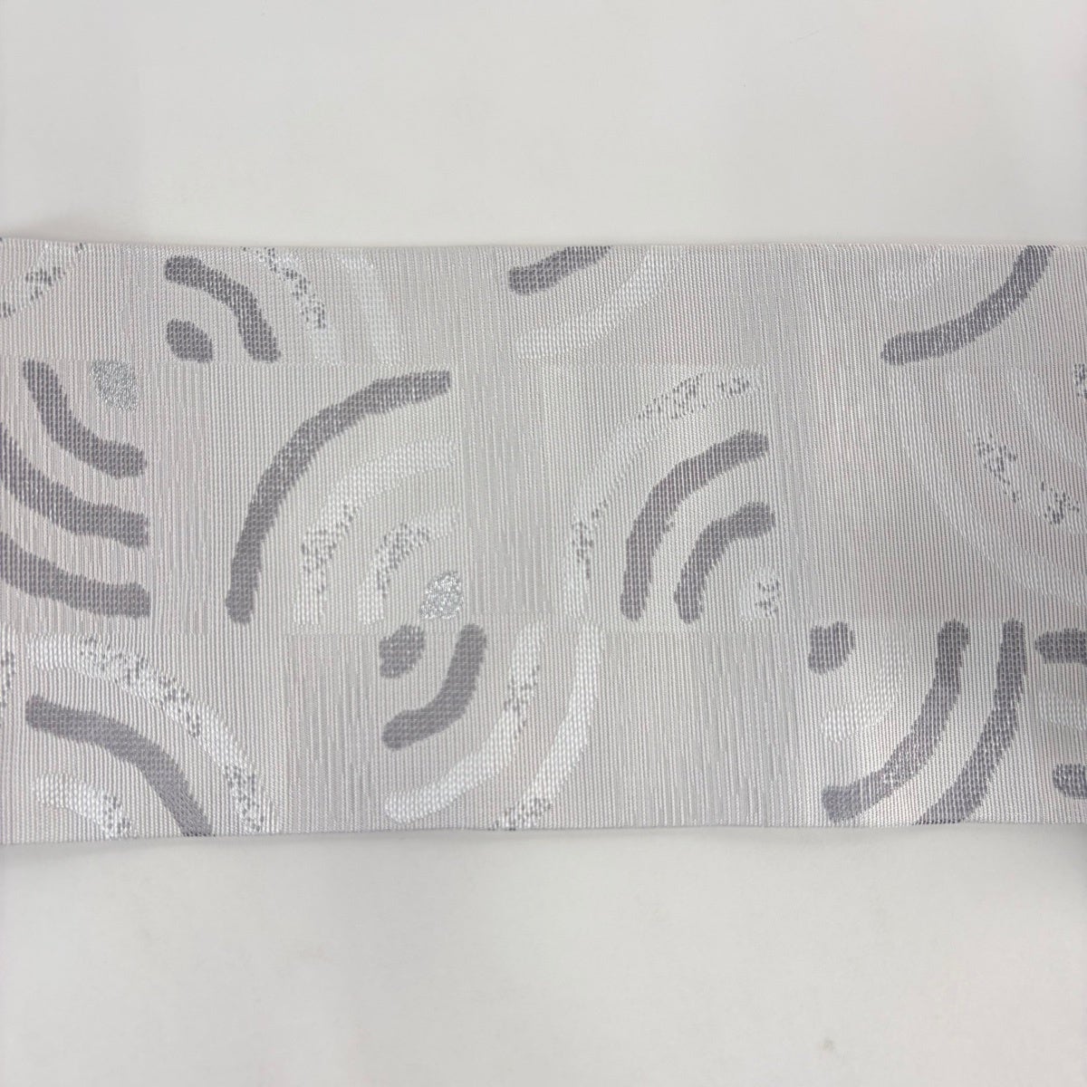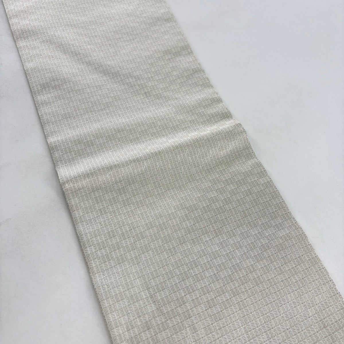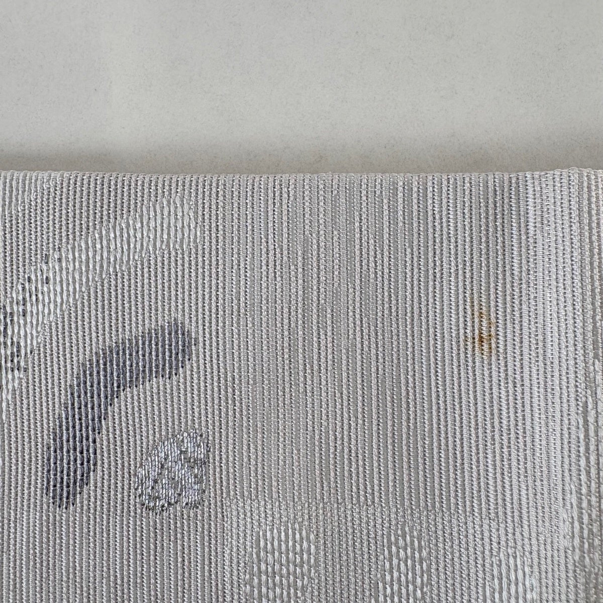 名古屋帯 秀品 証紙あり 変わり市松 幾何学模様 銀糸 灰白 正絹