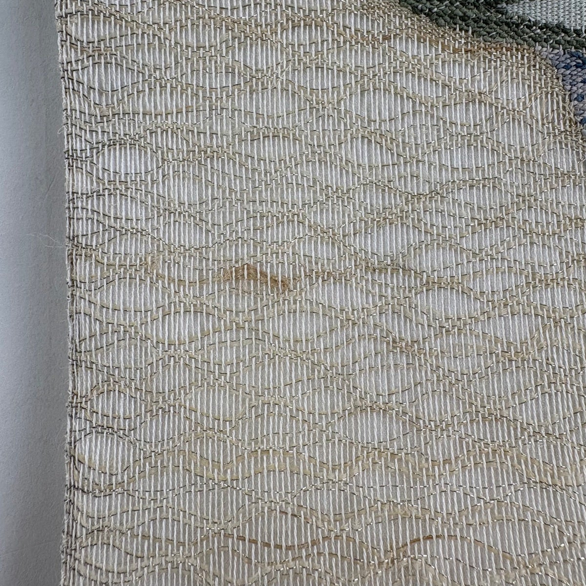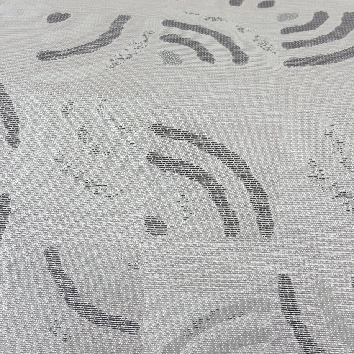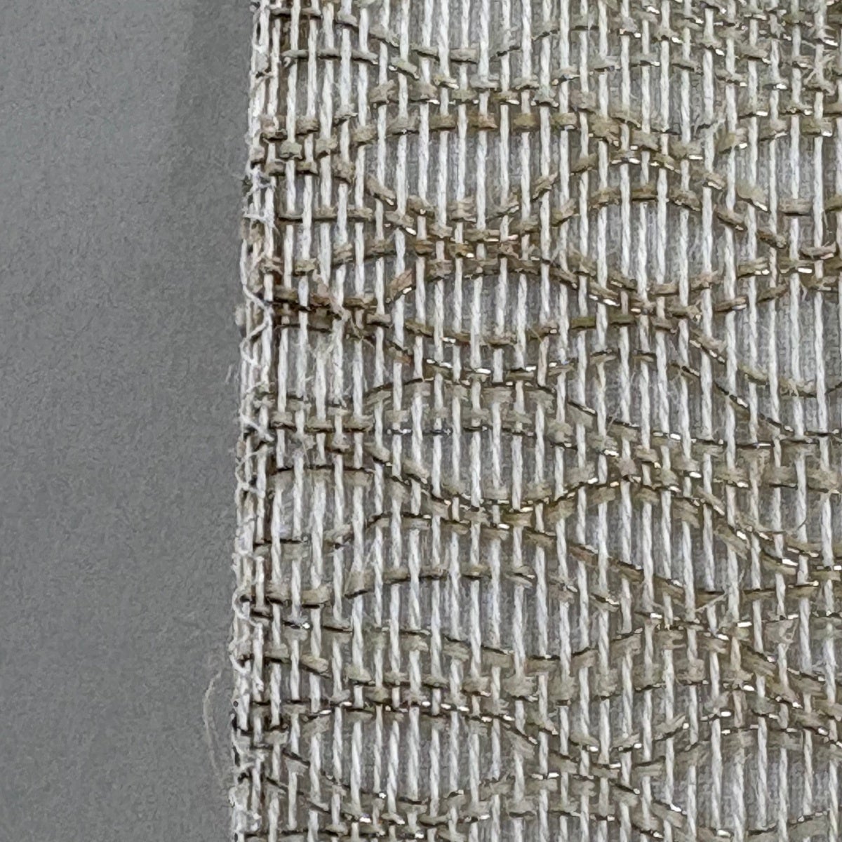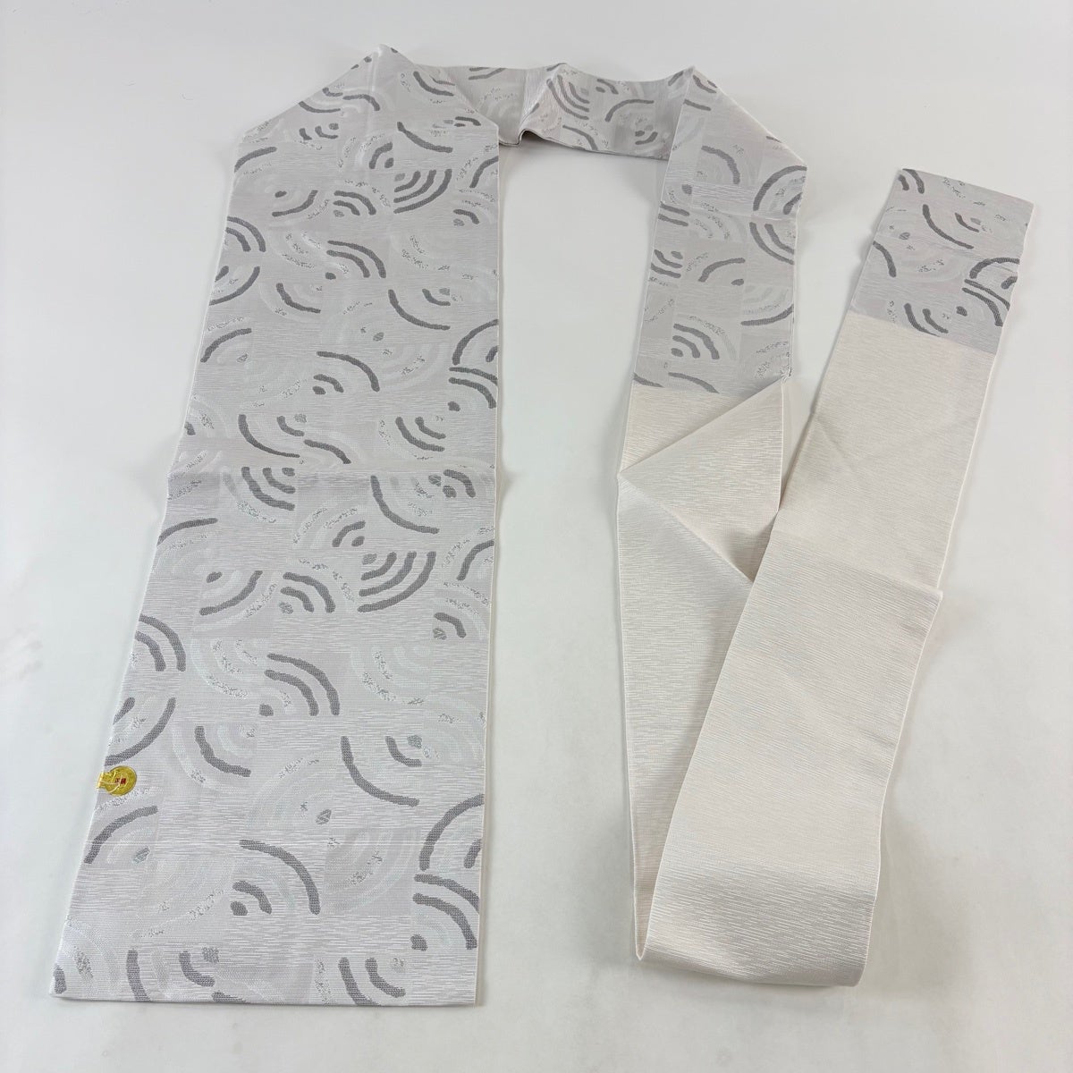 名古屋帯 秀品 証紙あり 変わり市松 幾何学模様 銀糸 灰白 正絹