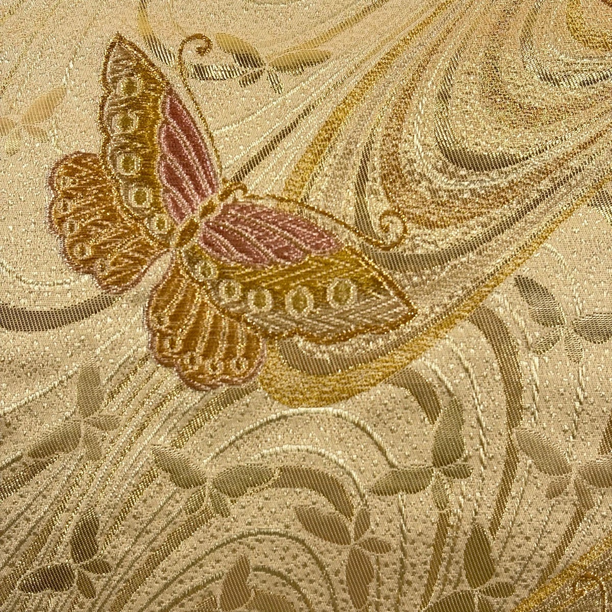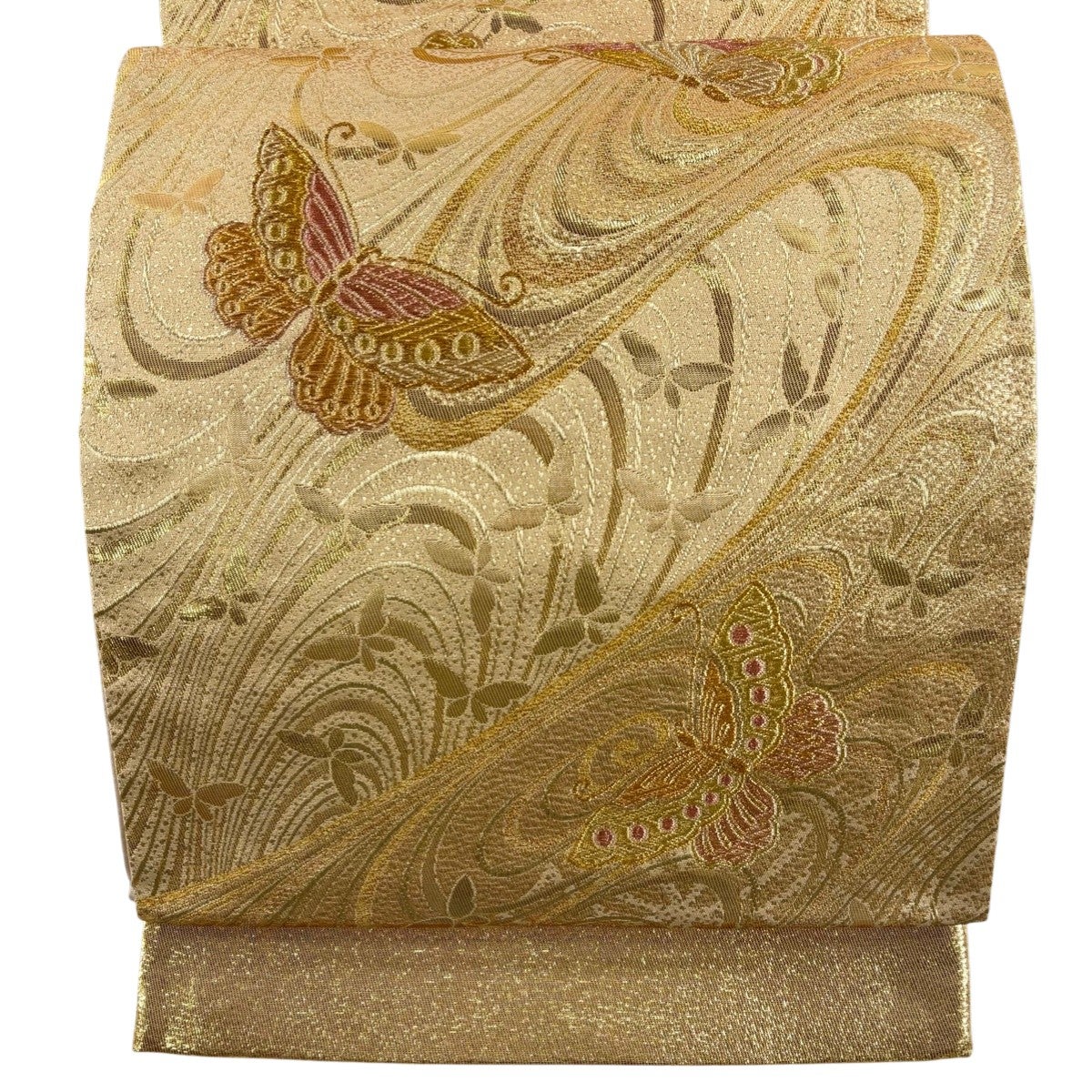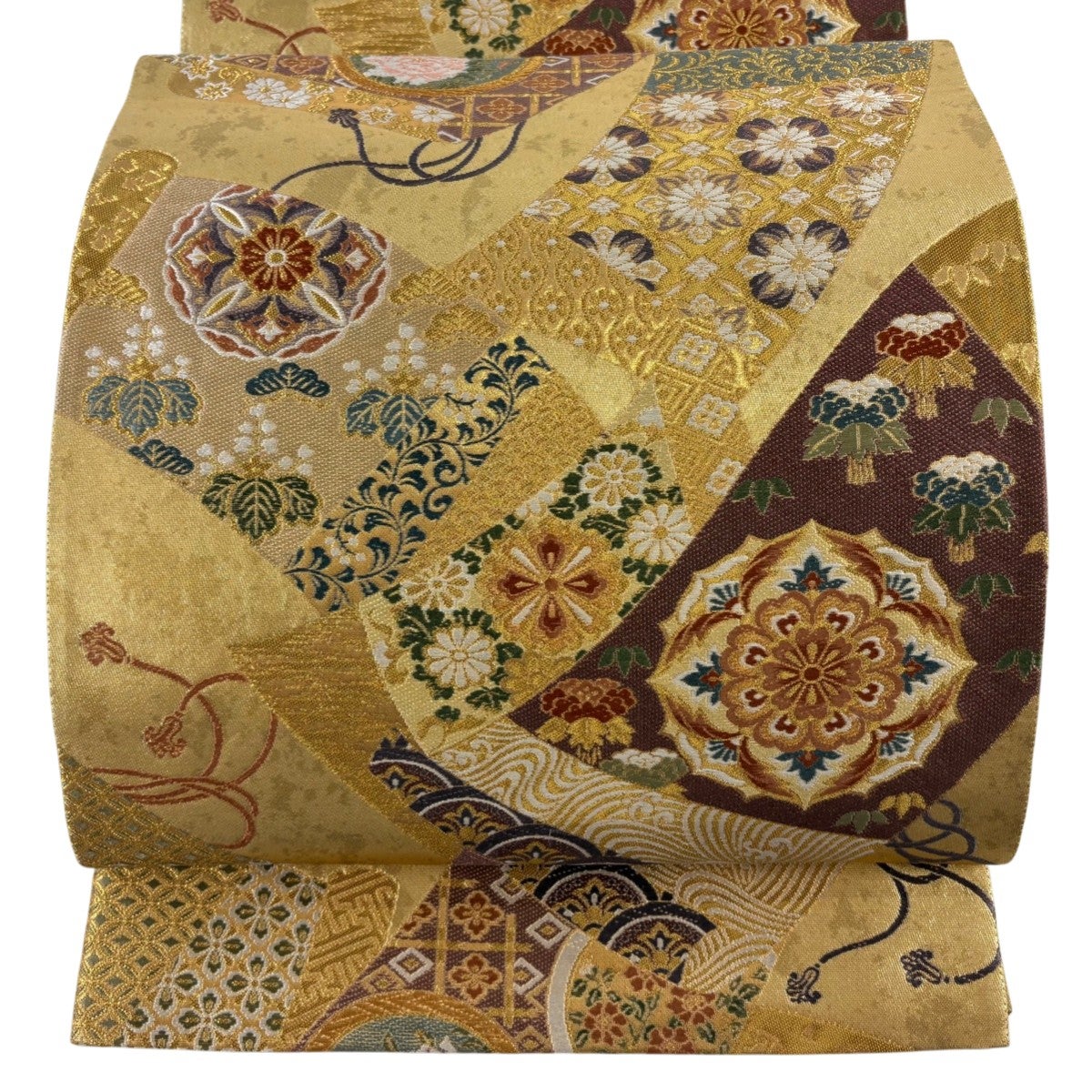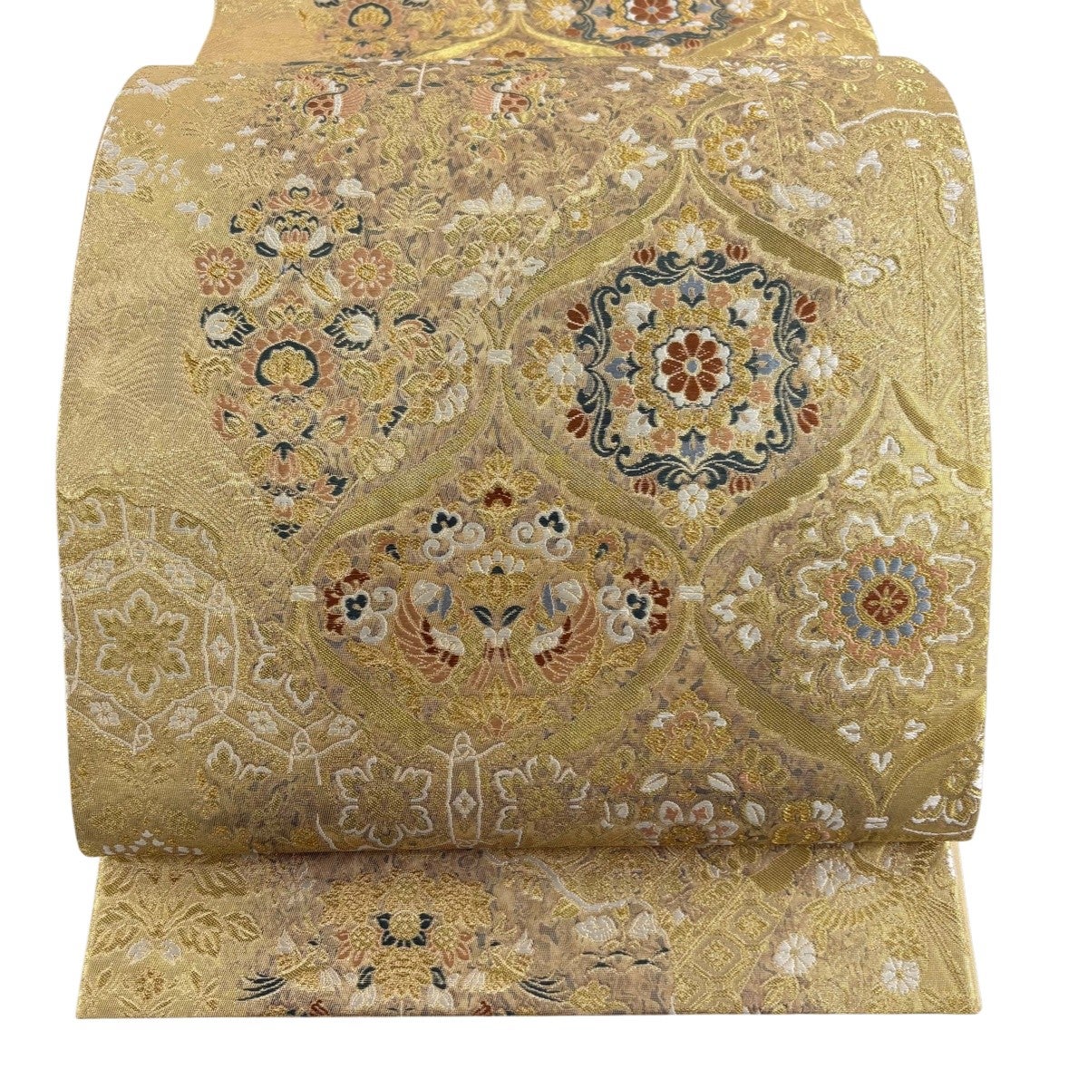 袋帯 秀品 関西仕立て 華文 有職文様 箔 金銀糸 金色 六通 正絹