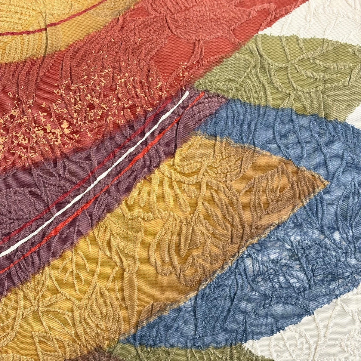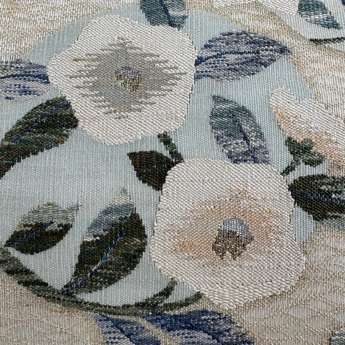 【美品】 袋帯 秀品 椿 幾何学模様 刺繍 金銀糸 金色 六通 正絹