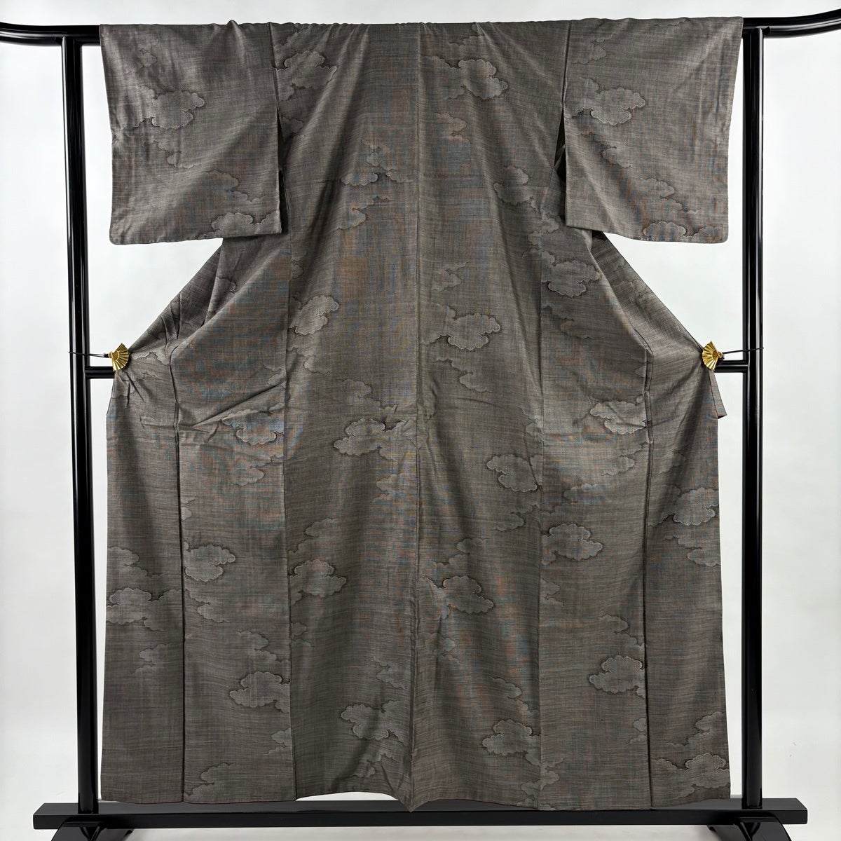 紬 身丈158.5cm 裄丈62.5cm S 袷 雲文 灰茶 正絹 秀品
