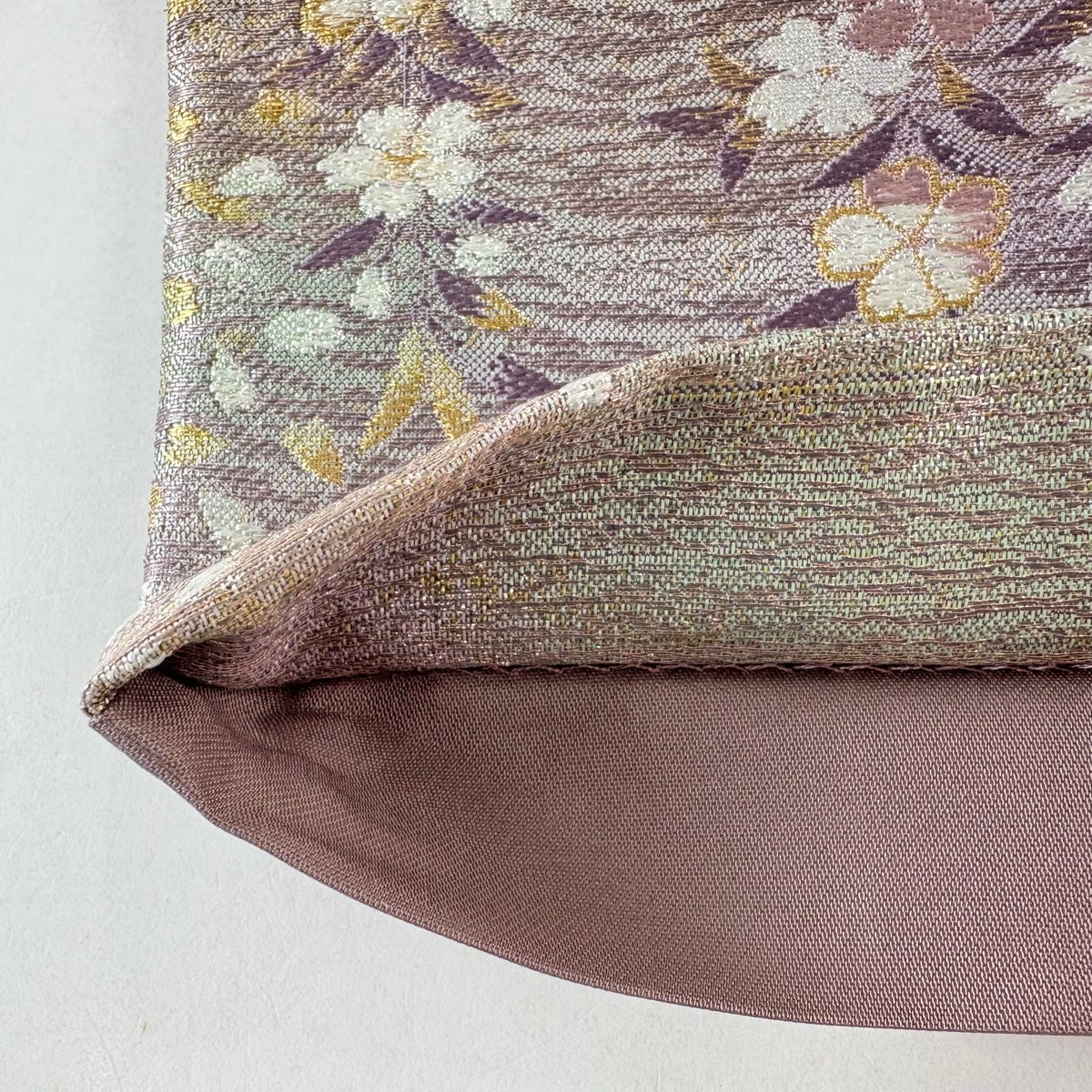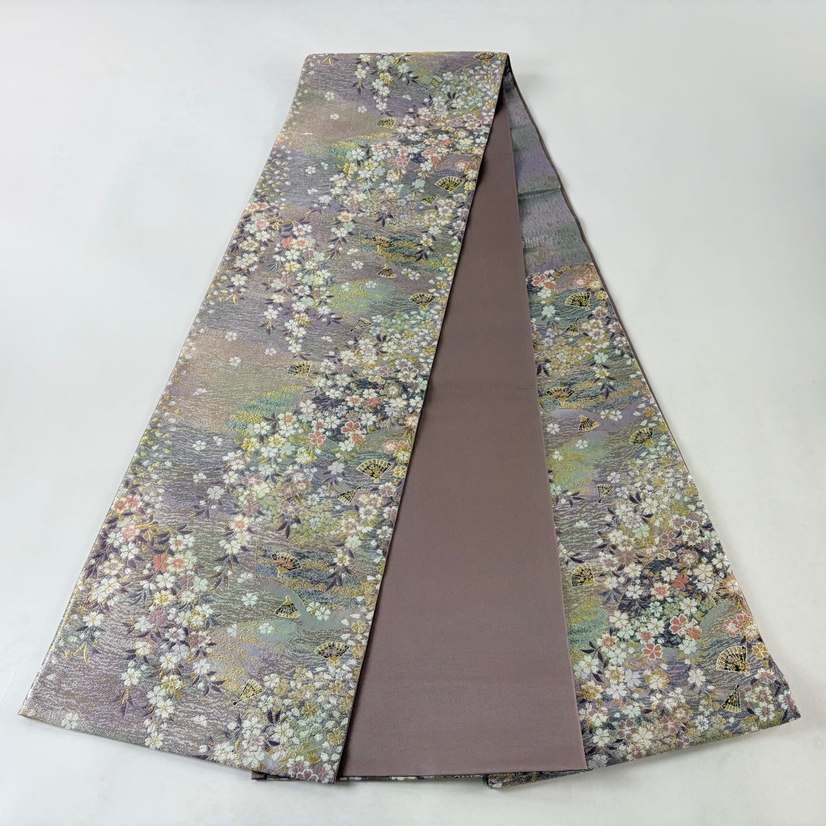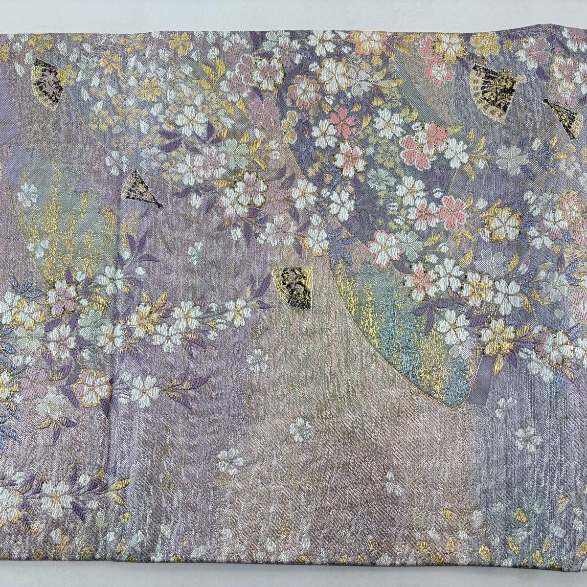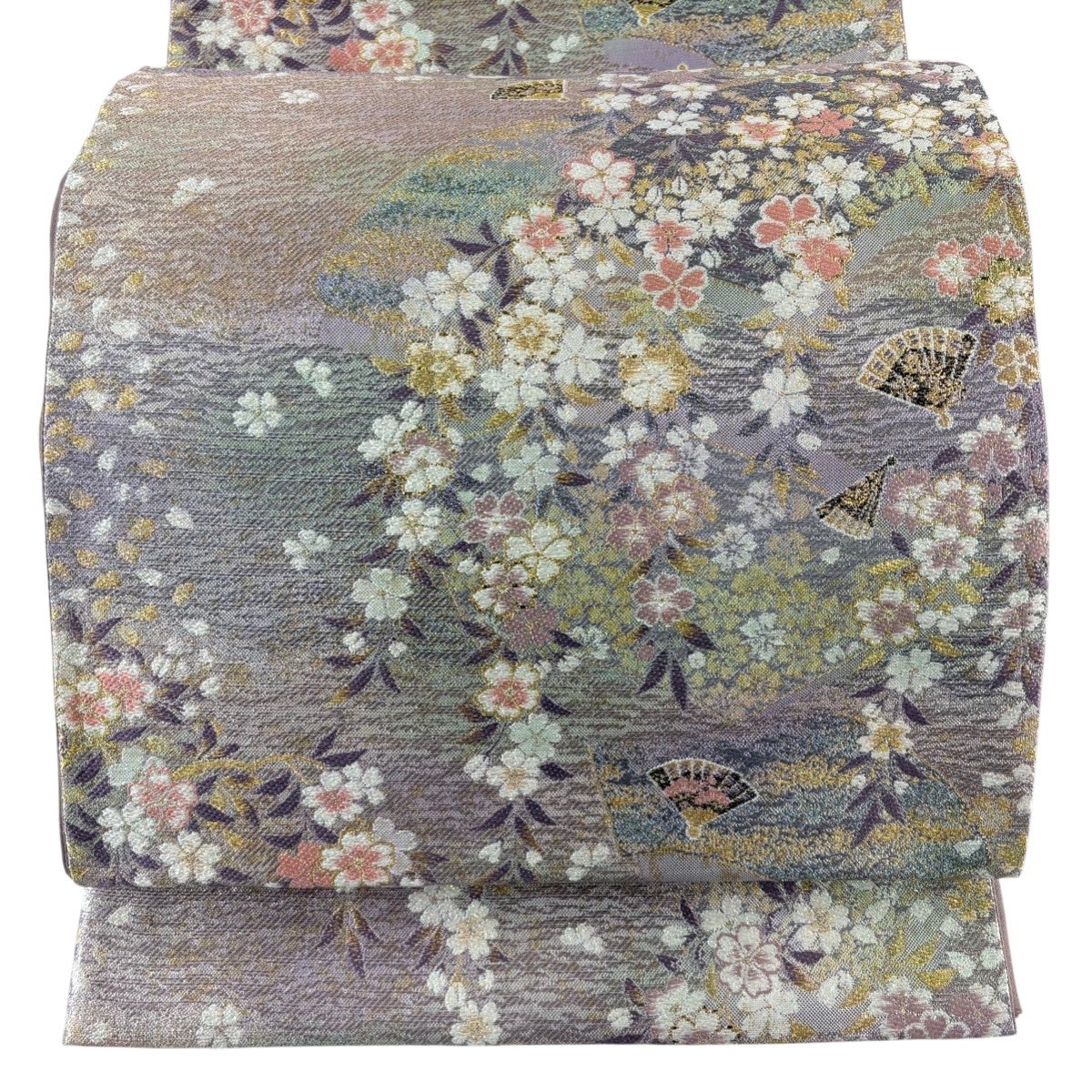 【美品】 袋帯 秀品 やまと 桜 扇面 箔 金糸 薄紫 六通 正絹