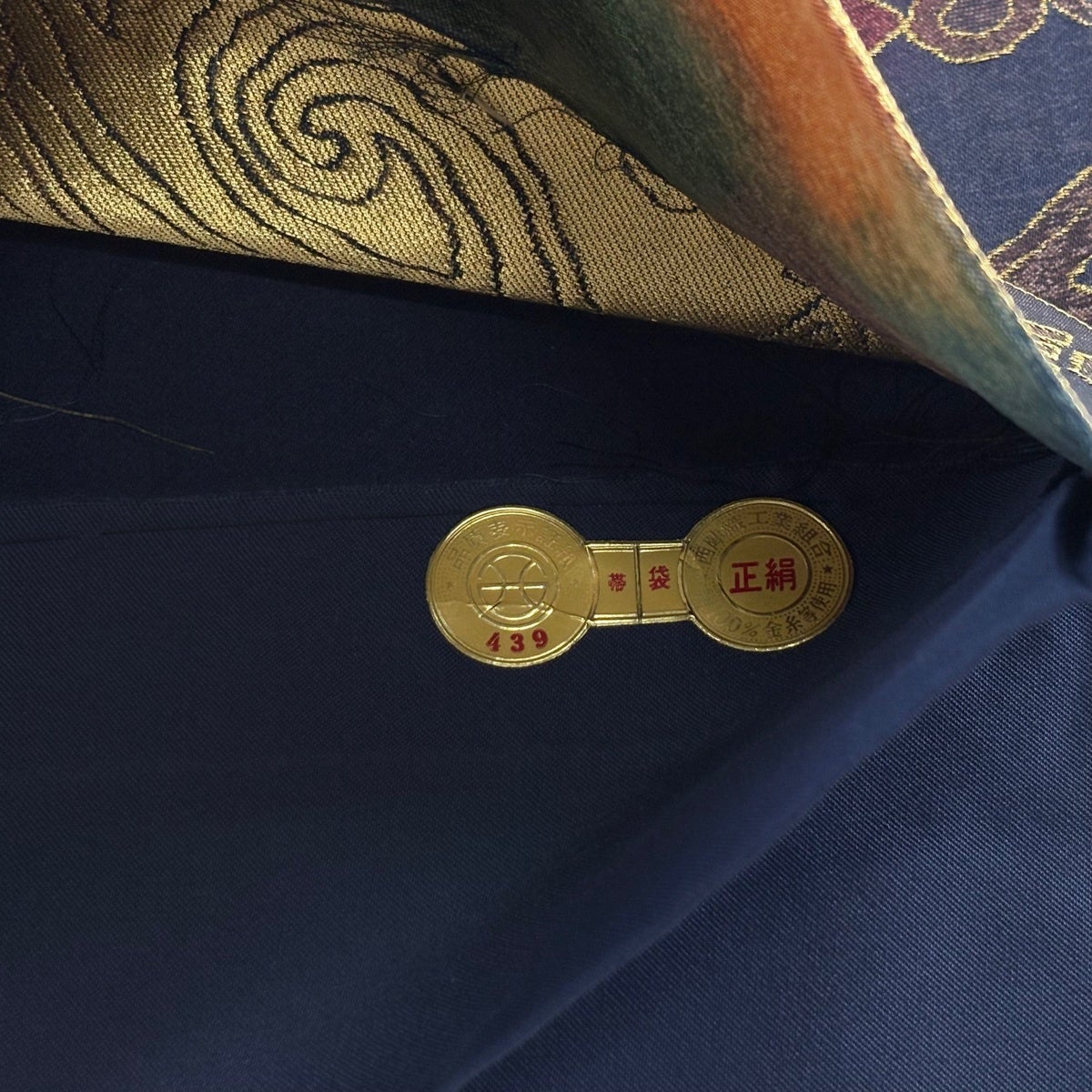 【美品】 袋帯 秀品 鈴乃屋 正倉院狩鞍文 金糸 箔 金色 六通 正絹