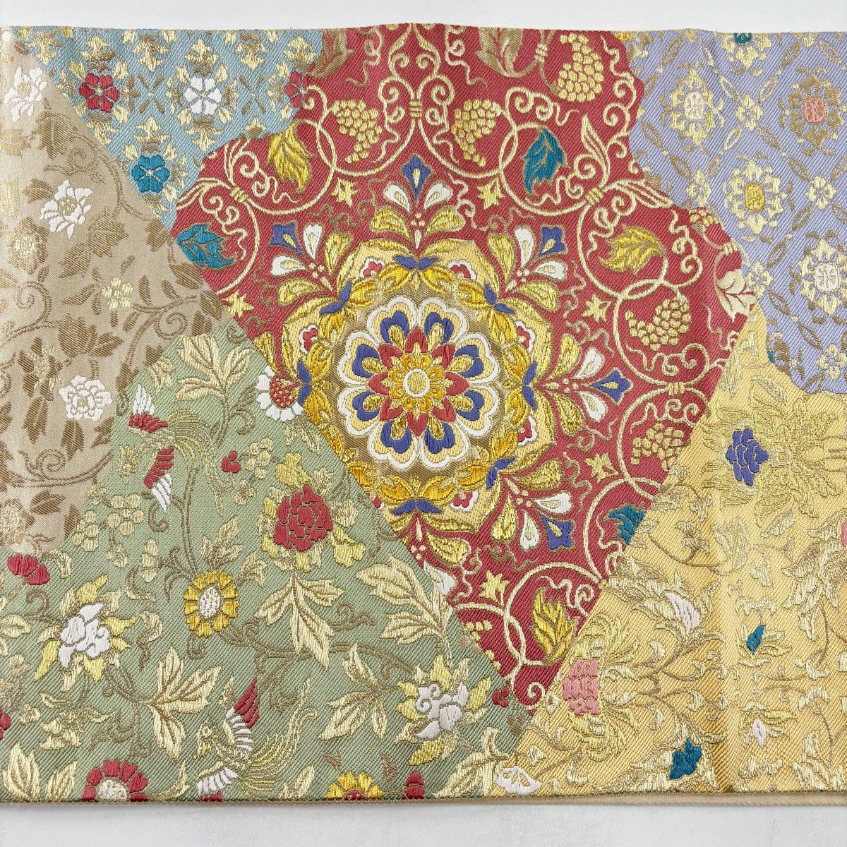 袋帯 秀品 振袖向き 蜀江華文 有職文様 金糸 箔 金色 六通 正絹