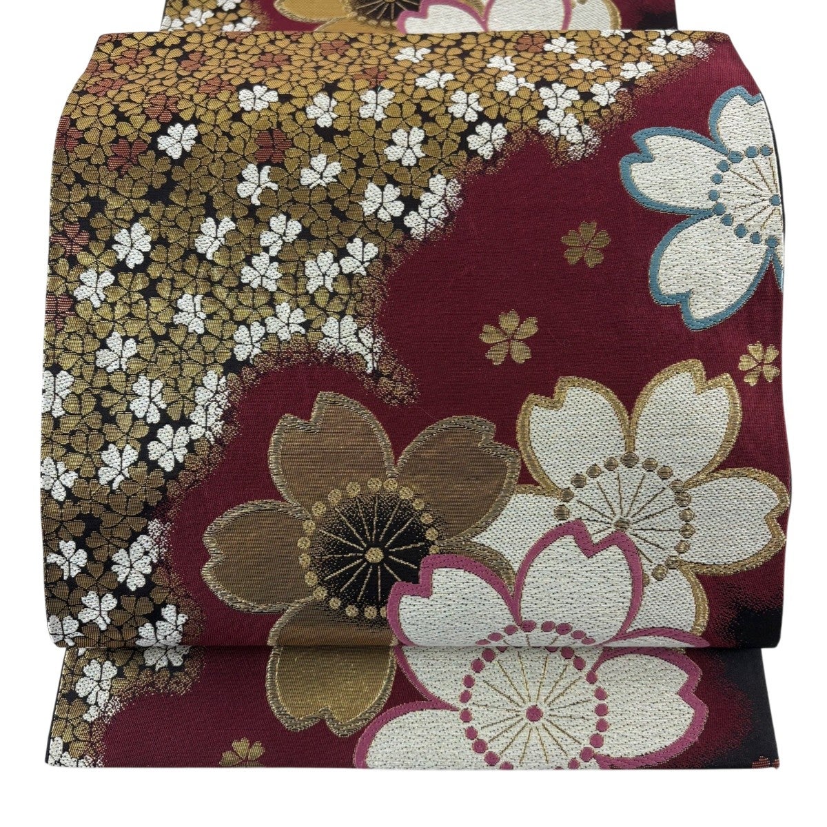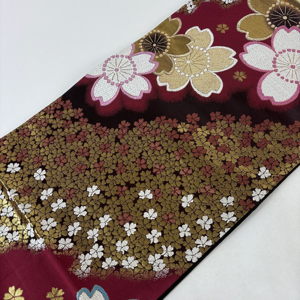 【美品】 袋帯 秀品 振袖向き 薬玉 桜 箔 金糸 金色 全通 正絹