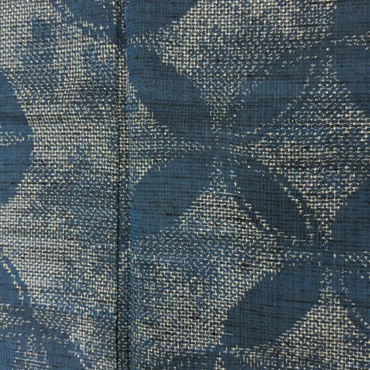 【美品】 袋帯 秀品 幾何学模様 銀糸 銀彩 青灰色 お太鼓柄 正絹
